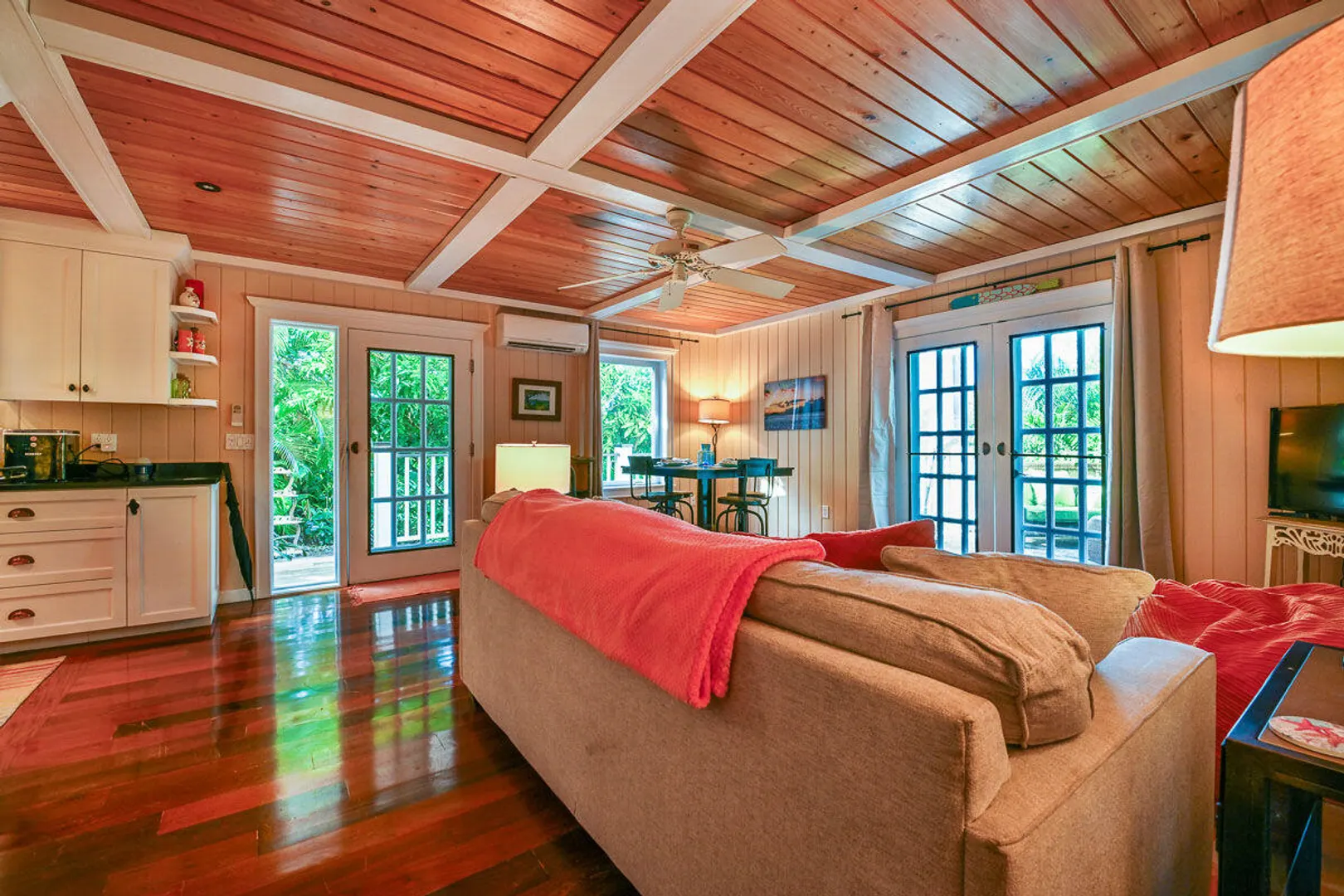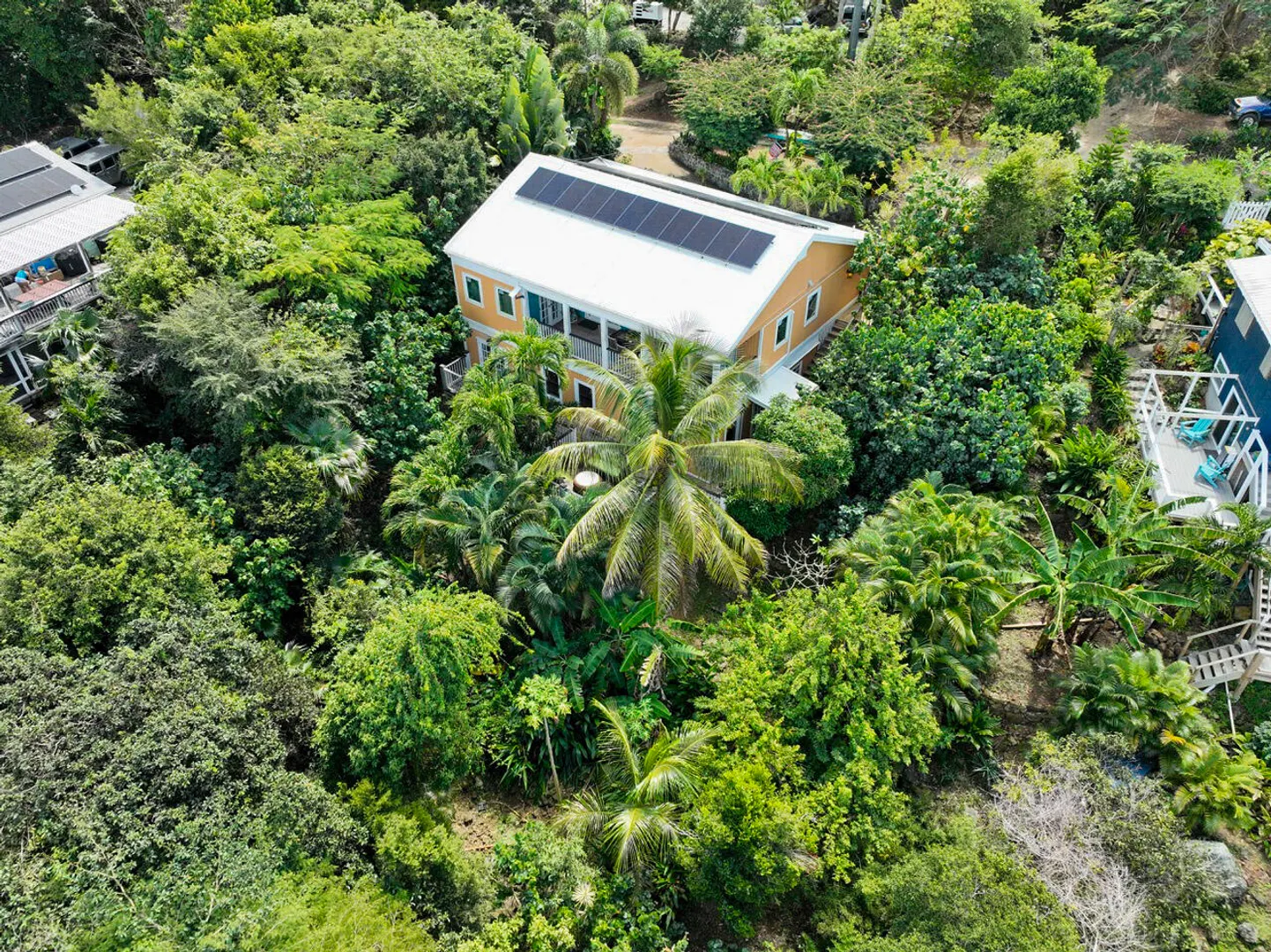 Experience the perfect blend of Caribbean charm and contemporary comfort in this beautifully renovated, turn-key home, ideal for owner occupancy or as a short- or long-term rental. The upper level features a bright, open-concept layout with stylish, high-quality finishes, two spacious bedrooms with cozy seating areas, and seamless indoor-outdoor living. Below, a charming two-bedroom apartment offers additional flexibility for guests or rental income. Nestled in a peaceful Gifft Hill neighborhood with easy access to schools and town, this lush oasis sits on a generous, flat lot with room to add a pool. Modern amenities include AC split units throughout, a solar array with a backup battery system, and breathtaking sunset views over Cruz Bay. This true Caribbean gem is waiting for you