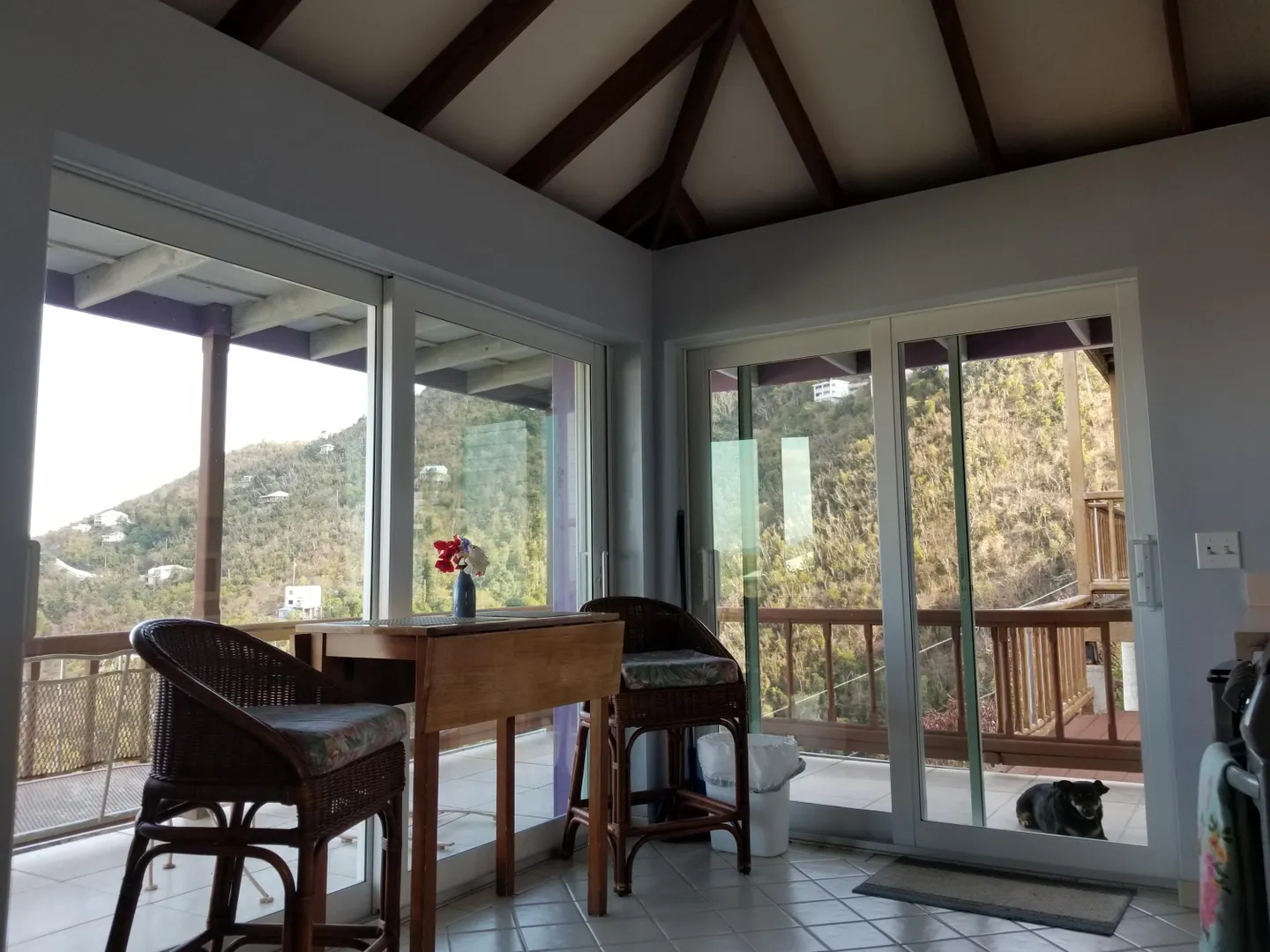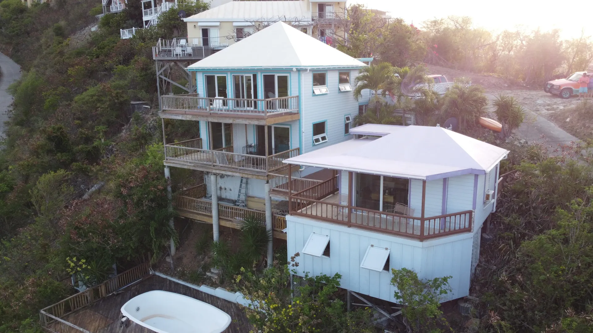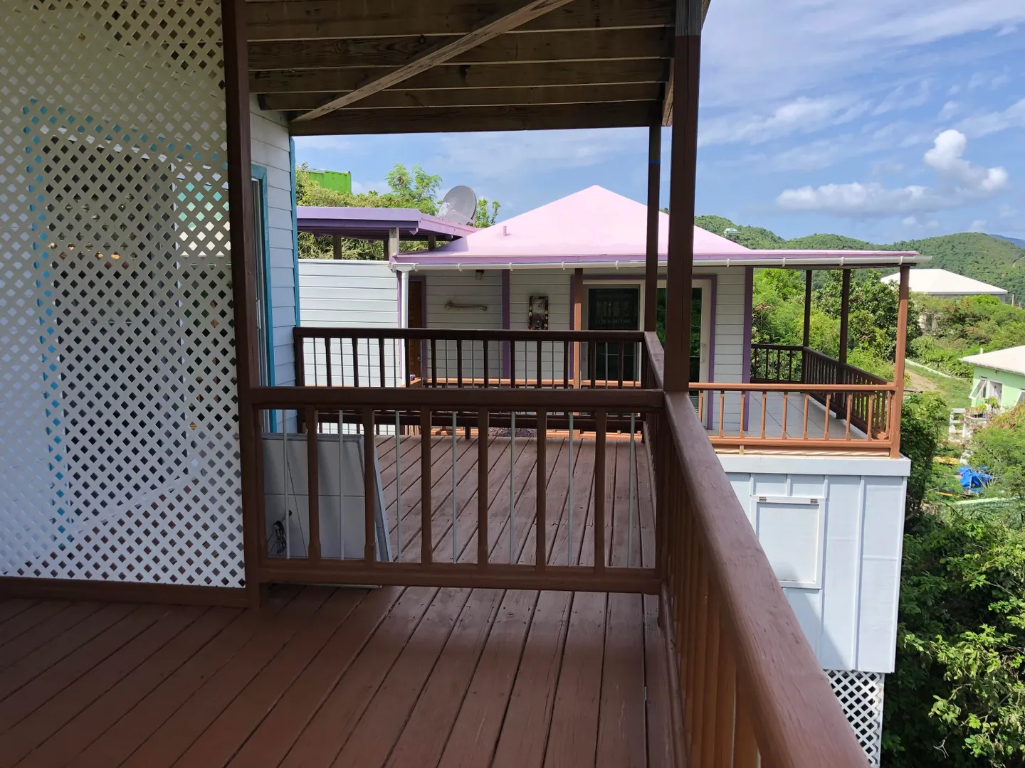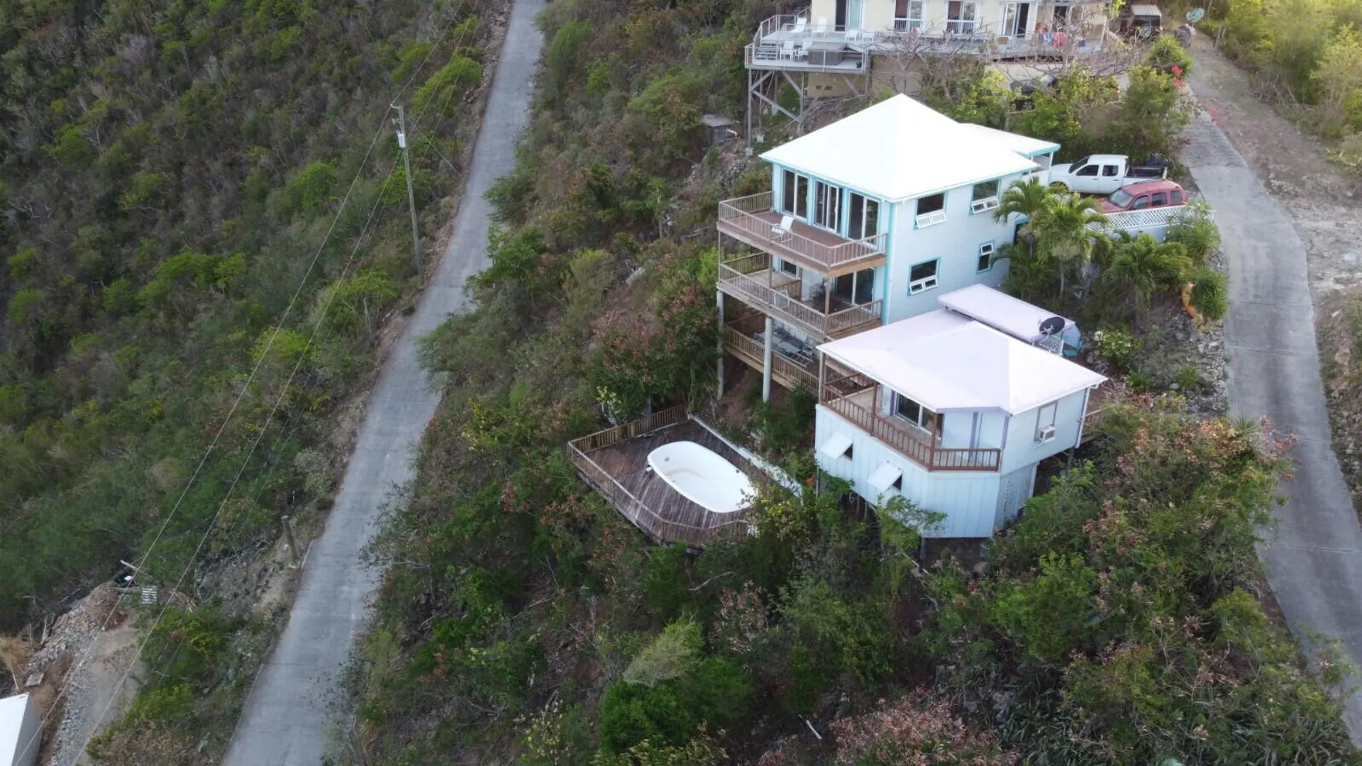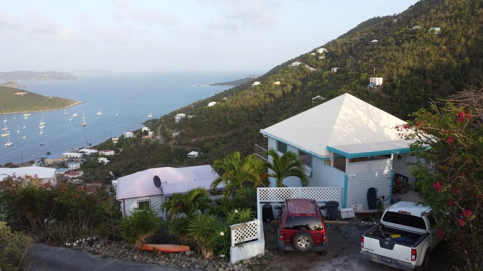 The name says it all! ''Vista Supreme'' enjoys stunning panoramic down island views including Coral bay harbor, east end of St. John and BVI's. The upper level of the main house consists of a great room, kitchen & full bath with 2 bdrms x 1 bath and a laundry room with office area on the lower level. The separate guest house consists of a studio apartment with full bath on upper level and on the lower level is a 300sf workshop and a storage room that can revert to an overflow bedroom if needed; lots of options! The property is being sold ''as is/where is''. The pool is no longer in use and the basic structure is sound but the pool equipment & deck needs to be replaced. Buyer and Seller to equally split the costs of the transfer tax. Buyer to confirm square footage and cistern capacity.