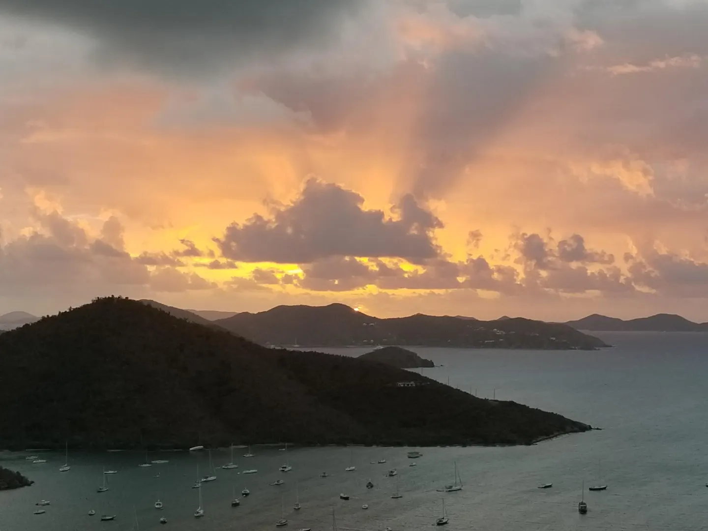 • View: British Virgin Islands, Down Island, East/sunrise, Harbor, Panoramic