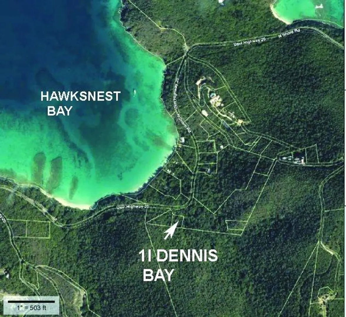 Rare, private and secluded North Shore location with views of Hawksnest Bay. Walking distance to two beaches, world famous Hawksnest Beach and Oppenheimer Beach. A tropical hardwood cottage with 5000 gallon wood cistern may be refurbished for use as is, or build to suit with approval from adjoining land owner (see Deed in documents). ''There is vibrant wildlife both on the beach and in the bay.'' The location is pleasantly perched above to enjoy it all.