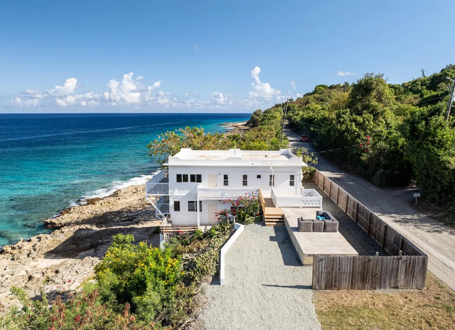 Live the island life in this beautifully renovated, unfurnished 3-bedroom, 2-bath waterfront home on St. Croix's scenic West End--just minutes from Hams Bluff, sandy beaches, and great local dining.The main bedroom features an en suite bath, and AC is installed in every room for year-round comfort. You'll also enjoy the convenience of an in-home washer and dryer, modern finishes throughout, and spacious deck areas with gorgeous ocean views. Pet friendly with plenty of parking.