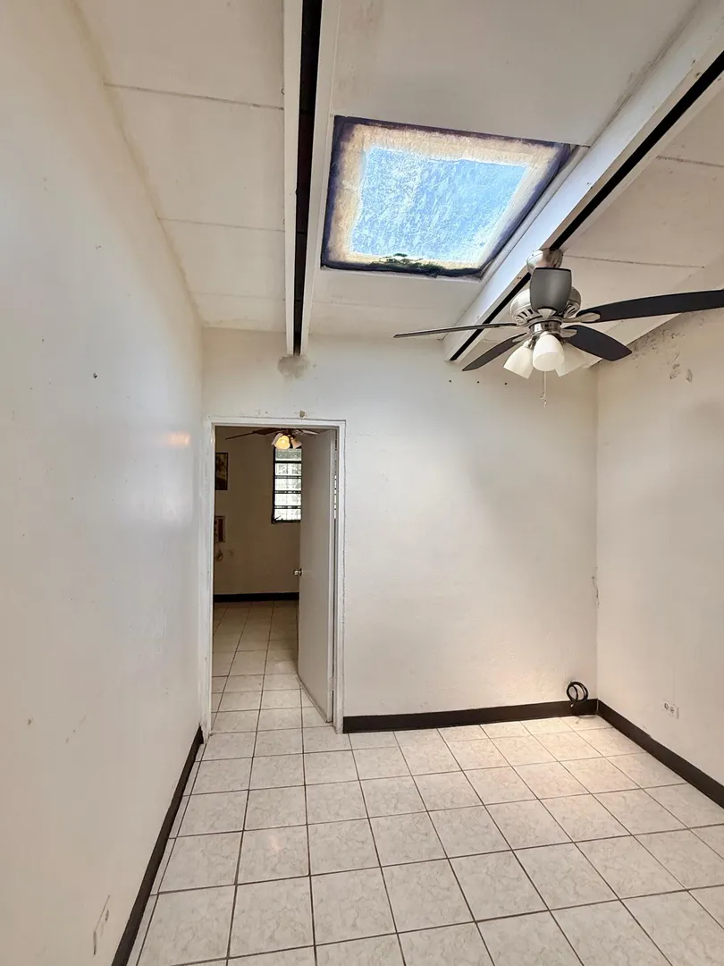 Tucked away in a quiet and highly convenient neighborhood, this townhome offers the perfect opportunity to create your own island retreat. Located within walking distance to Christiansted Town, Gallows Bay, and Canegata Ball Park, this home's central location makes it ideal for anyone seeking both accessibility and privacy.Highlights:Fixer-Upper Opportunity (sold AS IS) -- This 3-bedroom, 1-bath home is ready for a new owner to bring it back to life and make it fully shine again.Flexible Bonus Space -- The fourth room can serve as a workshop, laundry area, or creative workspace.Natural Light -- Multiple skylights fill the home with sunlight, creating a bright and airy feel.Outdoor Space to Enjoy -- A fenced back patio opens to a grassy area surrounded by beautiful nature.