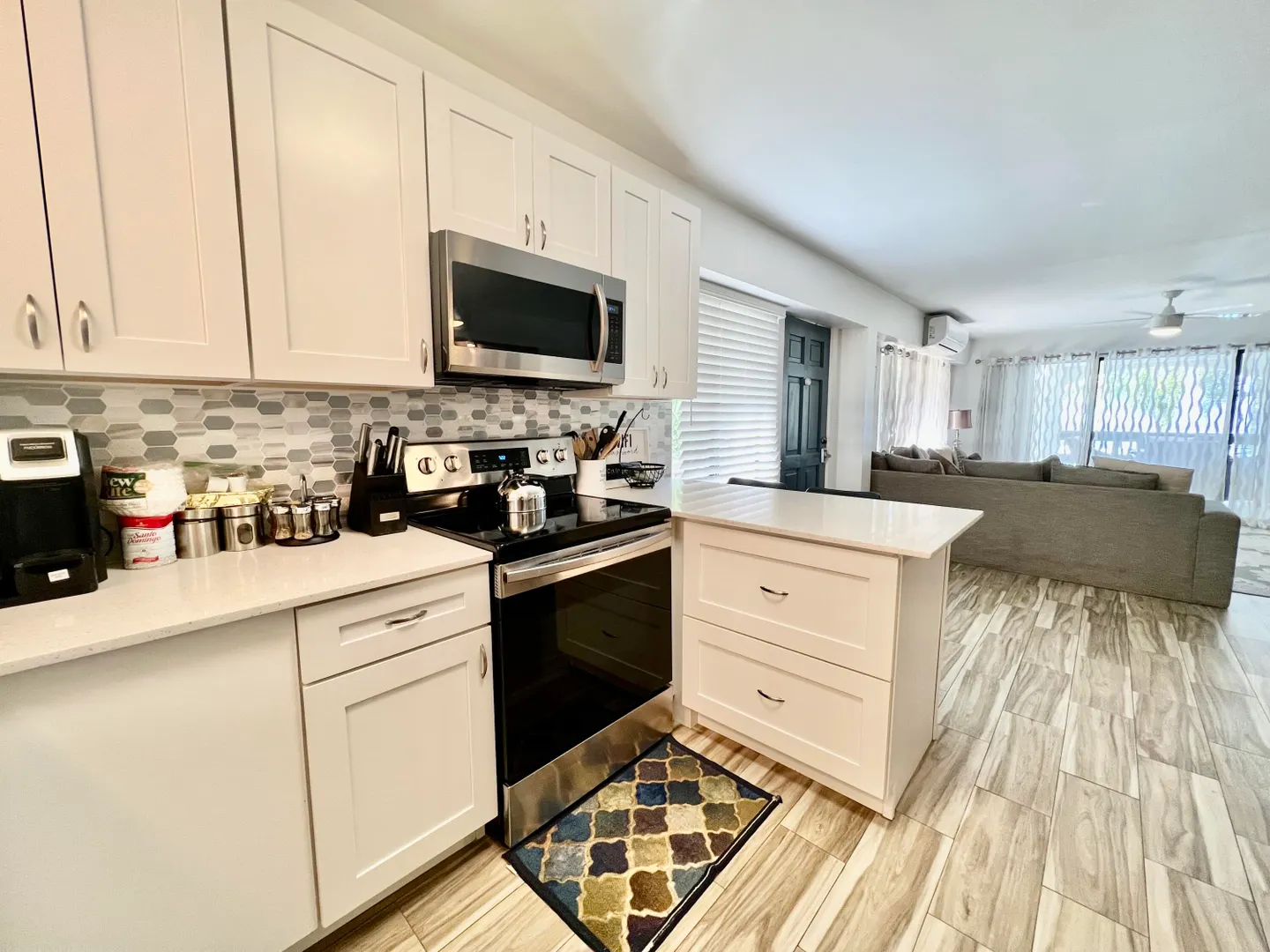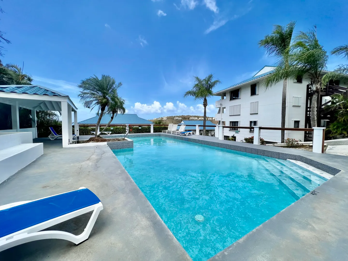 Professionally renovated condo with an ocean view and pool a few steps away. There are New Stainless-steel appliances, Washer and Dryer, A/C, and a generator for the water. This apartment is also conveniently located within 10 to 15 minutes to shopping areas and restaurants in town and RedHook.
