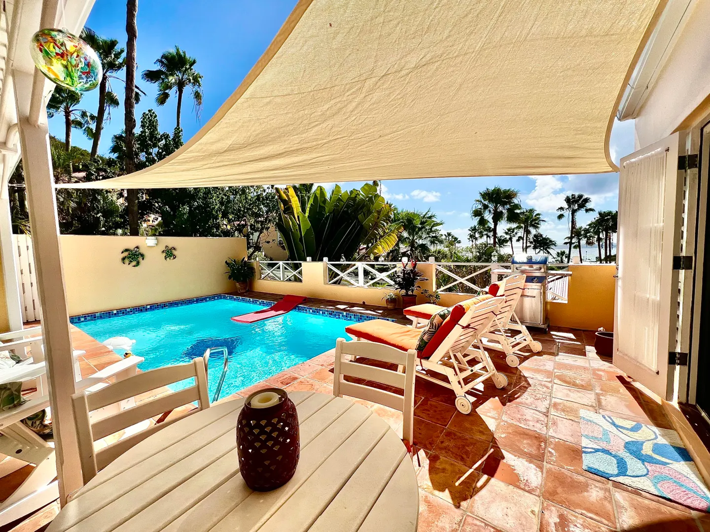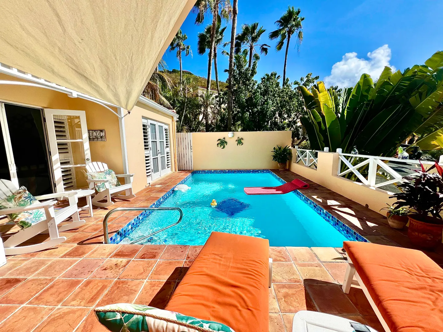 This beautifully maintained Bird of Paradise Villa offers palm tree and sea views in a peaceful, private setting. Featuring 2 bedrooms and 2.5 bathrooms, the villa includes a private pool, dedicated parking, and excellent privacy throughout. Located within the desirable Villa Madeleine community, owners also enjoy access to tennis courts and a relaxed island atmosphere. Enjoy the shade of the partially covered pool gallery or bask in the sun between dips in the pool. Turnkey to be your own personal retreat or start vacation renting immediately by just adding your own personal touches. Just 15 minutes from Christiansted, with grocery stores, restaurants, and everyday conveniences close by, and the beach only minutes away, this property offers the best of island living. Head to the bottomof the hill, grab a sandwich and coffee and head to the Yacht Club and hop on a boat for a day on the sea, all within five minutes of the condo. Whether you're searching for the perfect island escape or a strong vacation rental opportunity, this villa checks all the boxes.
