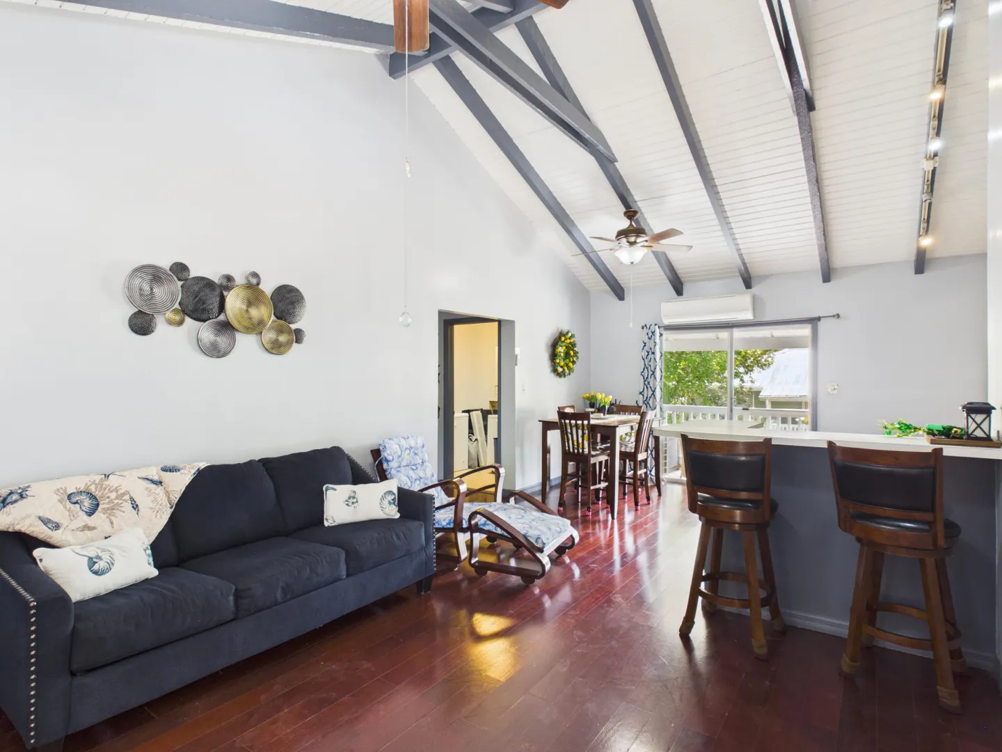 AFFORDABLE ISLAND LIVING at it's BEST! Imagine owning a PIECE OF PARADISE, where your only worry is which beach to visit first! Condo Dues are the LOWEST, $450/Month. Welcome to this CUSTOM, KING-SIZED, ONE BEDROOM, FULLY FURNISHED CONDO. Privately positioned CORNER-UNIT on the 2nd STORY. Located MID-ISLAND near all your necessary conveniences. Forget about the hassle of shipping furnishings, this unit comes COMPLETELY FURNISHED, so all you need to bring are your clothes and your favorite BATHING SUIT TO ENJOY the SPARKLING COMMUNITY POOL! Step inside and immediately feel at home in this meticulously maintained and freshly painted space. Pride of ownership shines through in every detail, ensuring a comfortable and inviting atmosphere.