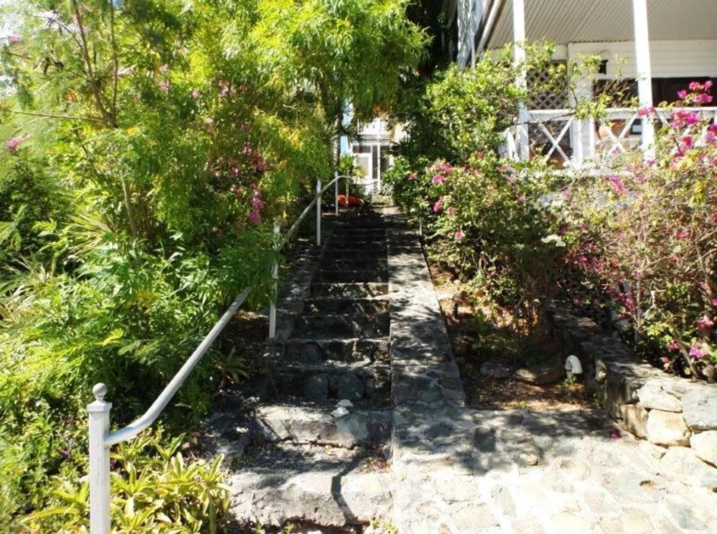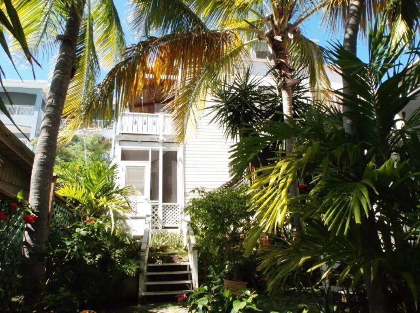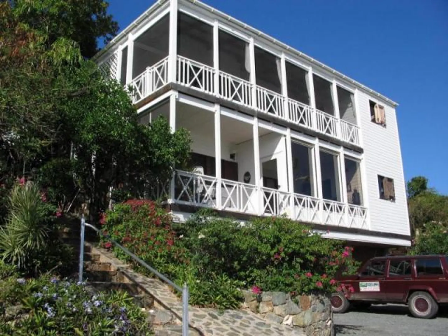 Spacious two bedroom condo constructed of Brazilian hardwoods with large porch. Walk to town and nearby Frank Bay, Gallows Point and Cruz Bay Beaches. Enjoy harbor and Caribbean views from the deck and common entertainment area. Low condo fees include insurance on buildings.