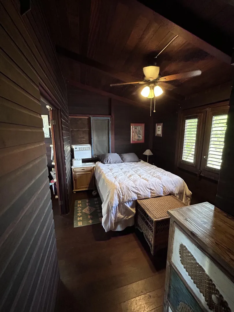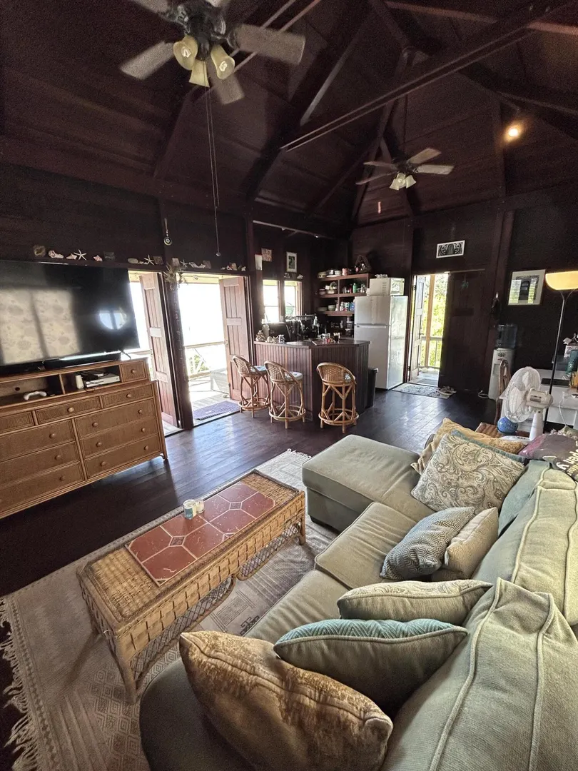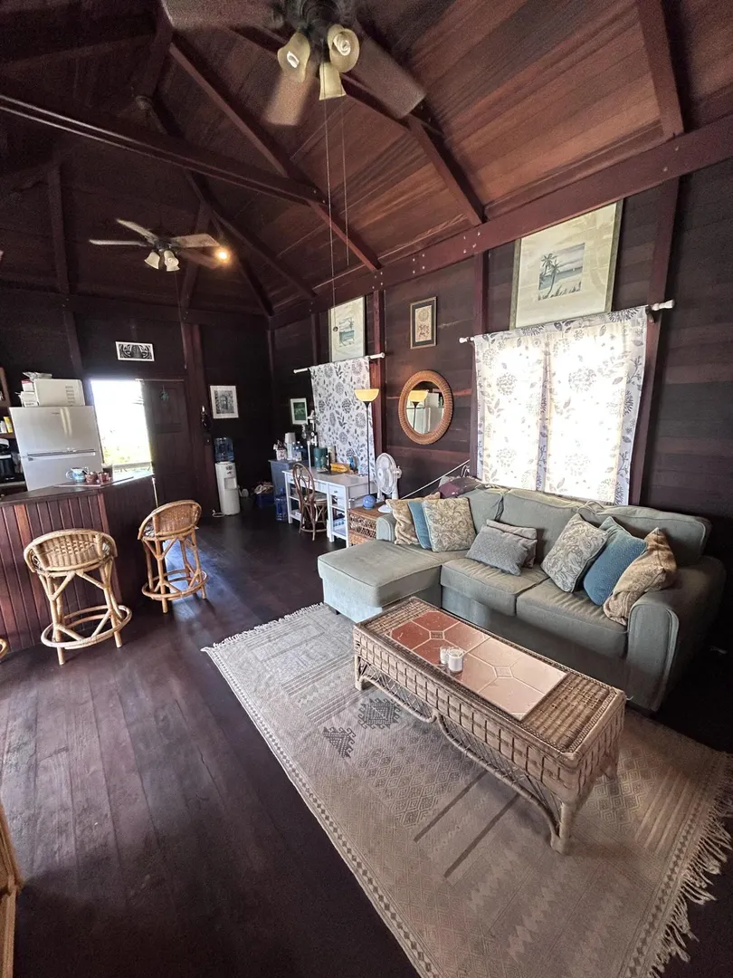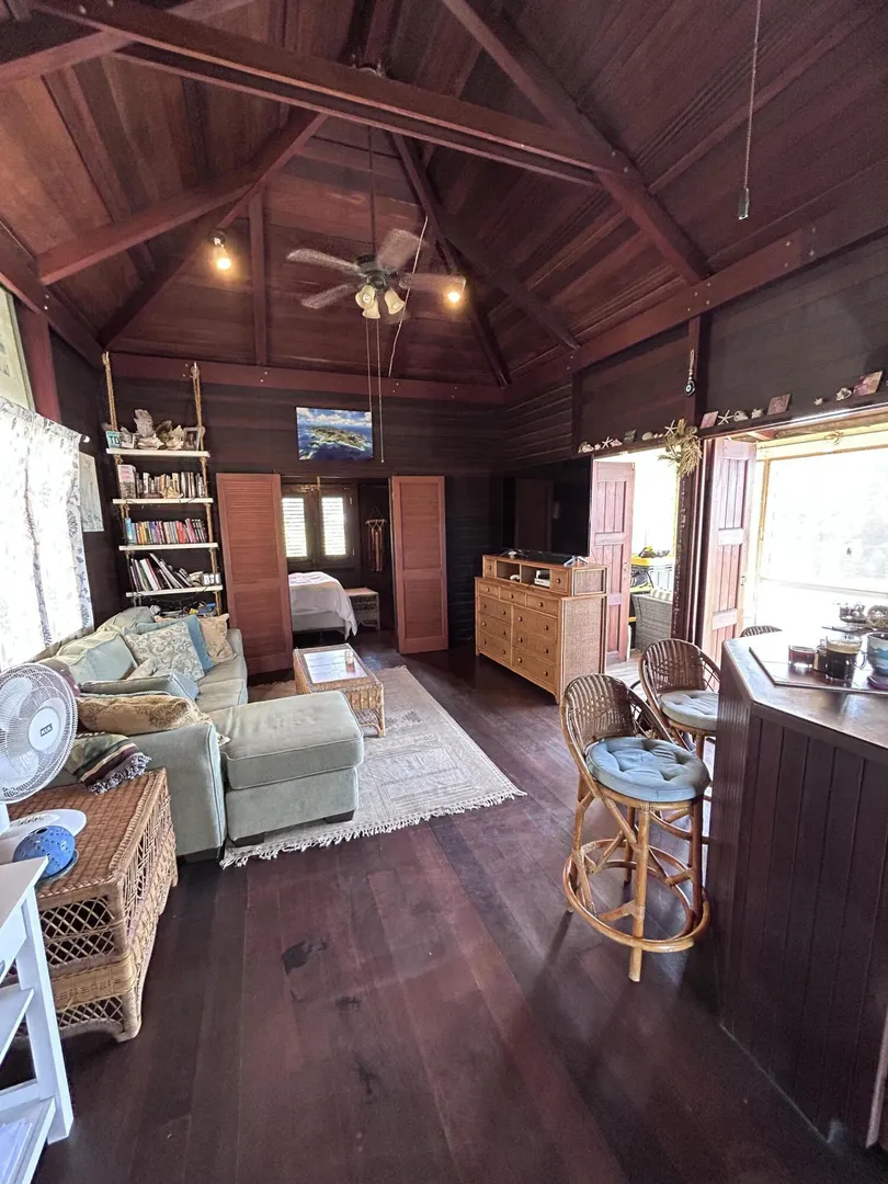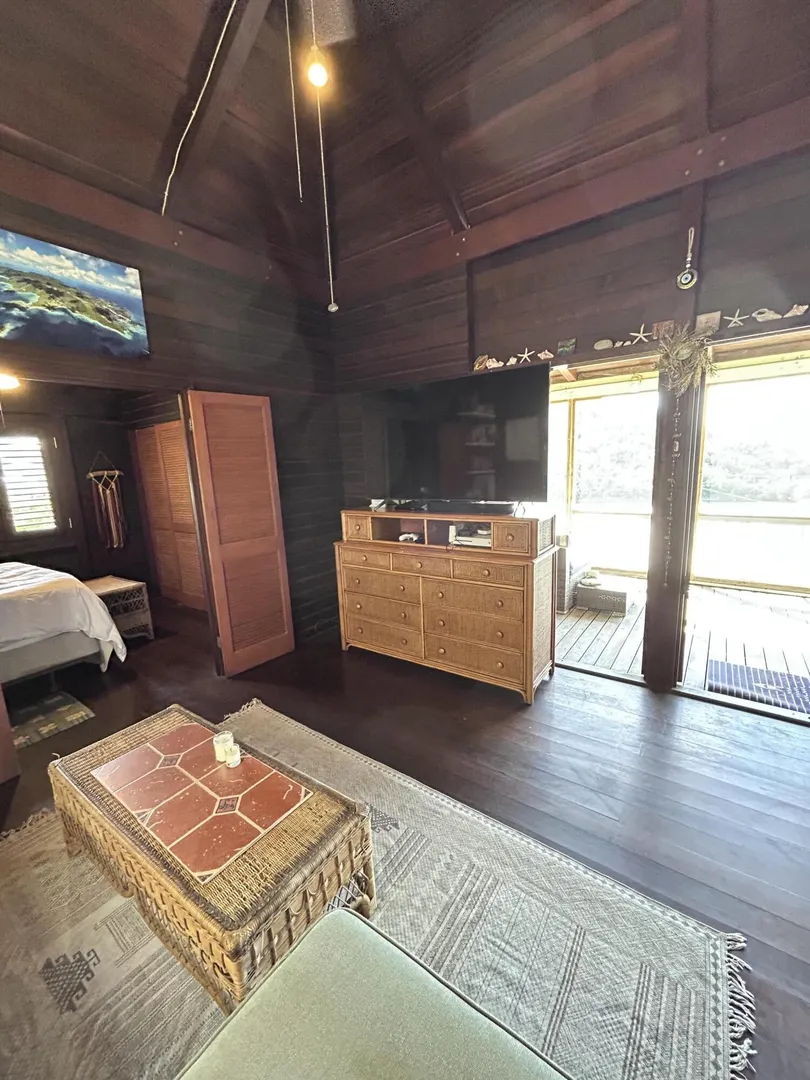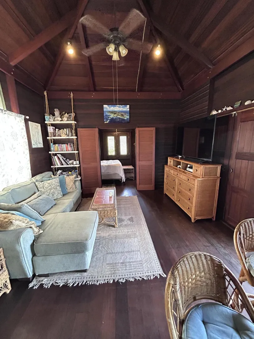 Conch Villas Condo 1x1. This quaint condo is the perfect fit for first time owners or for someone wanting a enjoyable in-town space when they visit St. John. This quiet, adorable, durable Brazilian hardwood condo is located at the front of the property, on the top floor. High vaulted ceilings, full kitchen, screened in wrap around porch, washer and dryer in unit. This condo has views of harbor and Caribbean ocean. It comes with a designated parking space and is easy walking distance to town.