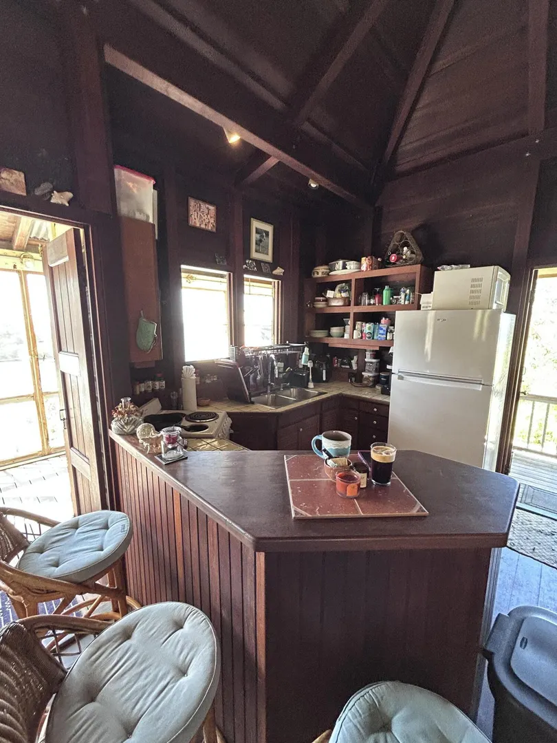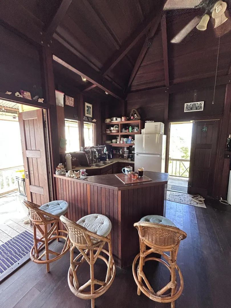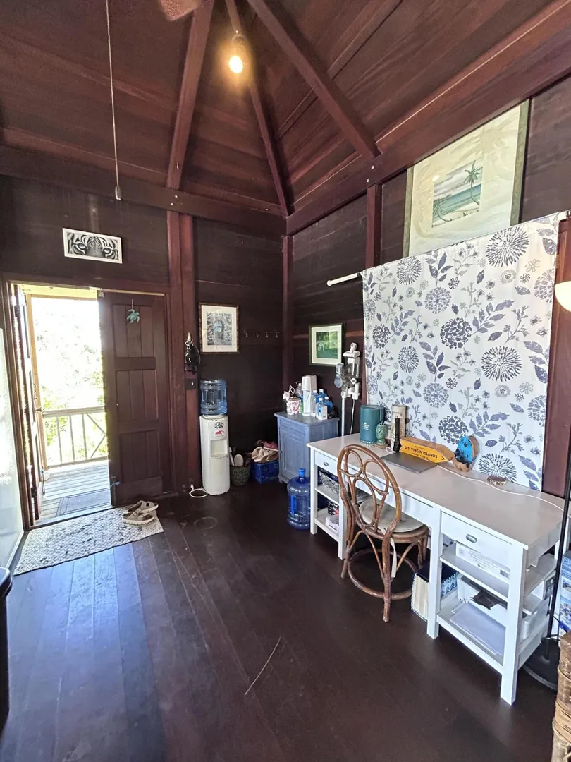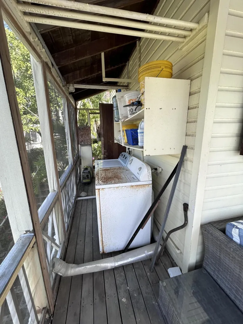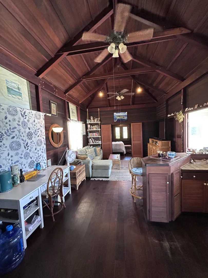 Conch Villas Condo 1x1. This quaint condo is the perfect fit for first time owners or for someone wanting a enjoyable in-town space when they visit St. John. This quiet, adorable, durable Brazilian hardwood condo is located at the front of the property, on the top floor. High vaulted ceilings, full kitchen, screened in wrap around porch, washer and dryer in unit. This condo has views of harbor and Caribbean ocean. It comes with a designated parking space and is easy walking distance to town.