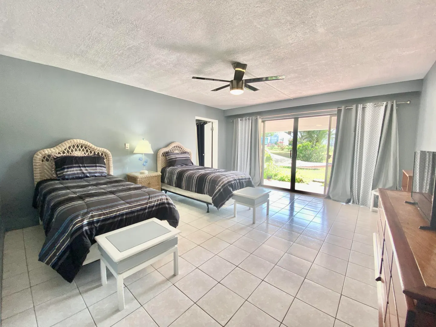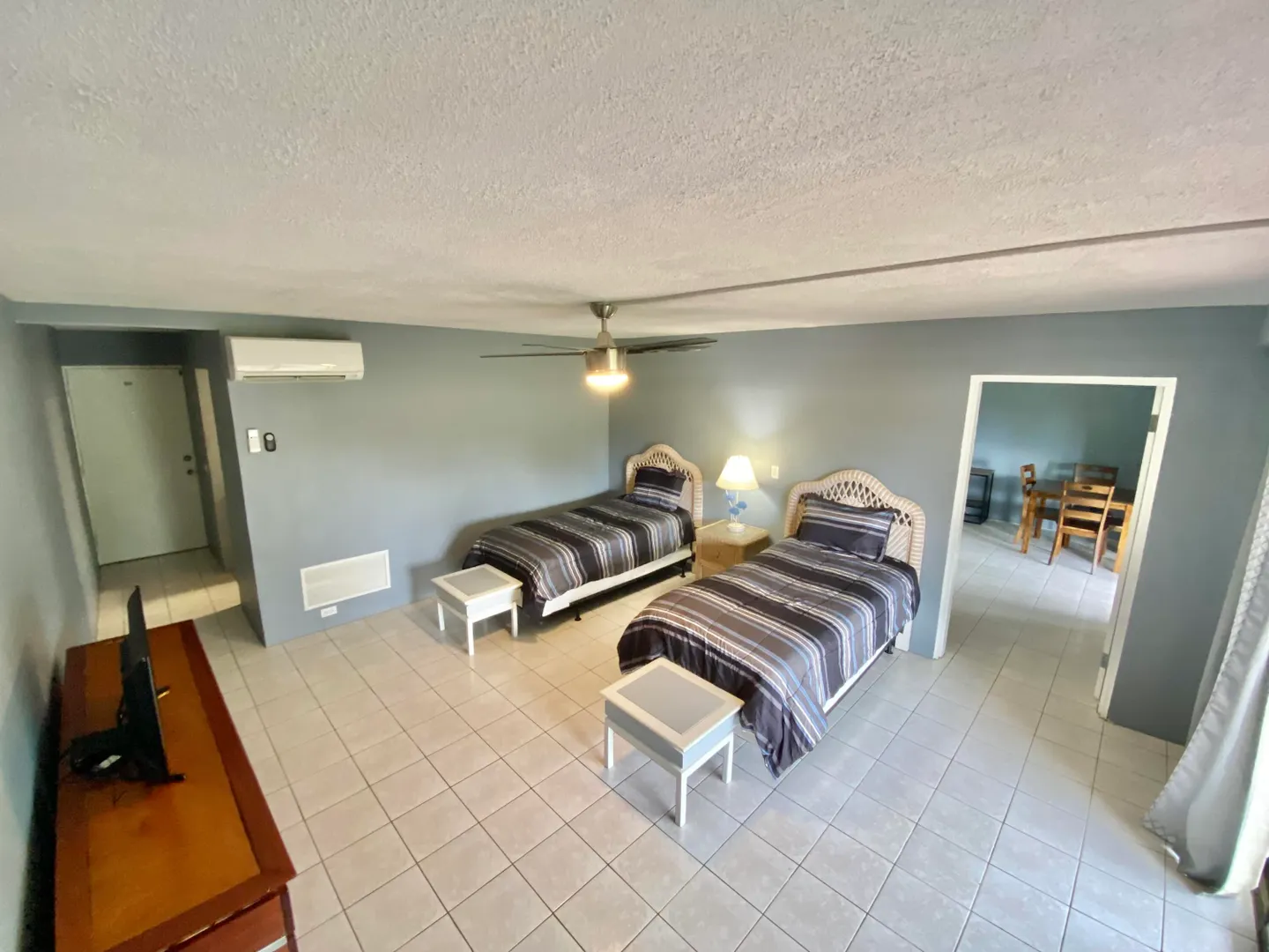 Nestled in the tropical setting of one of the Caribbean's historical and romantic islands, you will find Estate Carlton Condominiums filled with charm. Recently remodeled two spacious air conditioned rooms, two bathrooms, a kitchen equipped with a refrigerator and gas stove. This is a lower unit with an individual garden patio. Gated access, common laundry, net metering, 15 minute drive to West End Beaches, dining, and grocery stores.