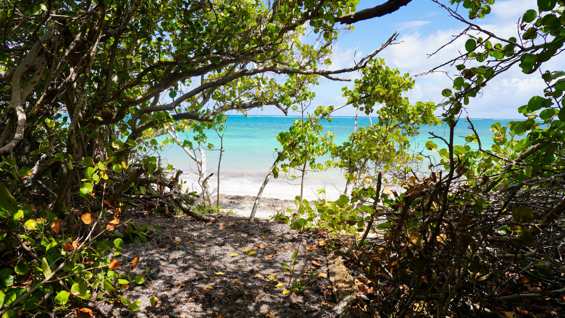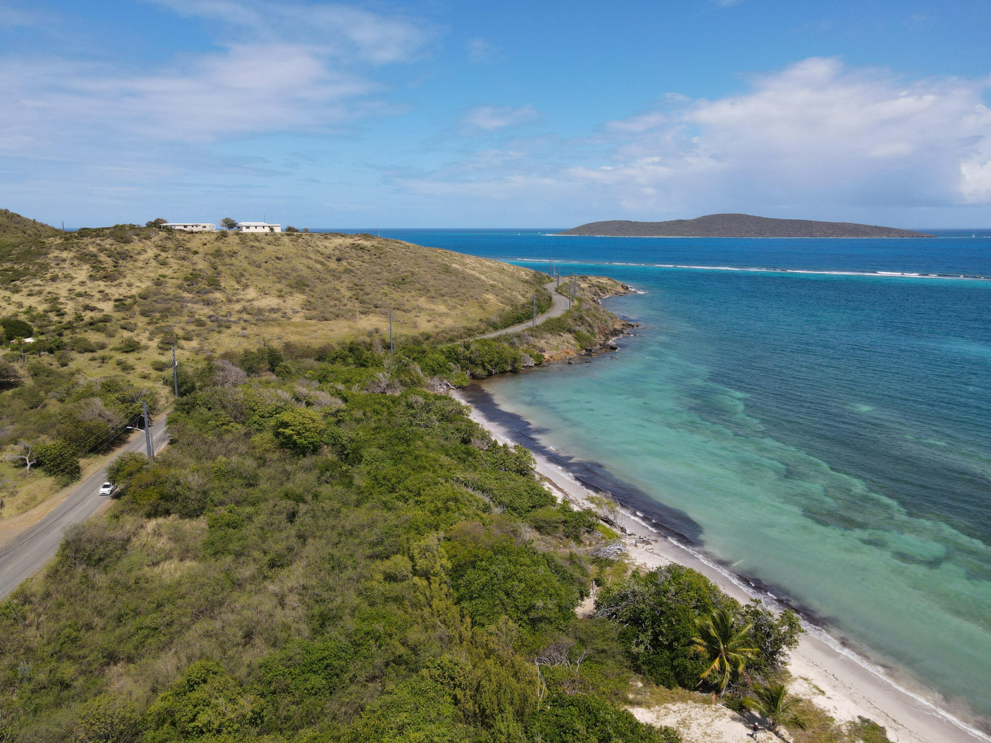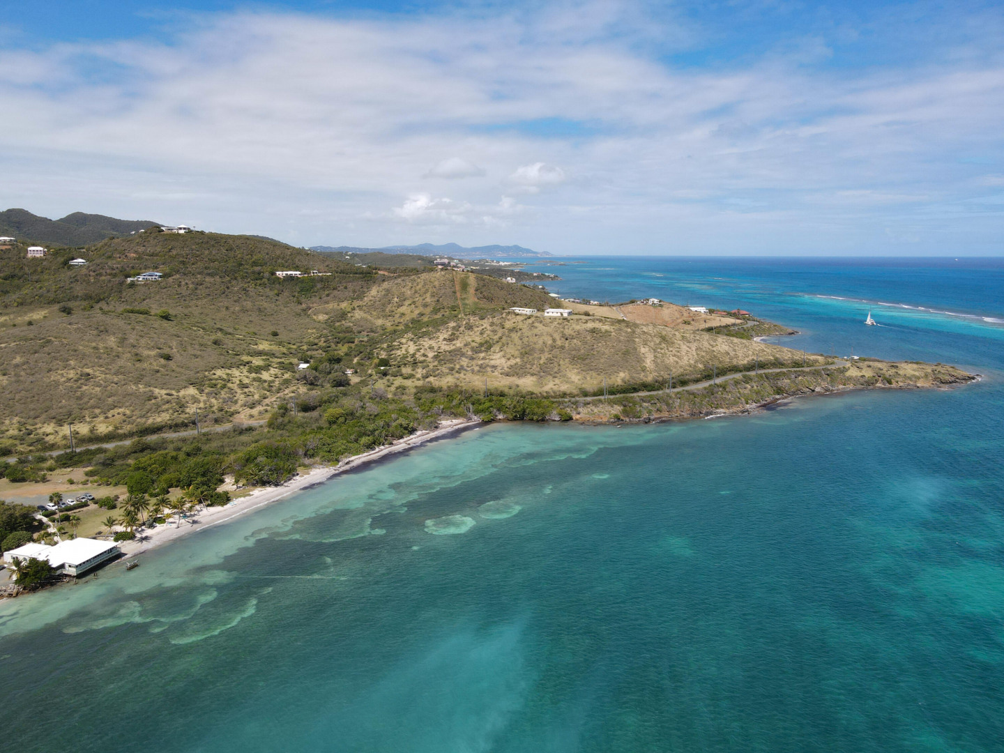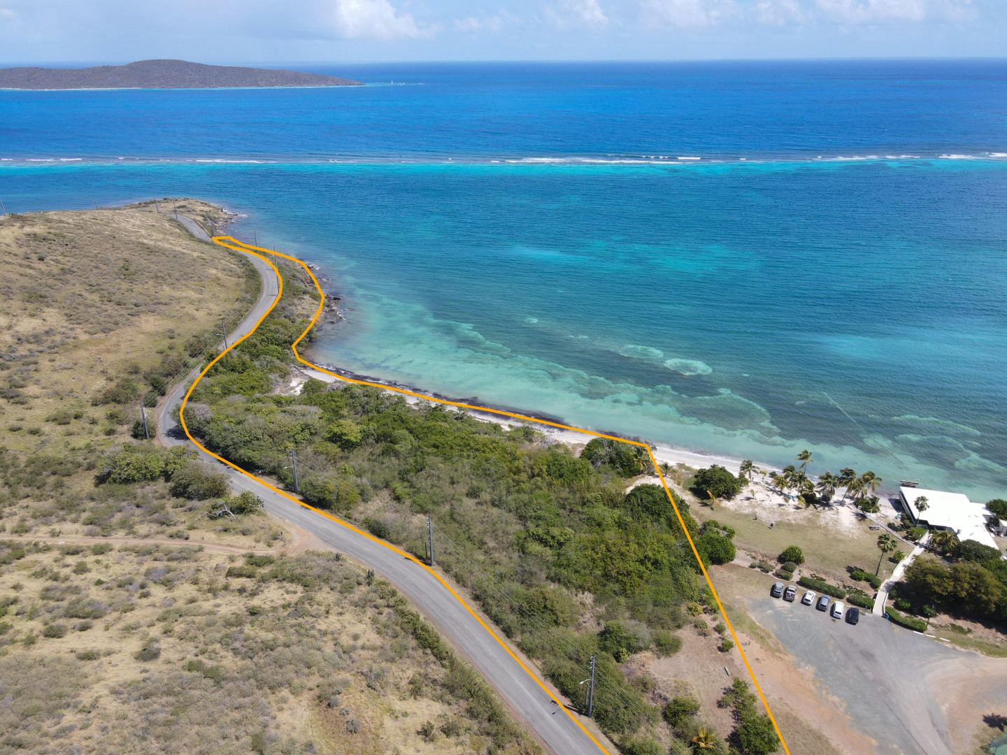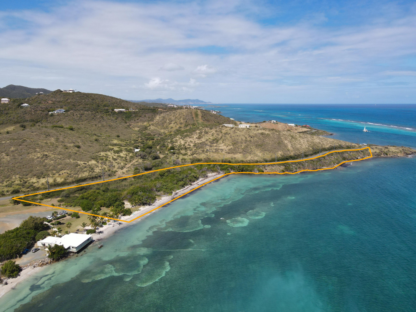 Gorgeous expanse of sandy beachfront property on tranquil Teague Bay. 5 acres zoned R-3 perfect for homesites or condominium. 384 feet of sandy beach on the flat and 138 feet of rocky terrain ascending up the hill. Formal pillars at entryway on East End Road. Walking path marked with yellow and blue ribbons.