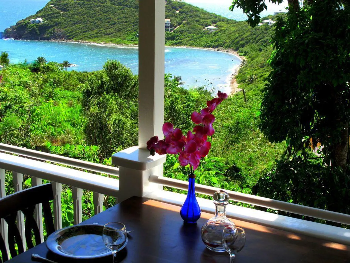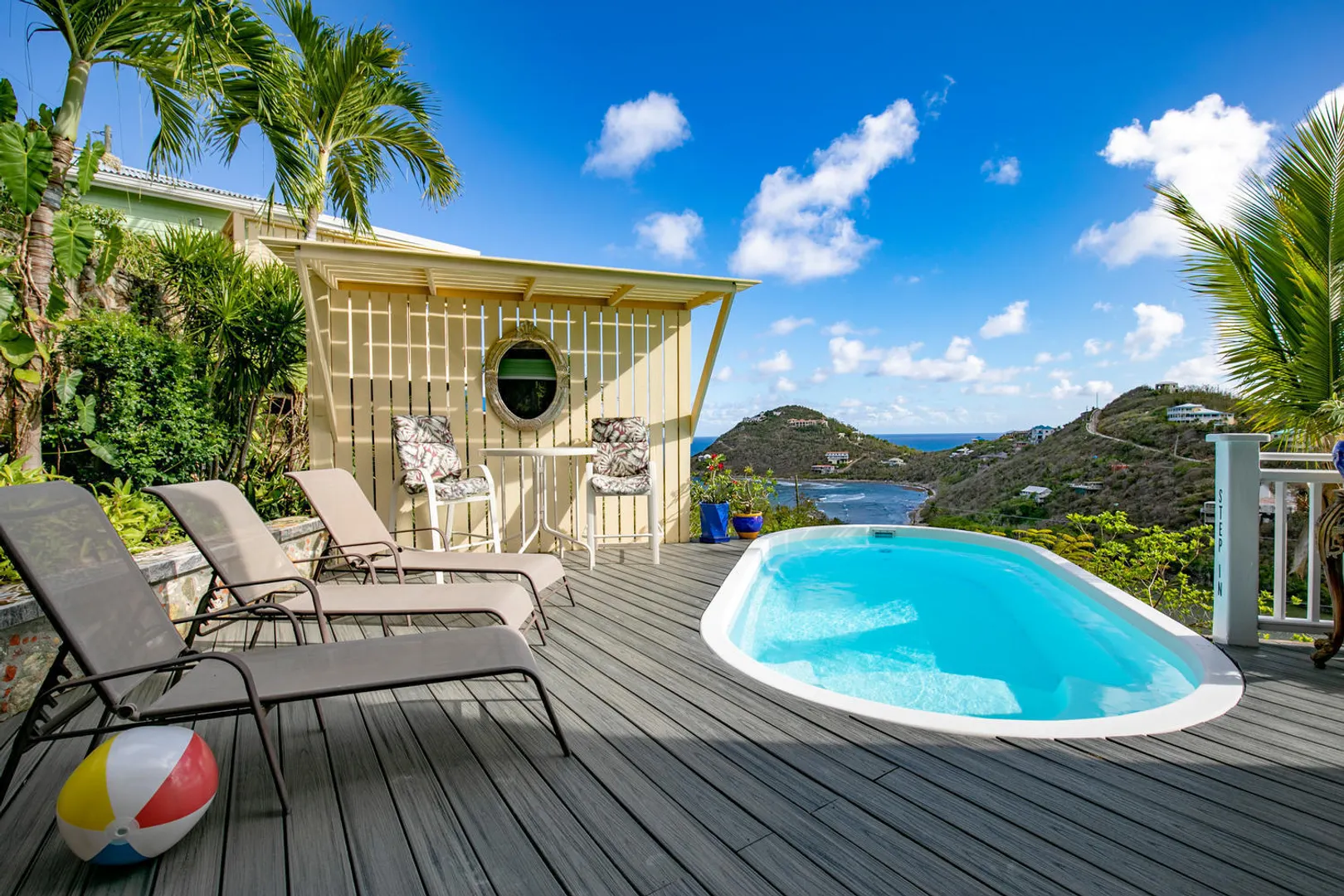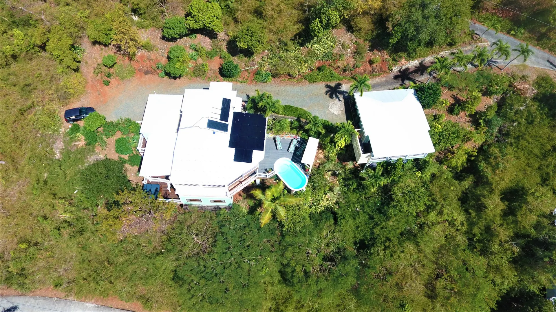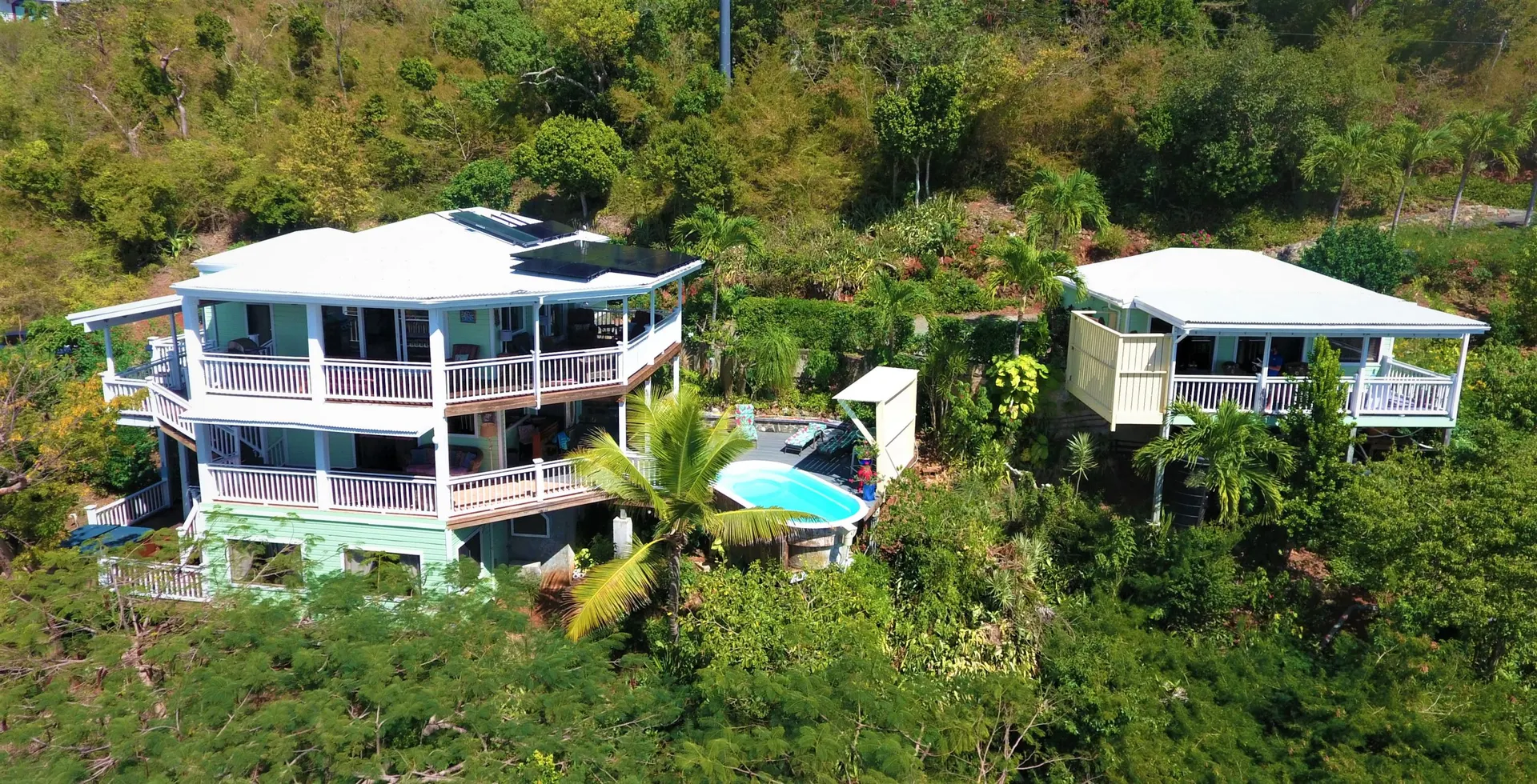 Villa Meritage is a private oasis nestled into the verdant hillside overlooking Hart Bay and Chocolate Hole. Facing west to capture fiery sunsets, the 4 bedroom - 4 bath pool home with jacuzzi features a stand alone studio cottage (built 2000) with private jacuzzi. Beautifully landscaped and tastefully furnished, this villa has a great rental history.