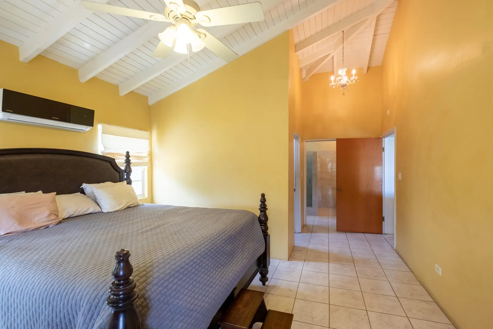 Discover the perfect island retreat with this 3 bedroom, 2 bathroom home situated on .79 acres in the quiet and private Hermon Hill neighborhood. The property offers a Caribbean Sea view from its covered gallery and refreshing hillside breezes.Inside, the inviting open floor plan with cathedral ceilings enhances the spacious and airy atmosphere. The heart of the home features a remodeled kitchen and ample space for culinary creativity. The generously sized primary suite is a true haven, showcasing a tastefully renovated bathroom that exudes luxury and style. The residence boasts split AC throughout, ensuring comfort in every corner.
