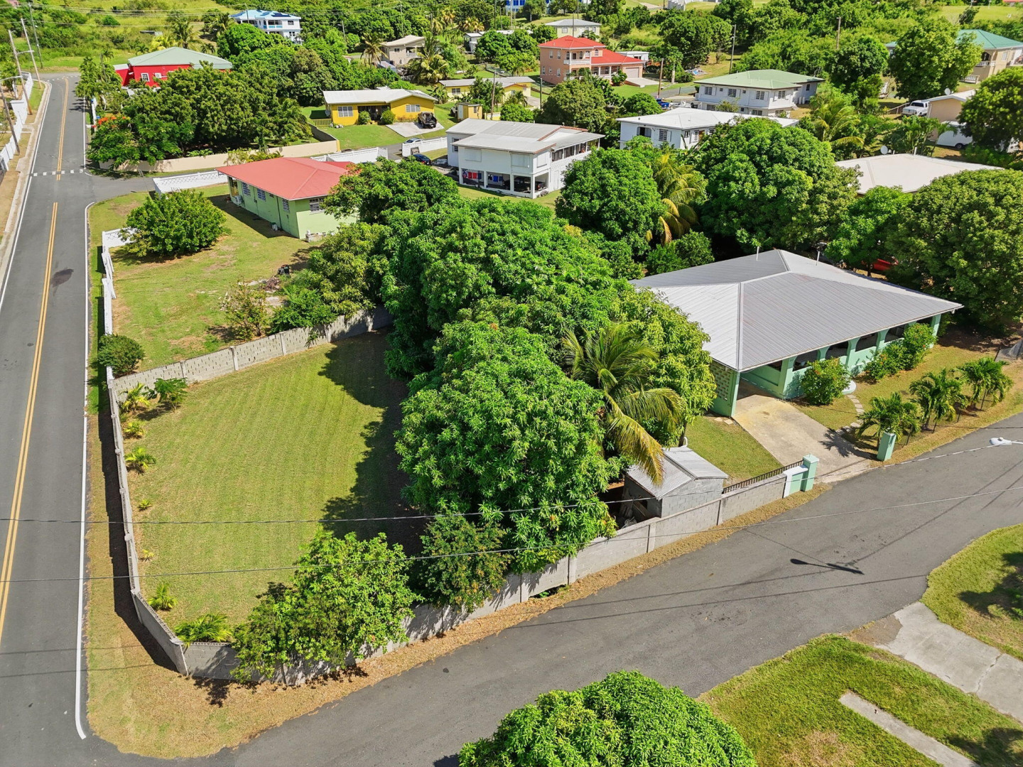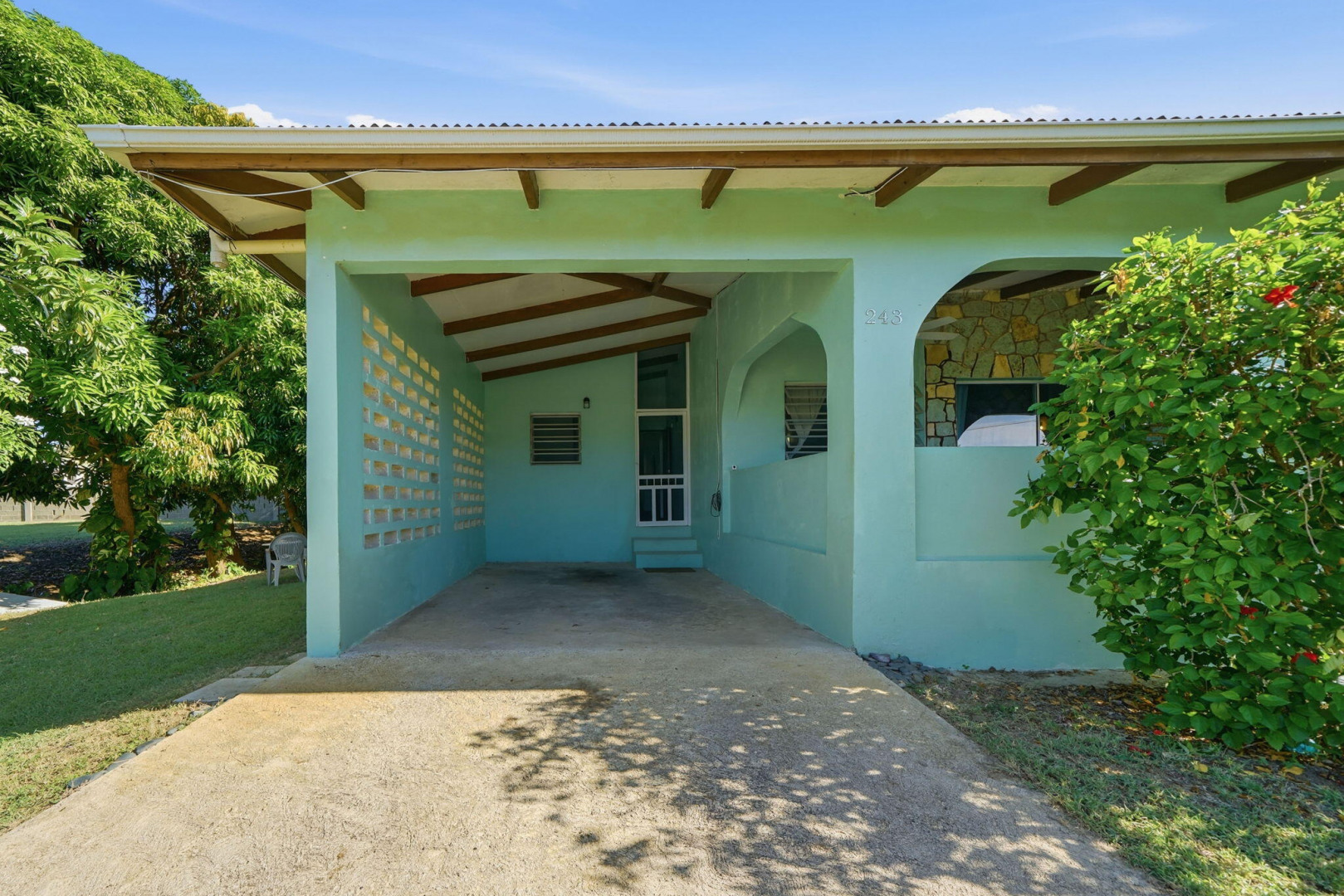 A peaceful paradise resides at 243 Hermon Hill! This fully fenced 3 bedroom 2 bathroom home features beautiful high ceilings, a spacious living area, large gallery for entertaining and a wonderful side yard - perfect for kiddos to explore or start your dream garden! The newly tiled home is situated on 0.35 acres and is just a short drive to Christiansted. The home comes mostly furnished, including a washer and dryer and all bedrooms offer split AC's. The guest bathroom was fully renovated boasting beautiful tile work and finishes. The property has been well-maintained there are several different fruit bearing trees on the property, including guava, sour sop, sugar apple, sour orange and 8 different mango trees! The covered carport and outdoor shed for storage are extra perks.A full list of home improvements and fruit bearing plants and trees can be found in the documents. The convenient location, charming neighborhood and ample living space cannot be beat! Schedule a showing today.