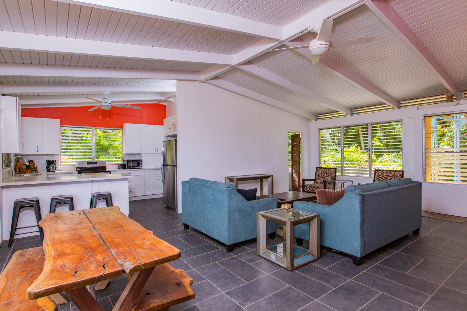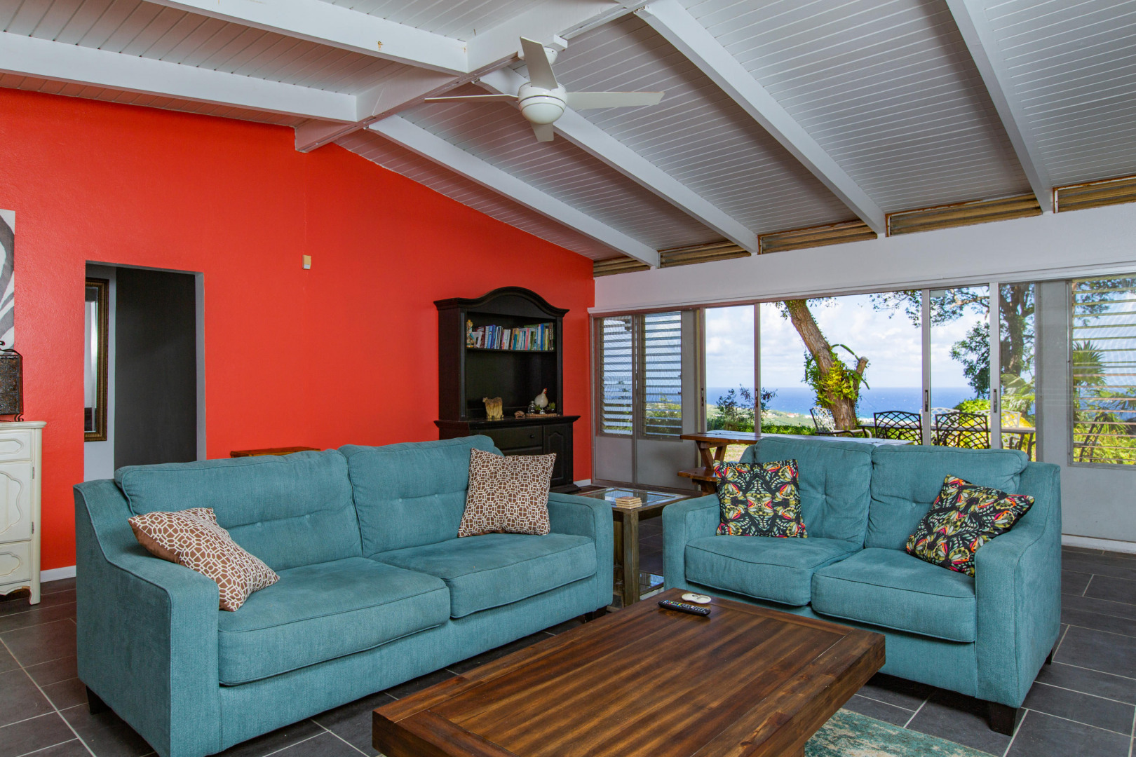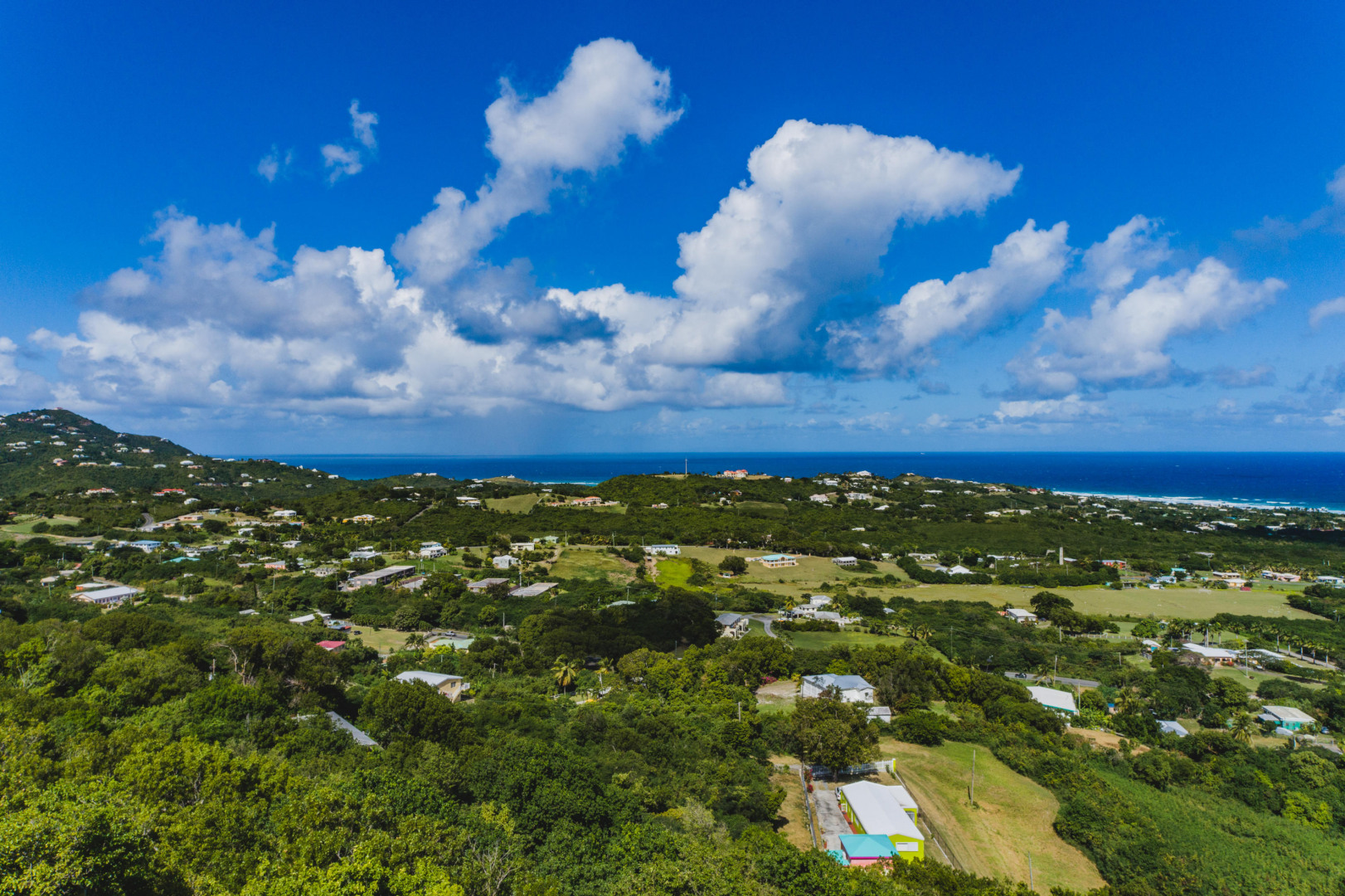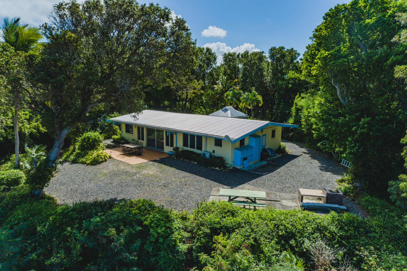 Welcome home to over an acre of tropical paradise with expansive views of the Caribbean Seas spanning Salt River to Buck Island. A canopy of mahogany trees cover a large, flat, fenced yard. The property is rich with orchids, aloe, palm trees, birds of paradise, bougainvillea, succulents, passion fruit, noni, papaya and guava. Ample trade winds from the hilltop location provide an almost year-round breeze. The home boasts an oversized 47,000 gallon cistern, providing ample water in the driest of seasons. The kitchen, bathrooms, floors and roof were all completely redone in 2018. This open and airy house includes a third room that could be used as an office or converted to a third bedroom. Conveniently located mid-island, minutes from downtown Christiansted, the hospital and refinery.