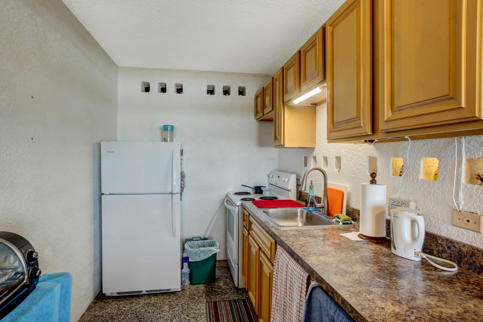 This cozy one bedroom unit has been well maintained and features walk in access with parking just outside the door. Terrazzo flooring and a stone accent wall adorn the roomy floorpan that spills out onto the breezy patio where you can relax with your morning coffee while taking in the view. Beaches are nearby, or stay home and enjoy the sparkling community pool that is just steps from your door. Convenient mid island location and low monthly fees make this a great investment property or the perfect place to call home!
