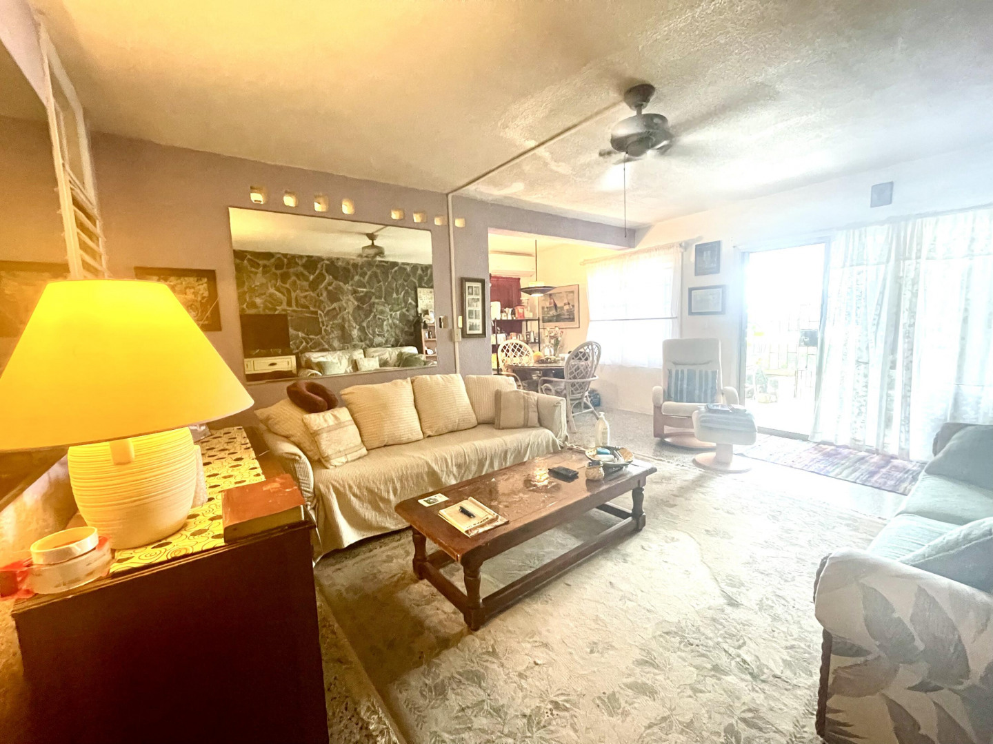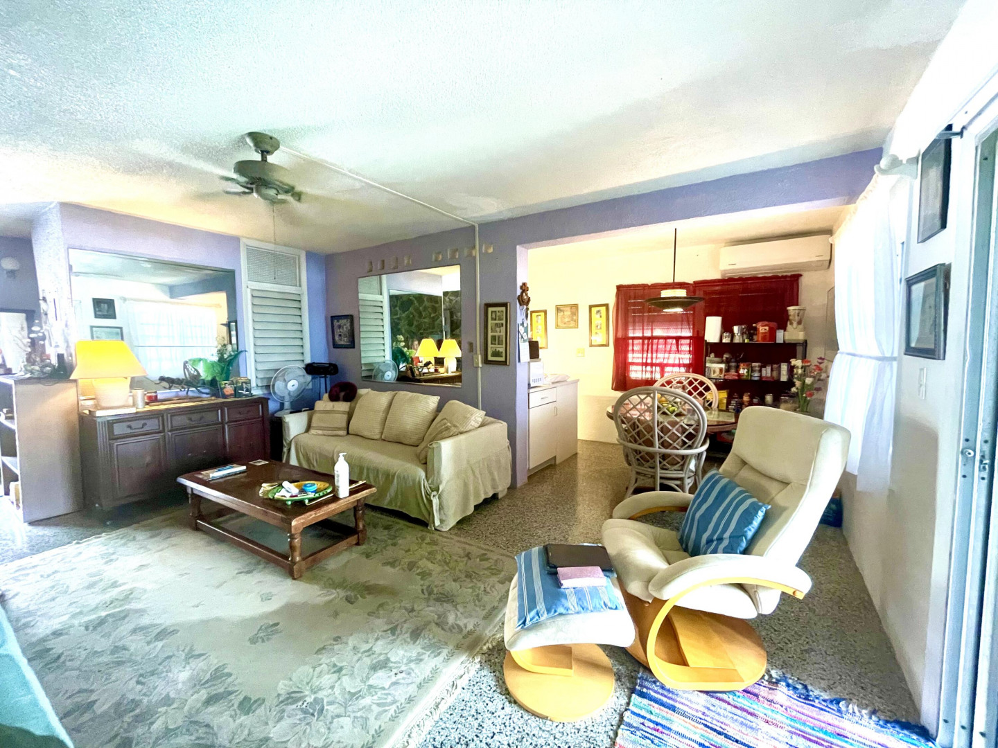 Tucked away in the peaceful community of Vista Mar this one bedroom end unit offers walk in access with parking just steps from the door. This unit features terrazzo flooring, a beautiful stone accent wall, and plenty of storage. Enjoy breakfast and views of the Caribbean from the gated patio that features additional storage and opens onto the manicured yard. Take a walk through this pet friendly community and you will find the sparkling swimming pool, banana and mango trees, and a laundry facility. Convenient mid island location and low monthly fees make this a great investment property or the perfect place to call home!