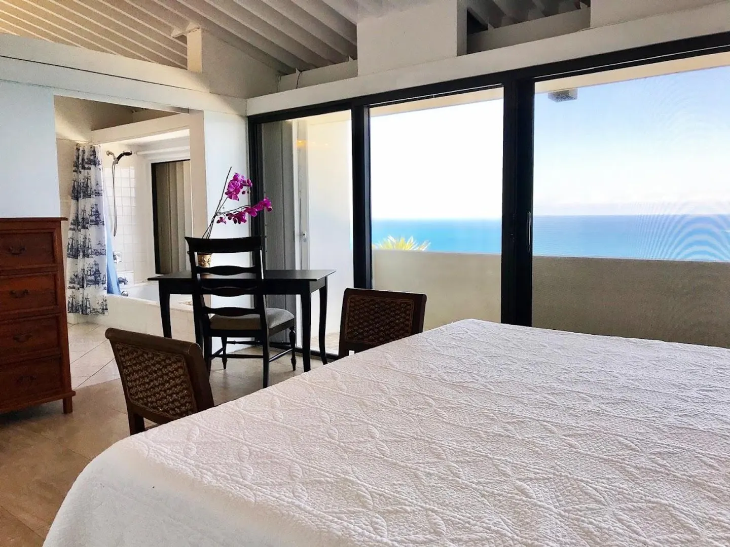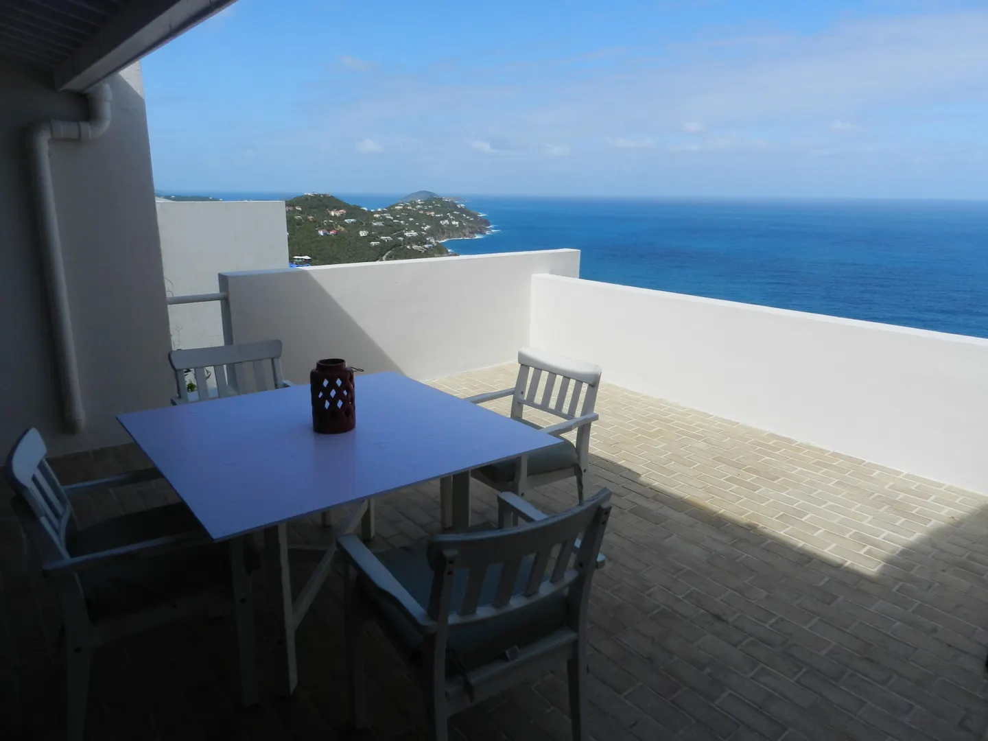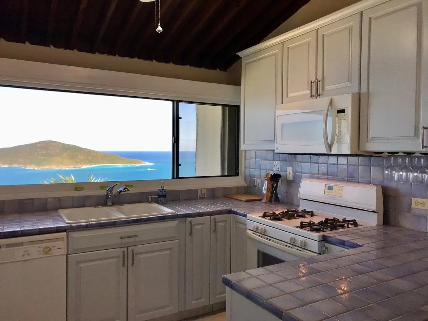 Spectacular down island views and constant cooling tradewinds are hallmarks of this East facing Upper unit, perfectly sited inside the secure, gated grounds of Mahogany Run. Recently remodeled and upgraded, this unit is uniquely located in a stand alone building, assuring exceptional privacy.Spacious patio off the cathedral ceilinged living room, creates a sense of expansiveness. Sweeping views spill into the beautifully renovated, window lined kitchen. Crisp, modern upgrades to baths, as well as custom expanded second bedroom, add to the value. State of art Hi Efficiency split ACs, but rarely needed. Only a short walk to the alluring, always tranquil, hilltop pool. Single, designated, covered parking. Unit also has a diesel generator hardwired for WAPA outages