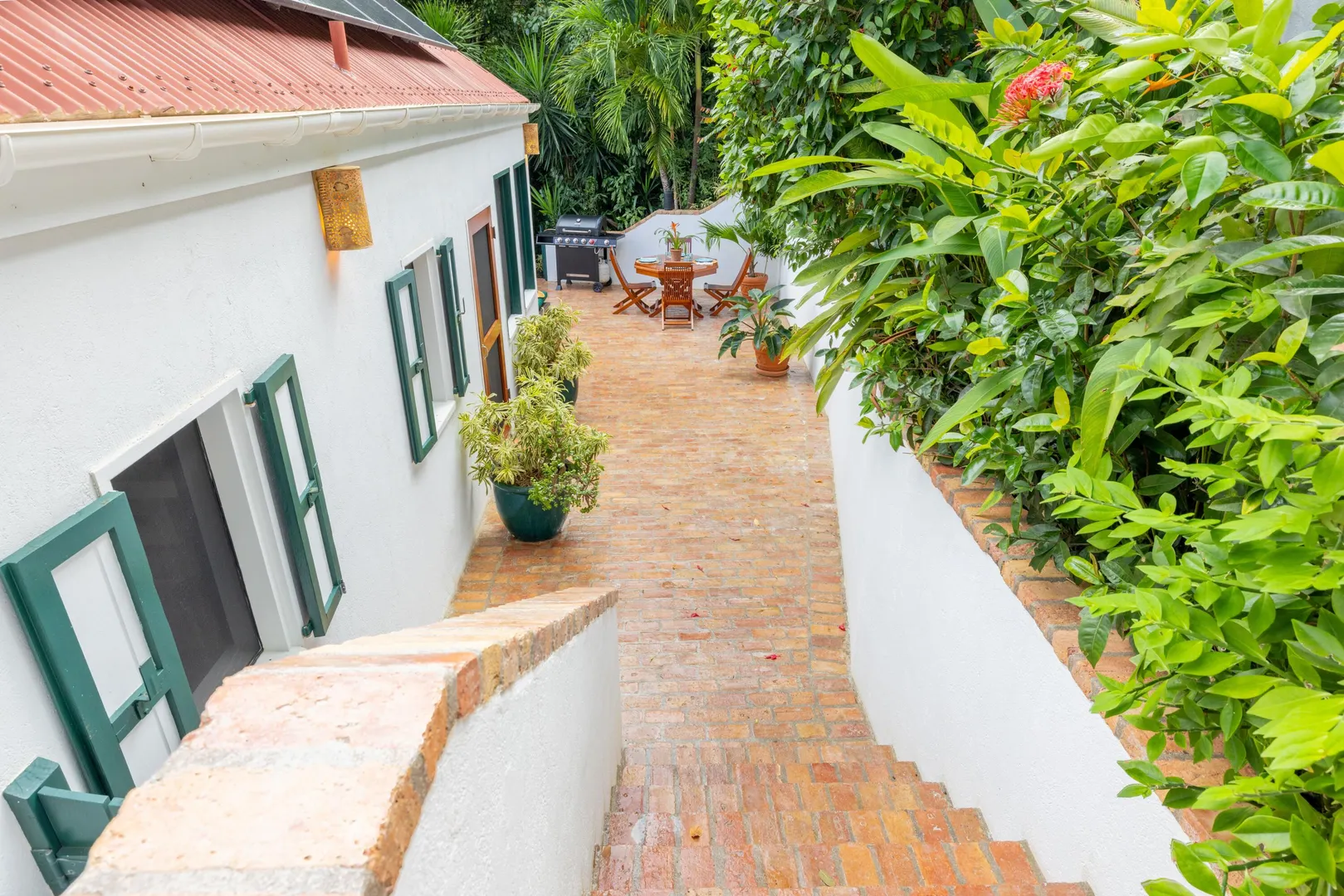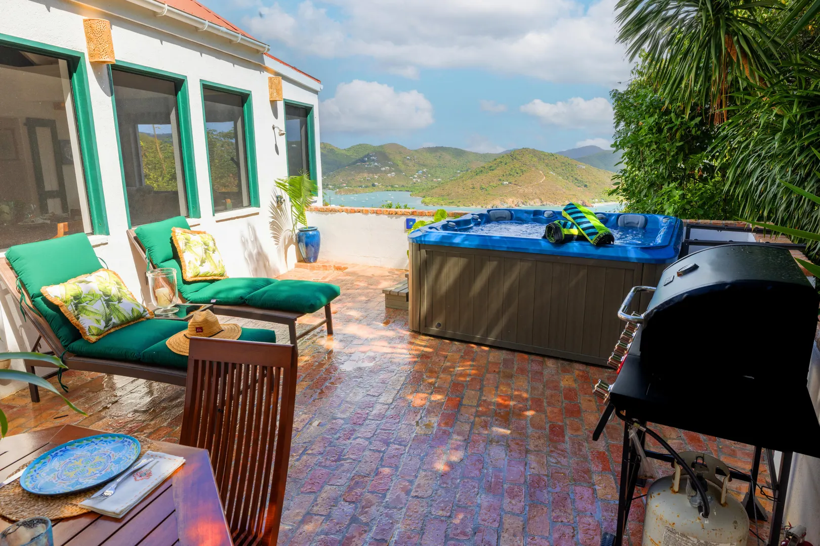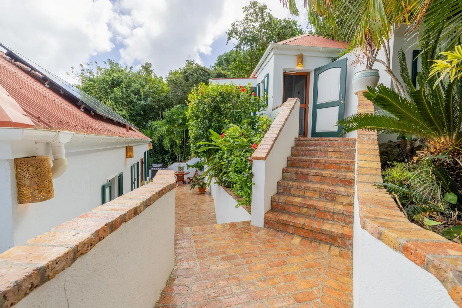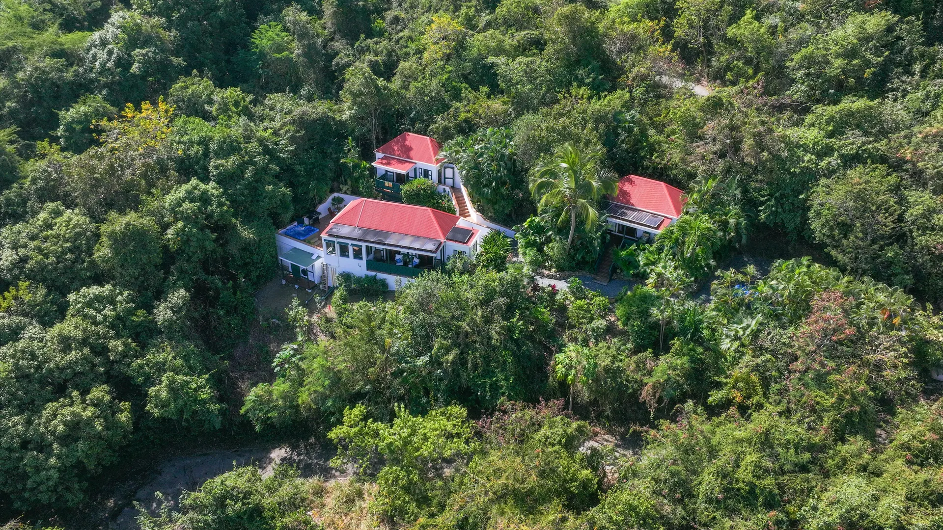Windwardside Cottages, a turnkey rental opportunity, offers classic Caribbean charm with three masonry pods perfectly intertwined amongst bricked pathways and lush gardens. Each of the two bedroom pods offer ensuite baths and outdoor showers. The guest bedroom pod also offers a small kitchenette. The main pod comprises the living room, kitchen with newer appliances, the third full bath and two porches to choose from -both of which capture the expansive and easterly post card views of Coral Bay to the BVI. Two hot tubs on property-one in guest cottage and one off the main pod. New hardwood screen doors and decorative shutters, new ceiling fans, updated landscaping and two Tesla power walls with nineteen panels. This property has been meticulously maintained, and it shows!