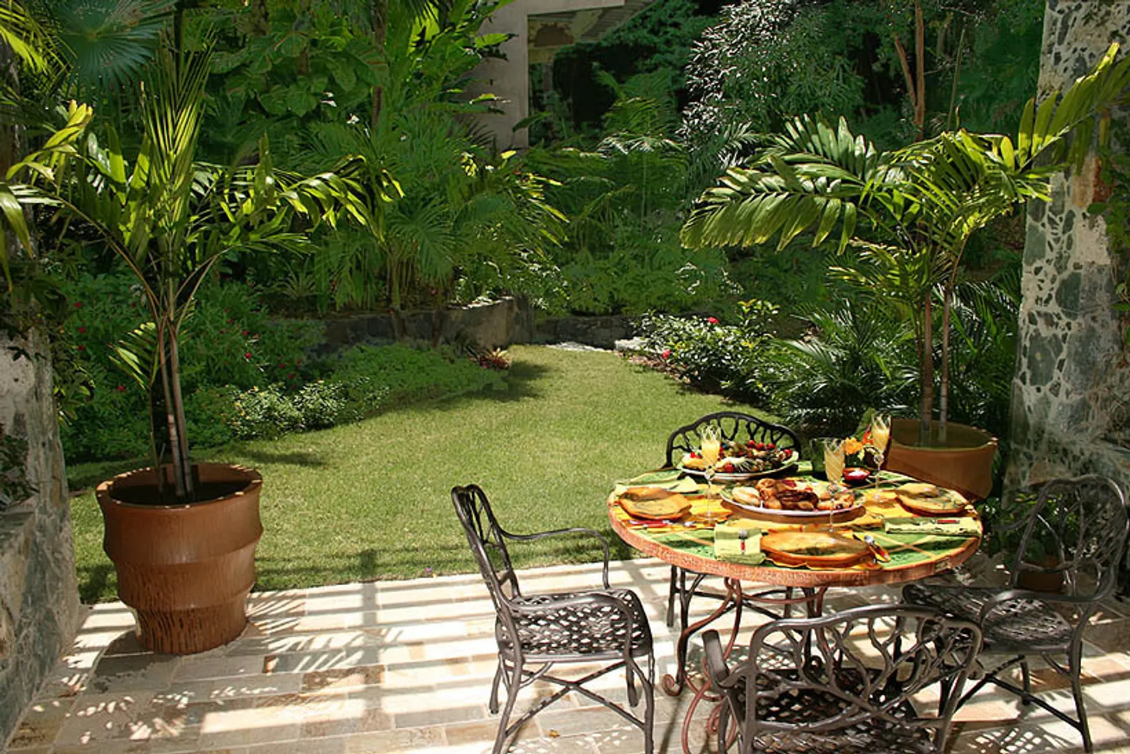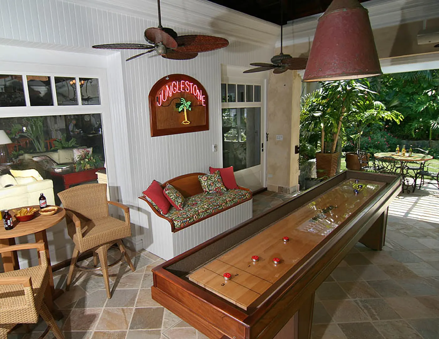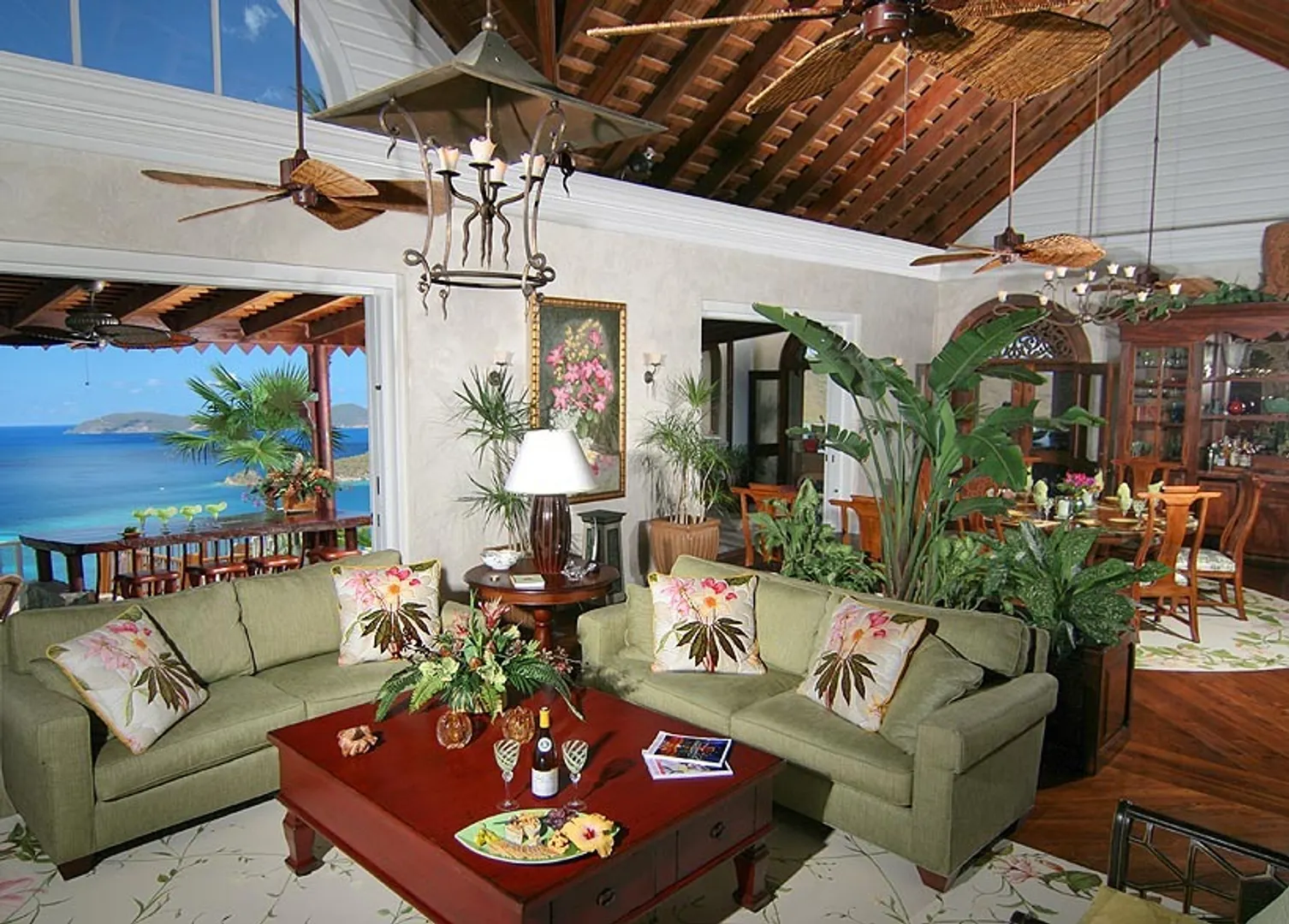 ''JUNGLE STONE'' is an ultimate luxury villa hidden deep within the VI National Park overlooking the pristine North Shore of St. John and the BVI's. The generous 1 acre parcel gives an estate feel with protected boundaries & magnificent views. The main house, & cottage, ''The Pebble'', have 5 individually decorated suites that are complimented by the high ceilings and exquisite appointments. The fantastic Great Room and custom kitchen transition smoothly to the views and many outdoor dining and sitting areas. The property offers a pool, hot tub, Fitness room, 1100 bottle wine closet, shuffleboard breezeway & more! See Supplements for added detail.