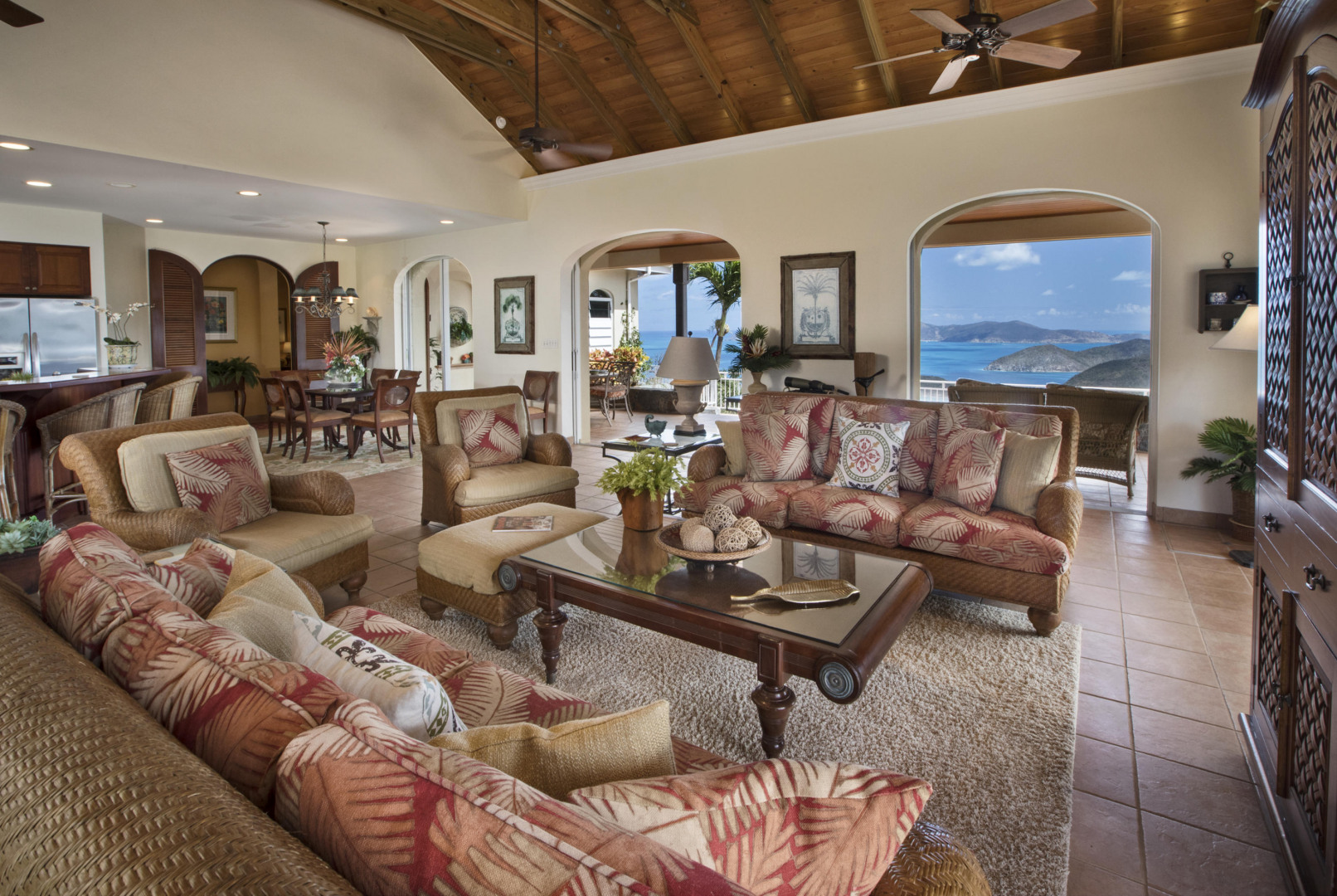 Discreetly tucked behind a gate at the end of a long winding driveway, Island Sun sits high atop one of St John's most treasured locations with 270 degree north shore views from Jost Van Dyke, Whistling Cay, the West End of Tortola all the way south to St Croix. Tastefully designed, the home elegantly melds classic West Indian vernacular design into a versatile modern villa estate equally suited to serve as either a primary residence or the quintessential island retreat. This ultra-private, acre plus knoll top refuge offers all the essential luxuries required for the ultimate St John lifestyle. Highlights include four well appointed guest suites, masonry construction, a professionally landscaped park-like setting, a sun drenched pool deck, private hot tub and a deep wrap around