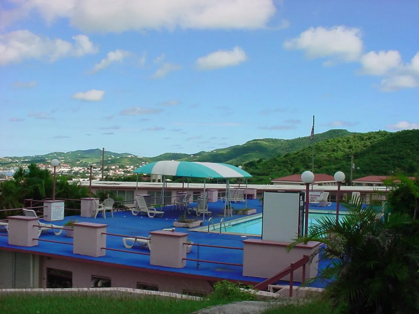 Fantastic ground level unit, located in upper building on hill. One BR with A/C; large living room/dining room area. Refrigerator, stove and A/C bought in 2002. A few steps from pool with a great view of Buck Island, Christiansted Harbor and Judith's Fancy.