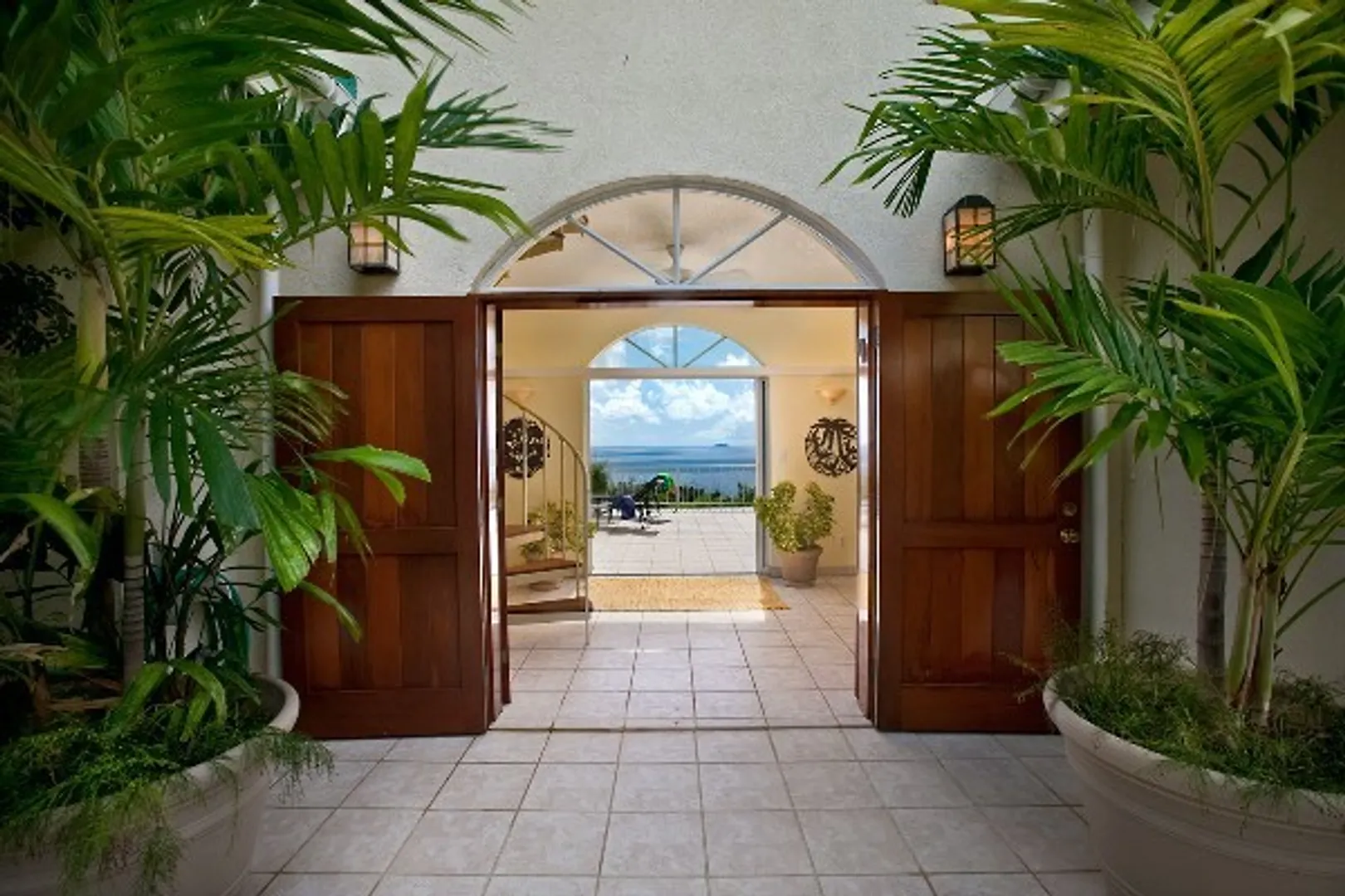 VILLA SPLENDORE - Sculptured high on a magnificent bluff overlooking the Caribbean Sea, Splendore can be your luxury retreat in paradise. The architectural design of this elegant residence combines Antillean style with European charm. Completely screened and connected by breezeways, two private bedroom suites sit on either side of a large great room that opens onto expansive open and covered porches. A second story loft office doubles as a third bedroom for added guests. Amenities include a pool and spa surrounded by lush tropical landscaping.