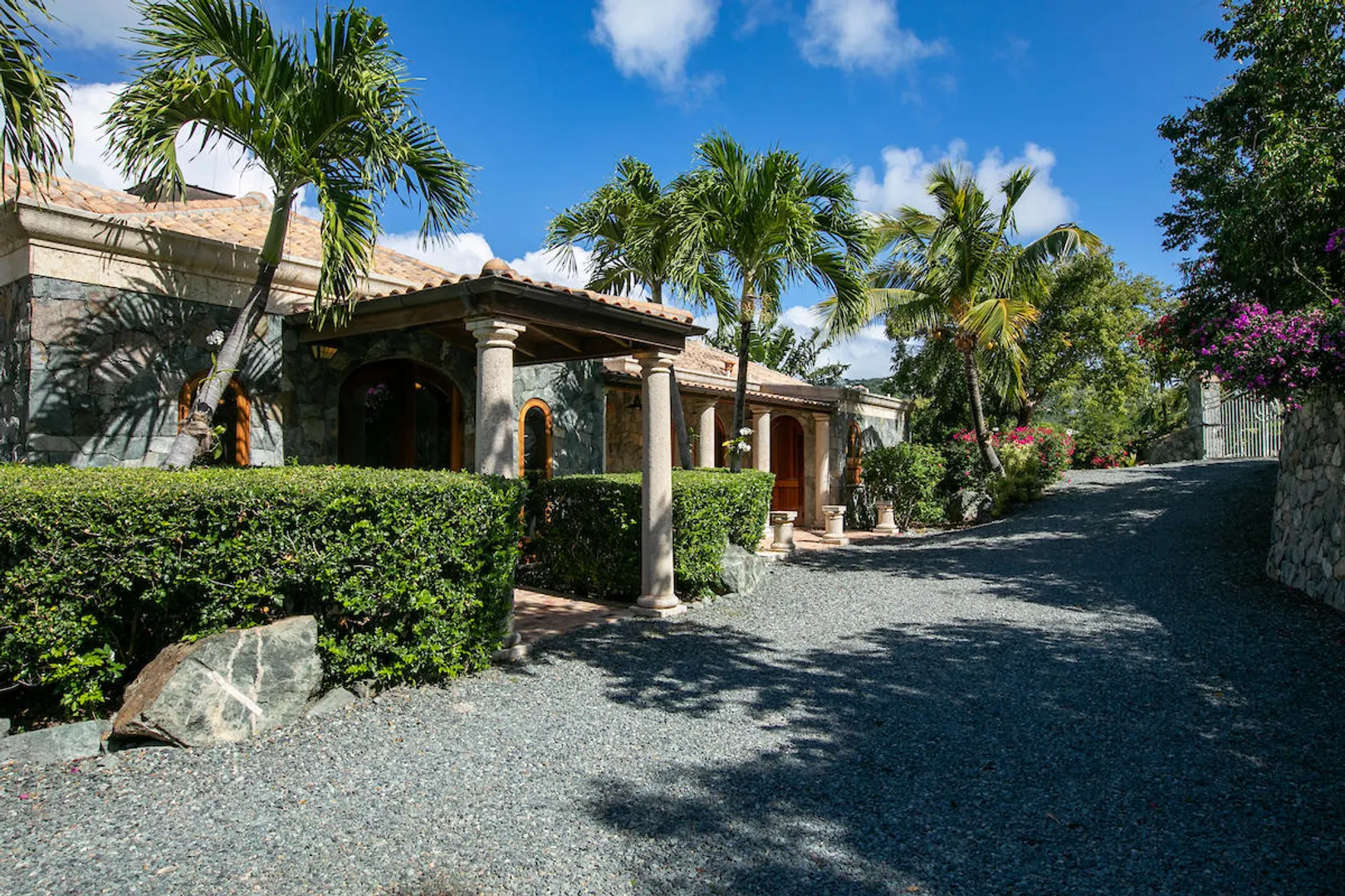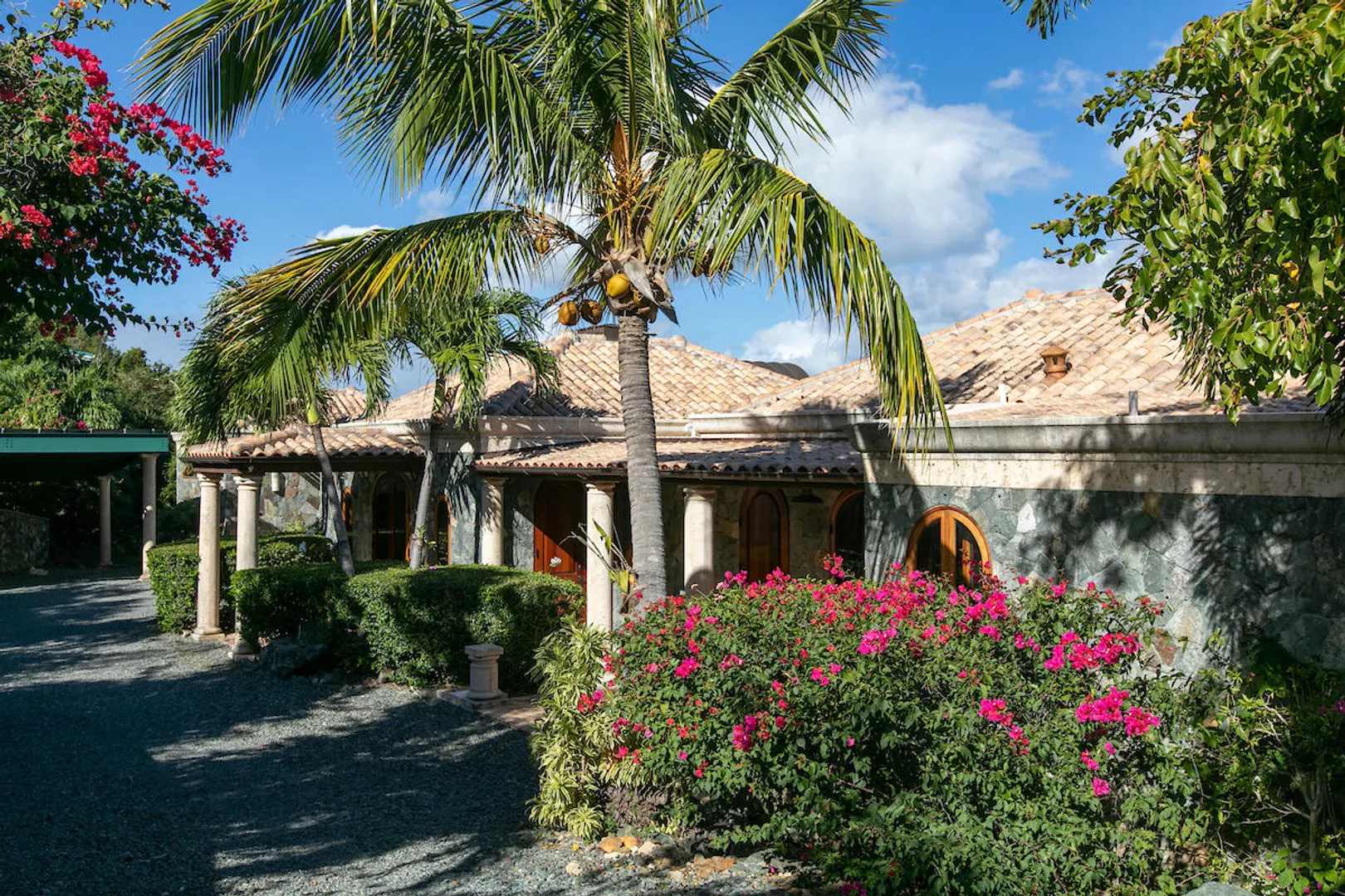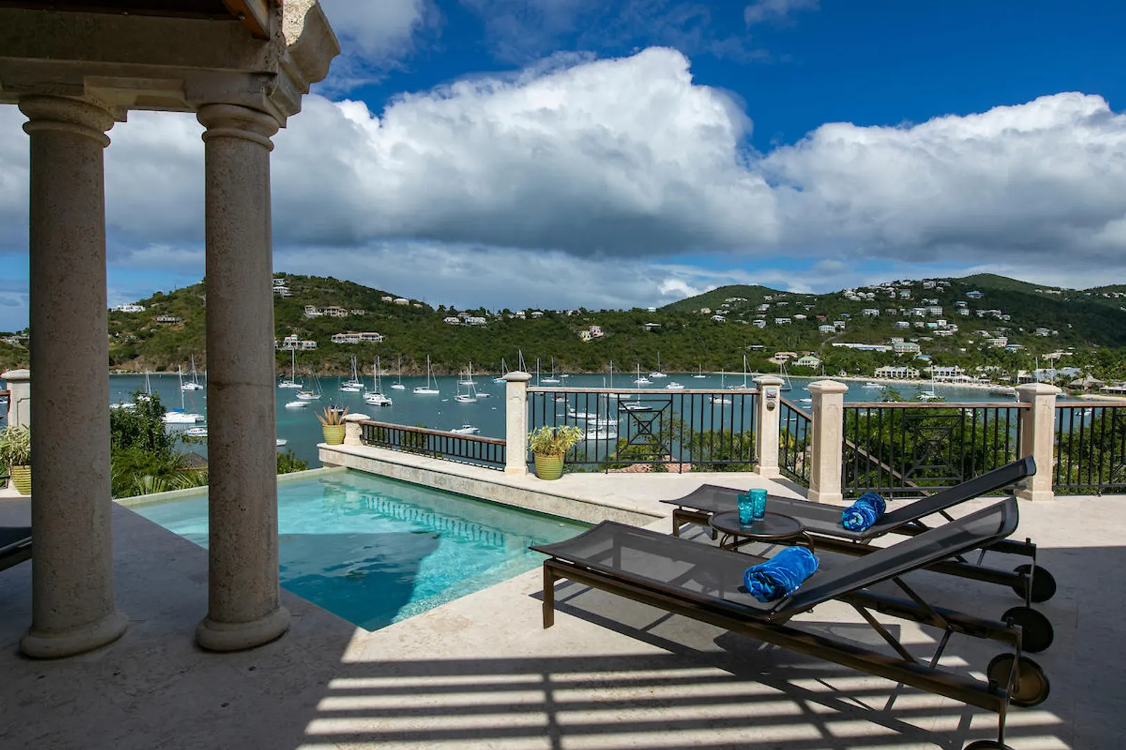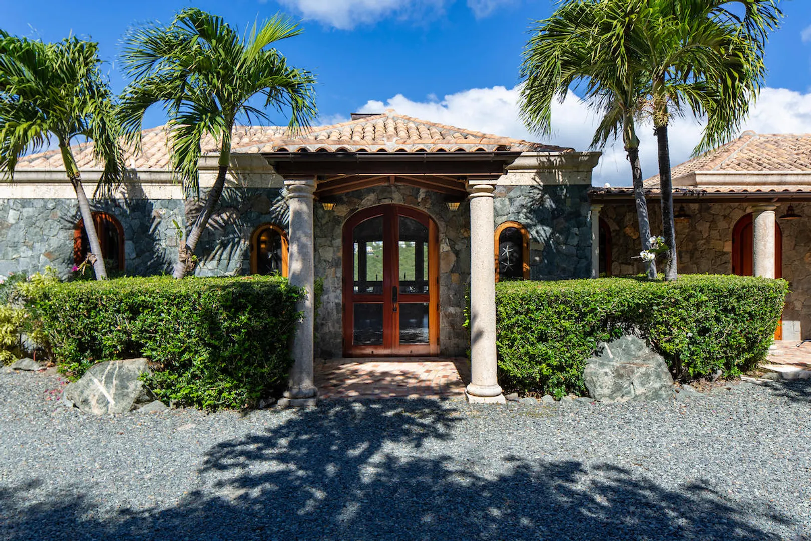 OCEANA VILLA reinvents Caribbean living at its finest in the 21st century. Situated in Great Cruz Bay, this masterpiece villa captures the summer sunset views of the Caribbean Sea and features native stonework and designer details throughout. This luxury Caribbean style 6 Bedroom, 6.5 bath home exudes natural elegance and features cathedral ceilings, custom lighting and furnishings, coral tile floors and decks as well as tropical wood doors and windows . The gated entry to the drive of the home and dramatic entrance into the Great Room, framed in beautiful, sustainable tropical hardwoods, make Oceana Villa a classic island showplace.