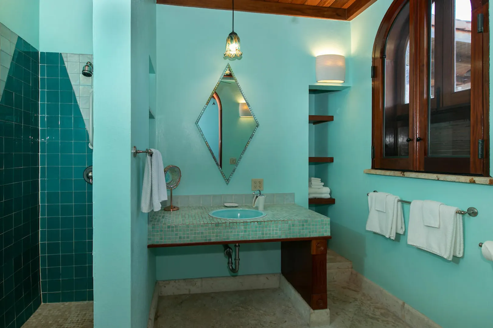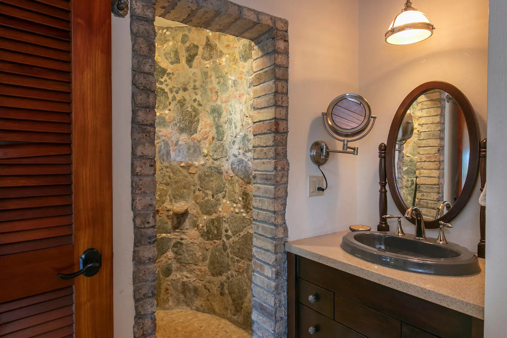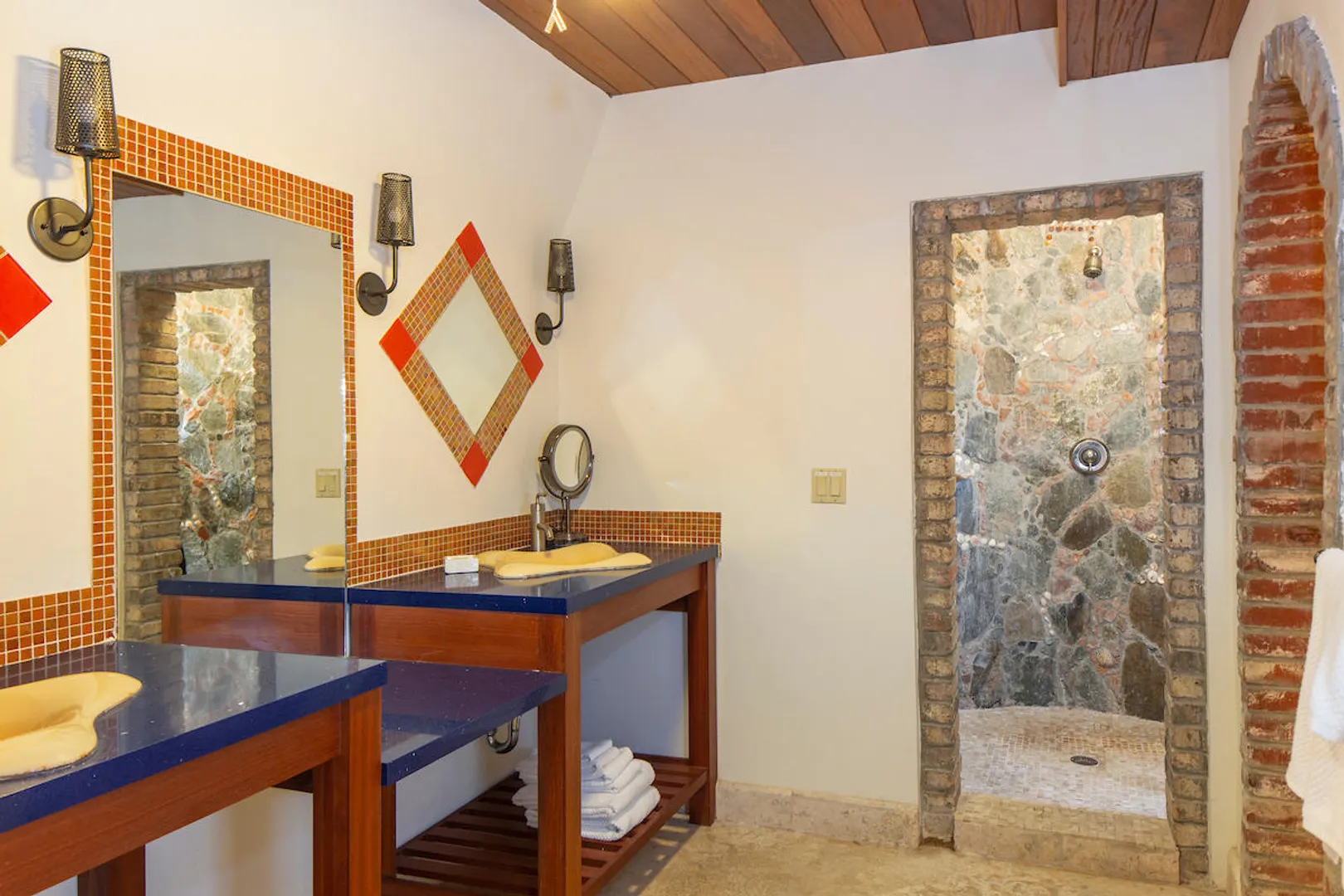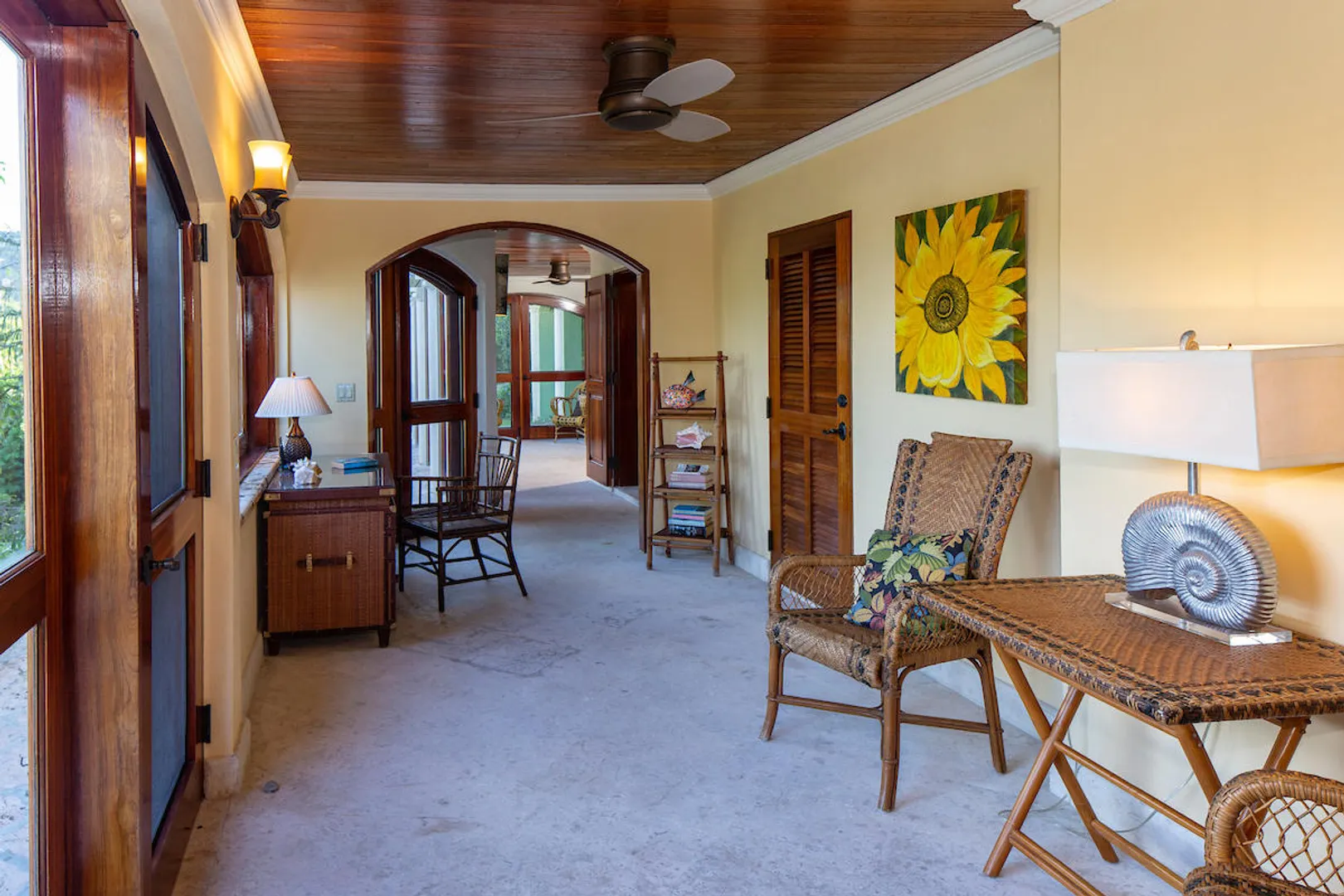 OCEANA VILLA reinvents Caribbean living at its finest in the 21st century. Situated in Great Cruz Bay, this masterpiece villa captures the summer sunset views of the Caribbean Sea and features native stonework and designer details throughout. This luxury Caribbean style 6 Bedroom, 6.5 bath home exudes natural elegance and features cathedral ceilings, custom lighting and furnishings, coral tile floors and decks as well as tropical wood doors and windows . The gated entry to the drive of the home and dramatic entrance into the Great Room, framed in beautiful, sustainable tropical hardwoods, make Oceana Villa a classic island showplace.