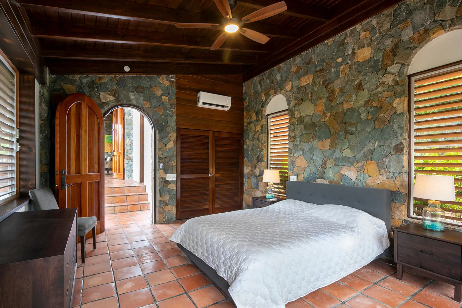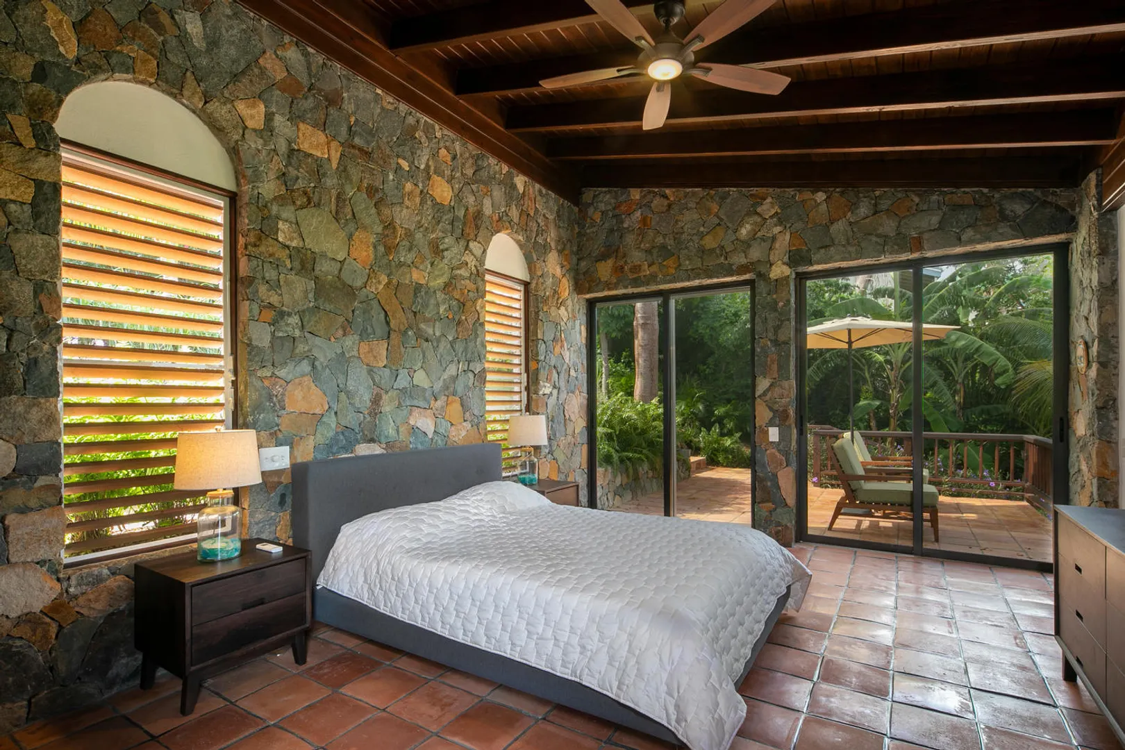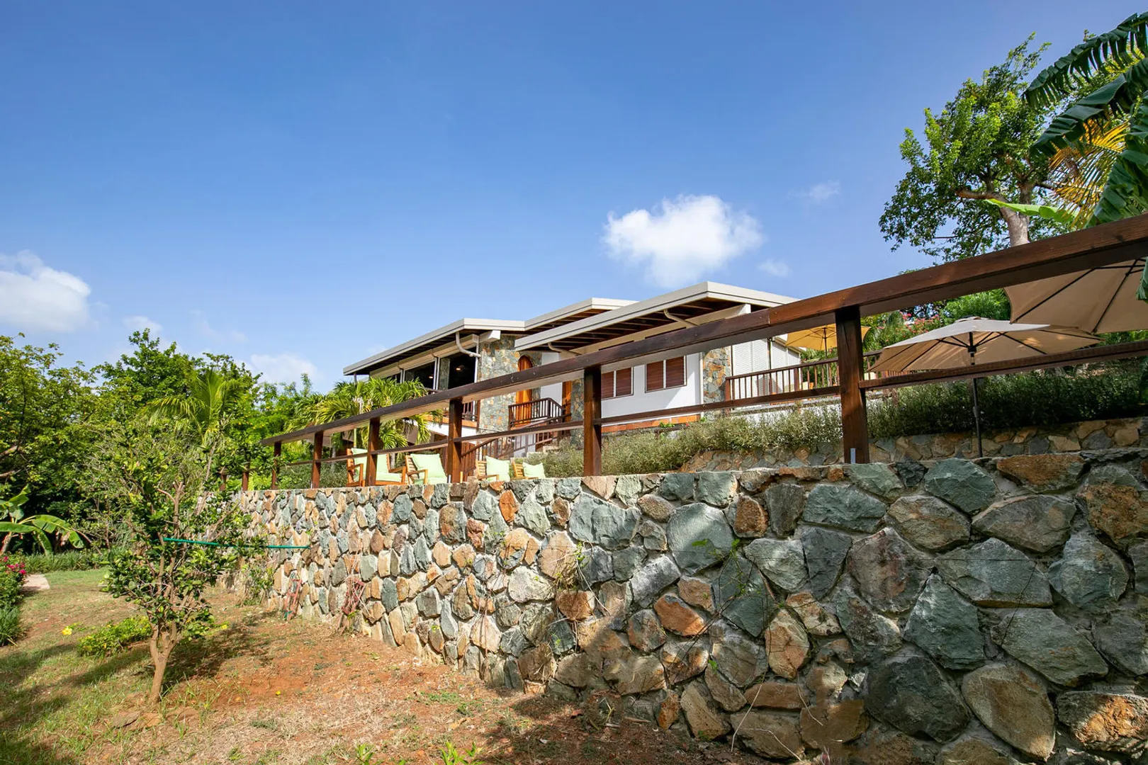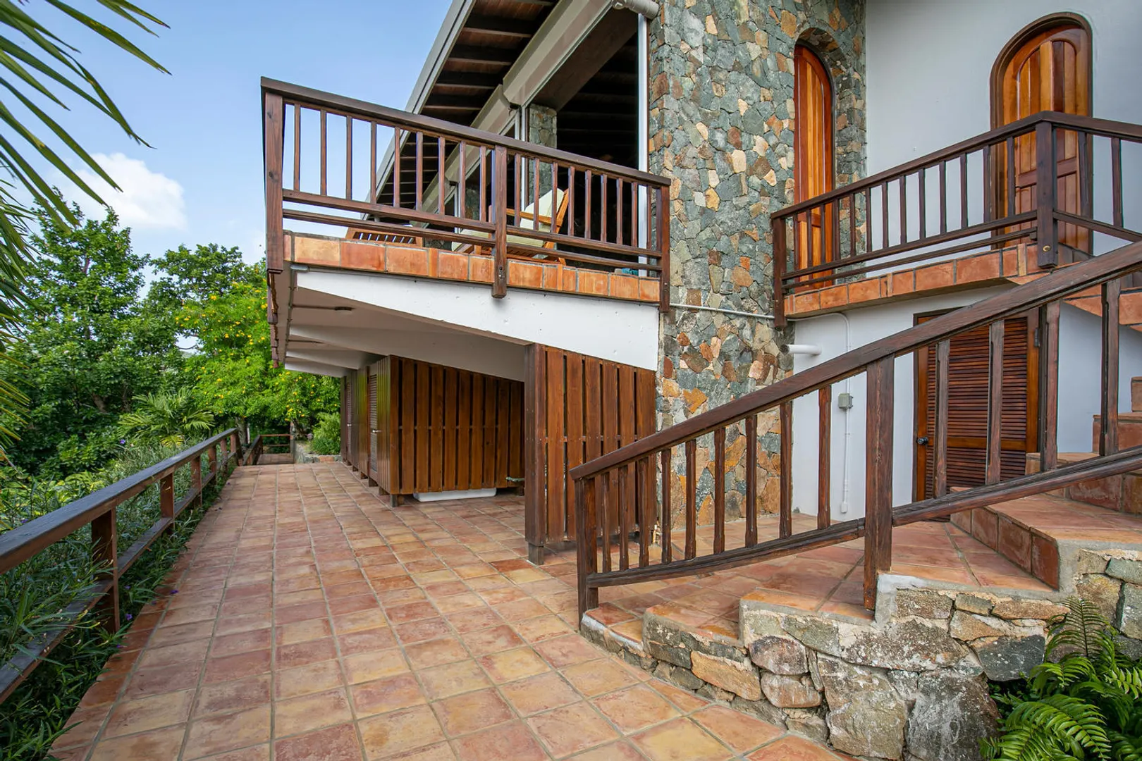With mostly level land at the end of a gated drive, this property offers endless possibilities as a private retreat. Sunset Villa is sited on one lot and the adjacent lot offers room for expansion or as privacy. A traditional Caribbean style home constructed of local stone, modernized and updated. The great room functions beautifully with a huge, central cook's kitchen with pantry, bar and dining area, comfortable living and TV area and convenient full bath. Three fully air-conditioned bedrooms are situated on either side of the great room with a 4th located on the lower pool level. An inviting pool & expansive patio area are surrounded by stone walls, pathways and extensive landscaping.