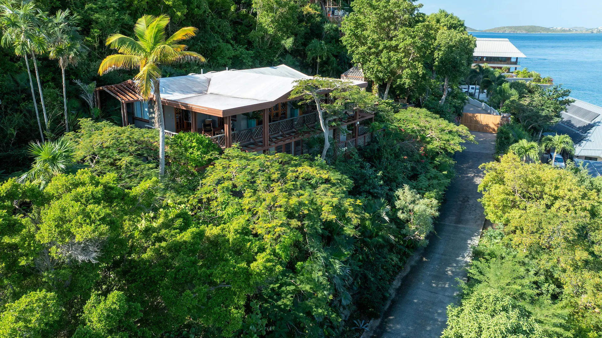 (For Statistical Purposes) Perched on a tranquil hillside overlooking the waterfront of Great Cruise Bay, this tree house-like residence offers 2 bedrooms and 2 bathrooms within its spacious 2,196 total square feet. With a serene and traditional ambiance, it's a gardener's delight, with meticulously landscaped gardens surrounding the property, a beautiful gazebo and a dingy landing area. Residents enjoy access to the homeowners association amenities. Discover the perfect blend of rustic charm and modern comfort, providing an idyllic retreat in the heart of the Caribbean.