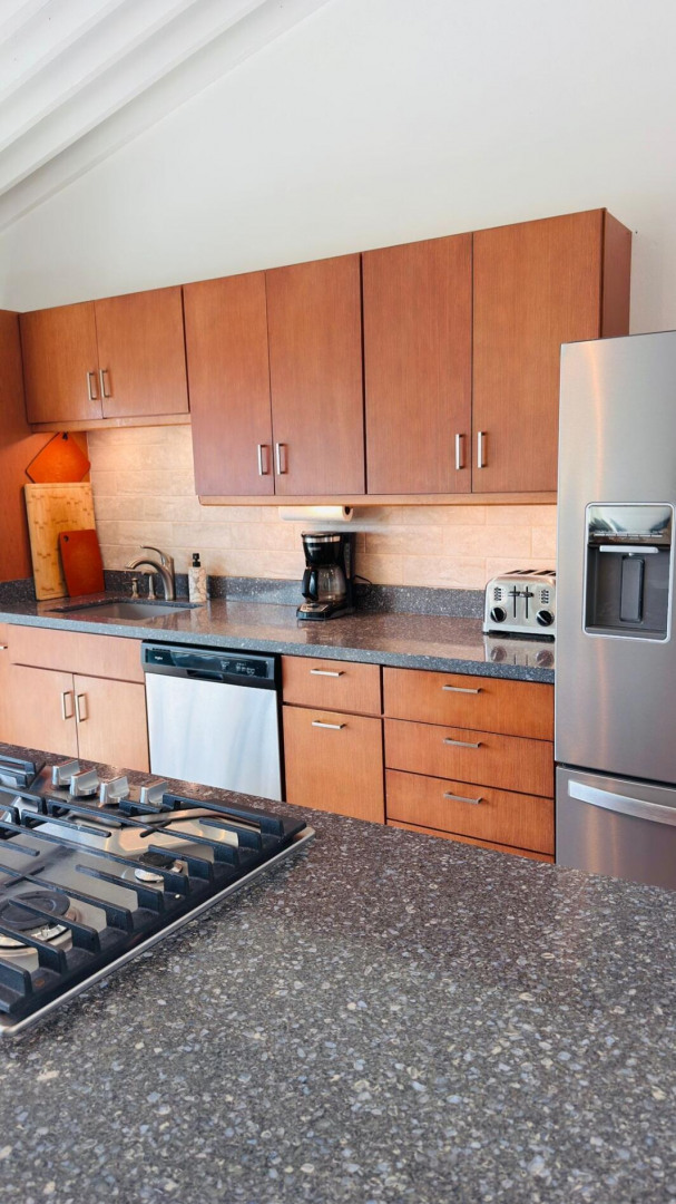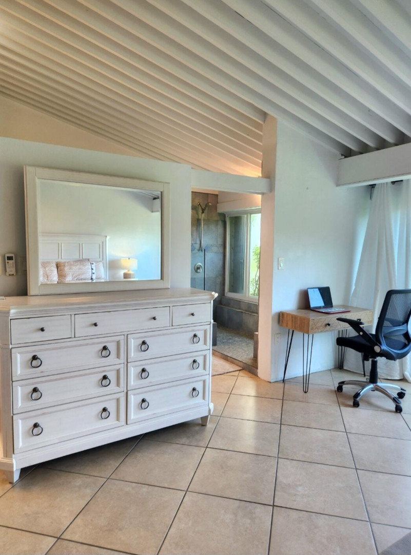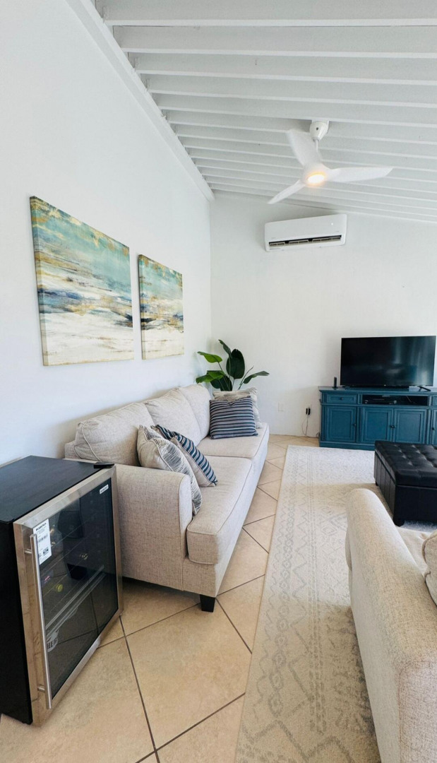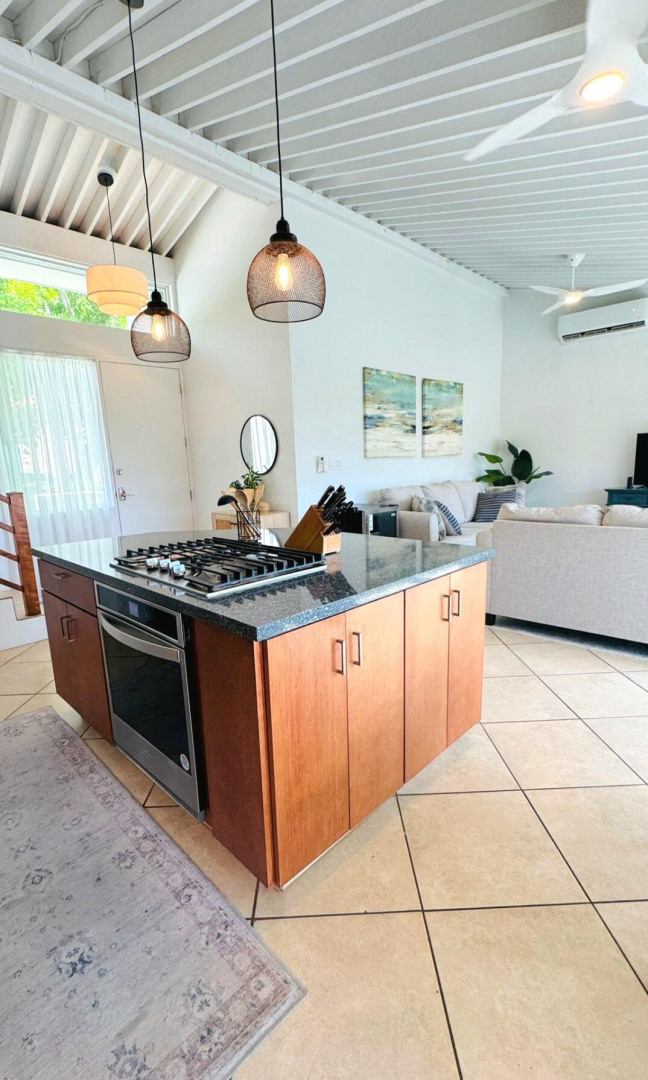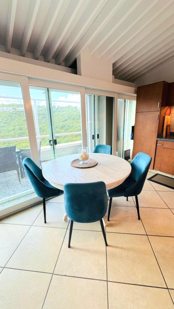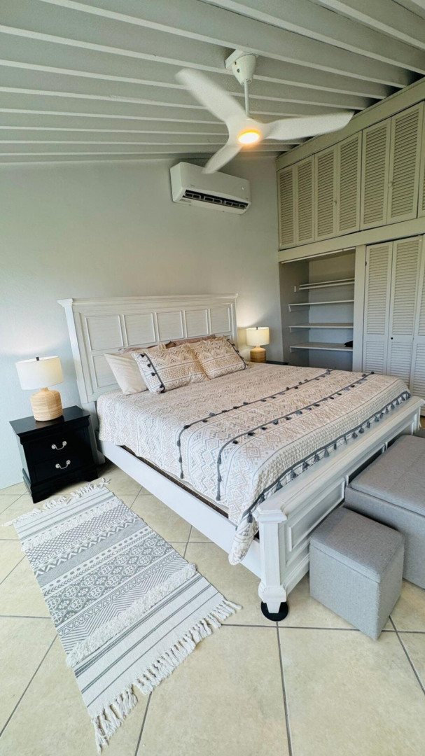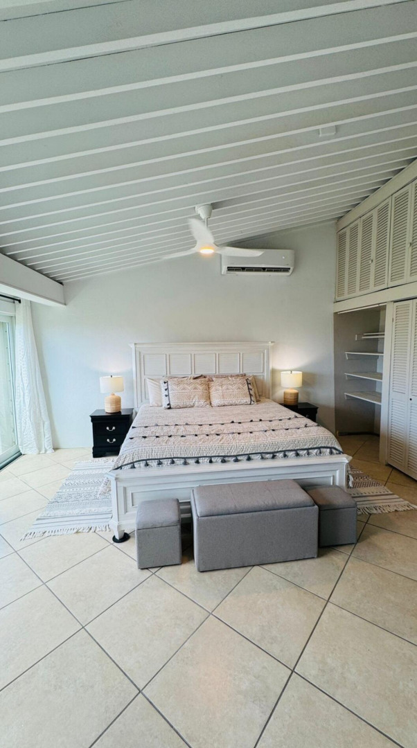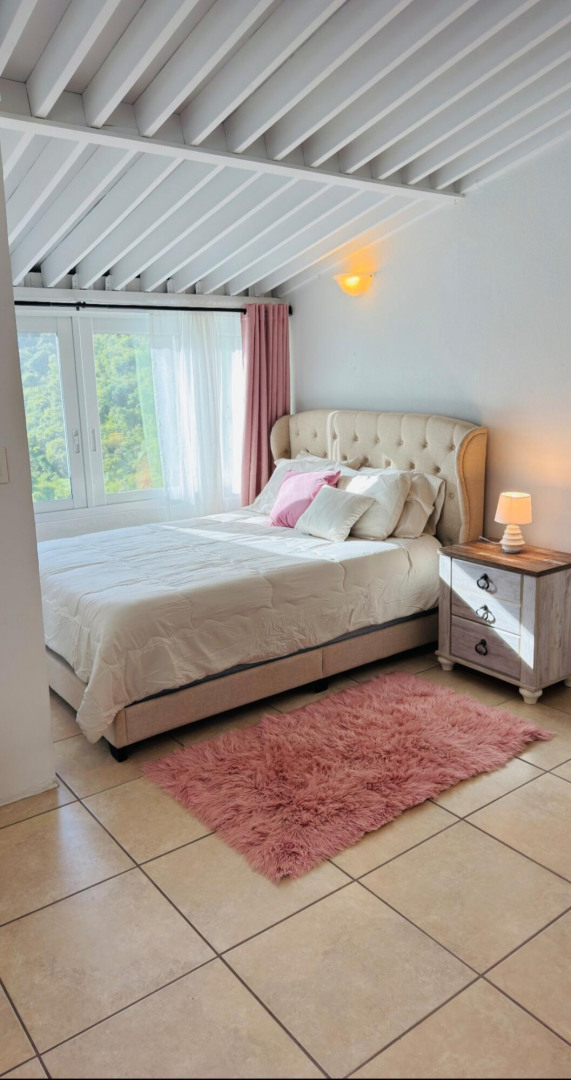 Turn key apartment in the desirable Mahogany Run neighborhood. This rare split level layout features cathedral ceilings, expanded bedrooms, quartz kitchen counters , open entertaining space, in unit w/d, dishwasher, a/c, and Ecoflow backup batteries when power goes out. All nestled in private, cul-de-sac location, with good flat parking. Walk out onto the large porch where you are greeted with panoramic hillside and valley views that descend into Magens Bay.. If you are seeking a rental that feels more like a home than a condo, is 5 minutes or less to Magens Bay, offers privacy and has a 24 hour security guard, look no further. Listing agent is property owner.