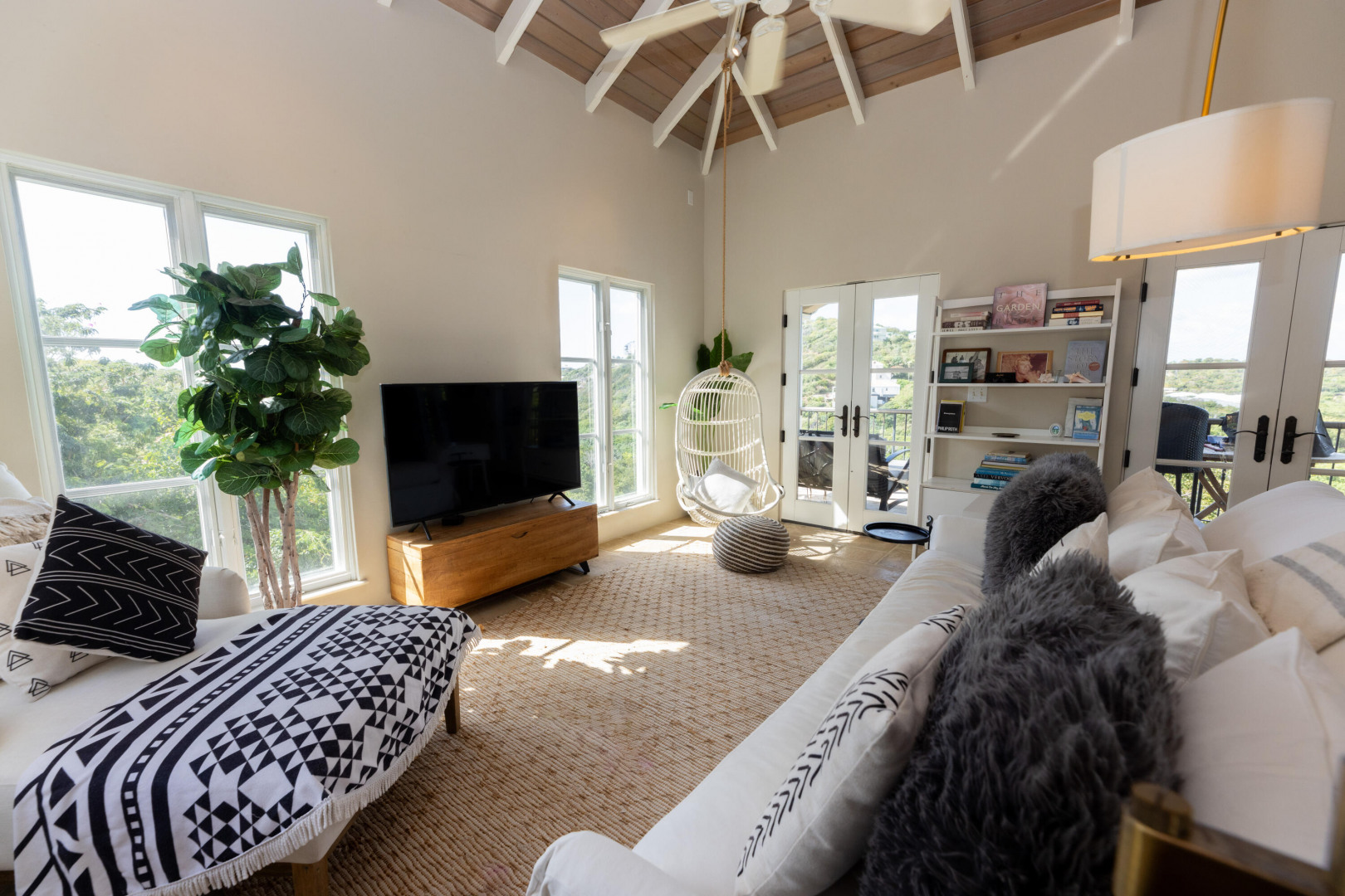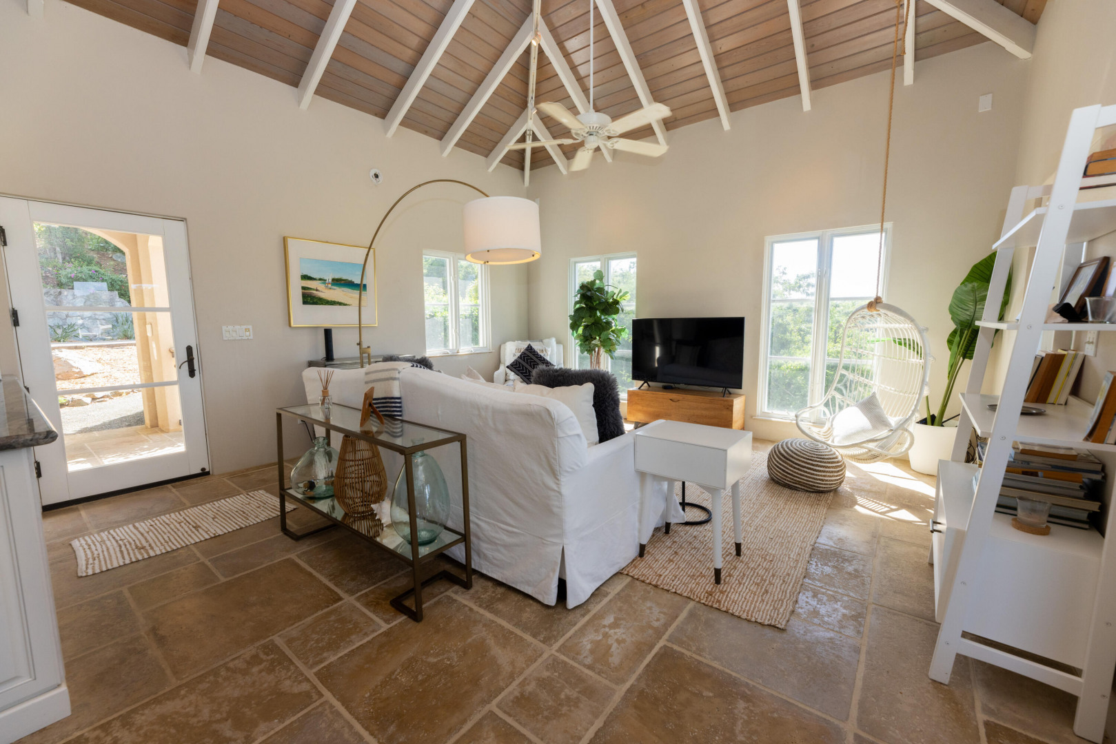Opportunities abound at this exceptional property, tucked away on a quiet, end-of-the-road drive in the sought-after Chocolate Hole neighborhood. Enjoy stunning views of Hart Bay and unforgettable sunsets from nearly every window of this updated two-level home. Perfect as a private residence or short-term rental, the property offers room for expansion, with plans and renderings in place. Thoughtfully designed, one-bedroom gem features premium furnishings and finishes, two spacious decks, lush landscaping, solar power with Tesla backup batteries, a well-laid-out driveway, and more. With charm, modern upgrades, and endless potential, this is island living at its finest!