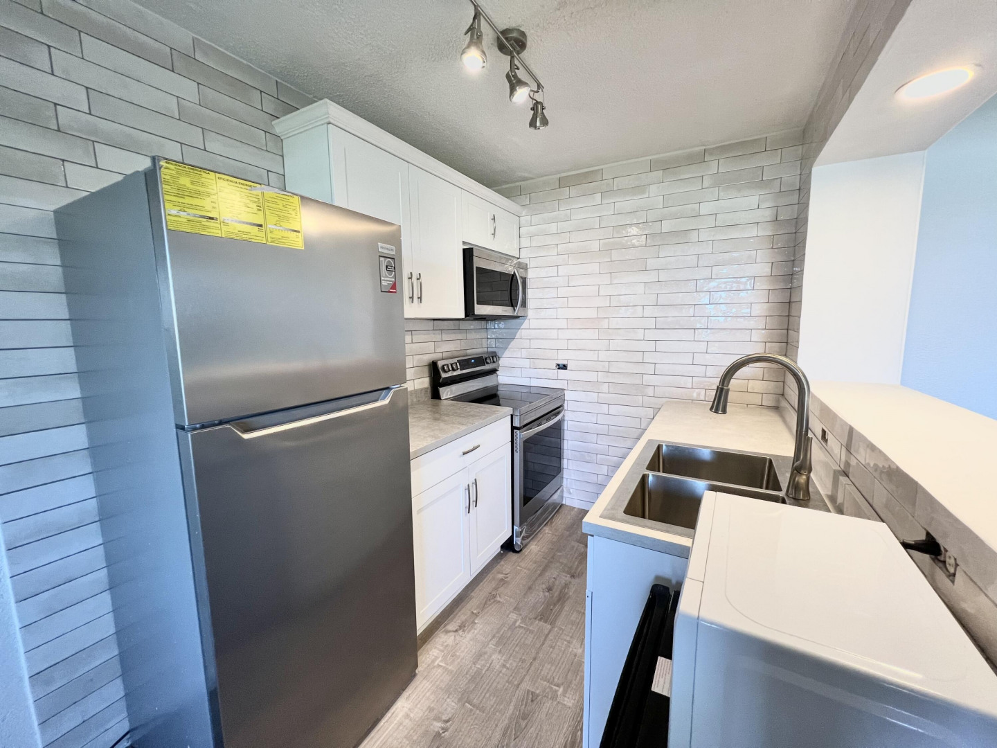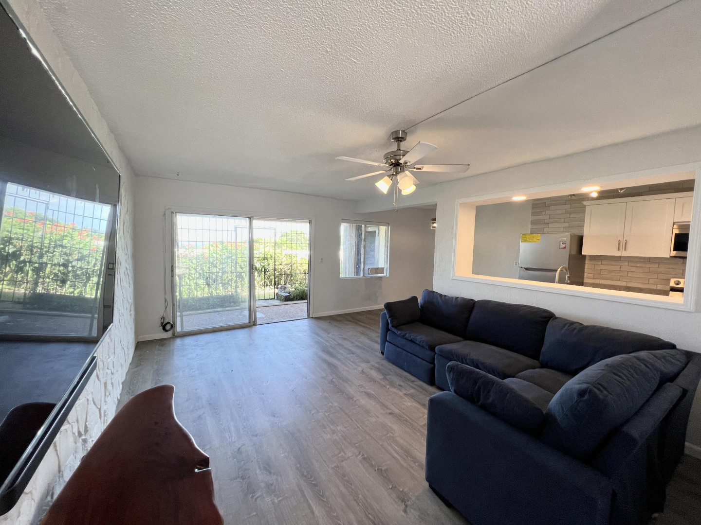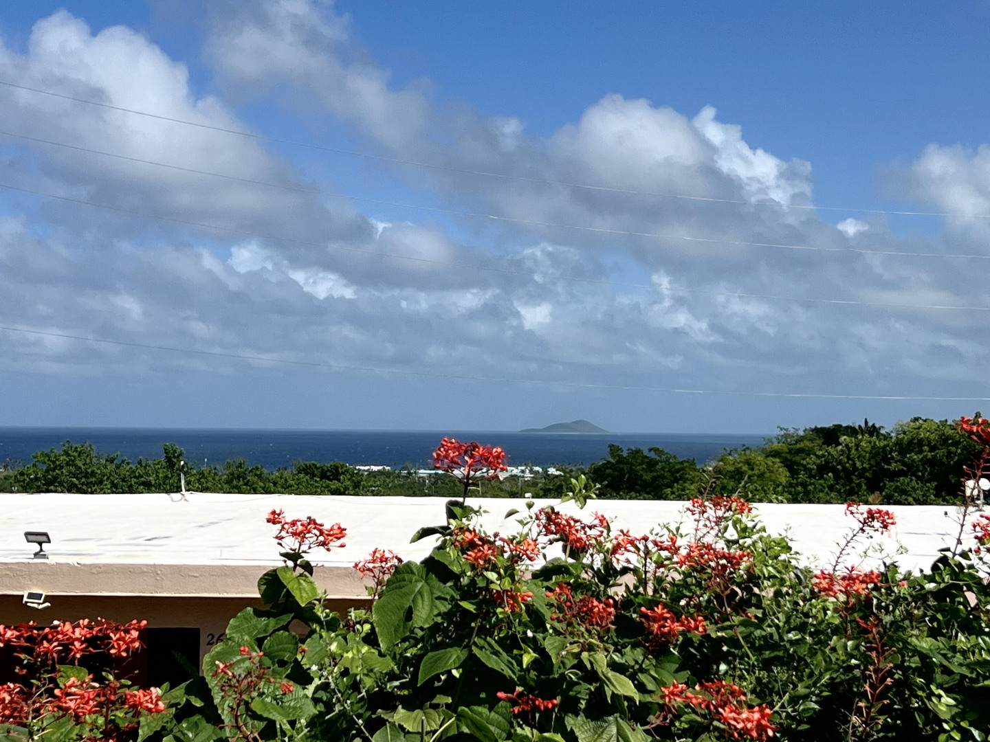 This one bedroom, one bathroom condominium at Vista Mar has recently been updated with new flooring in hallway, living room, dining room, bedroom, and kitchen. Original terrazzo remains in bathroom. Updated kitchen with new appliances, new tilework, lighting, cabinets, and countertops. Enjoy the breezes while taking in the views of Buck Island from your private patio or up on the pool deck. Laundry room on site. Parking is in front of units. Low HOA fees.