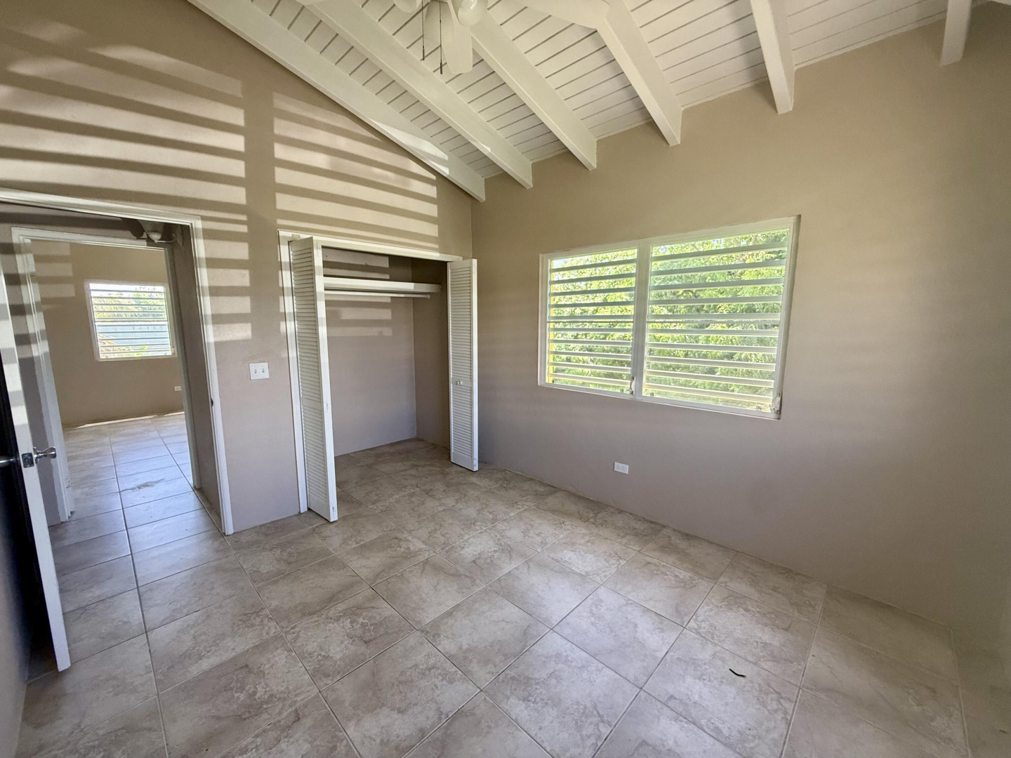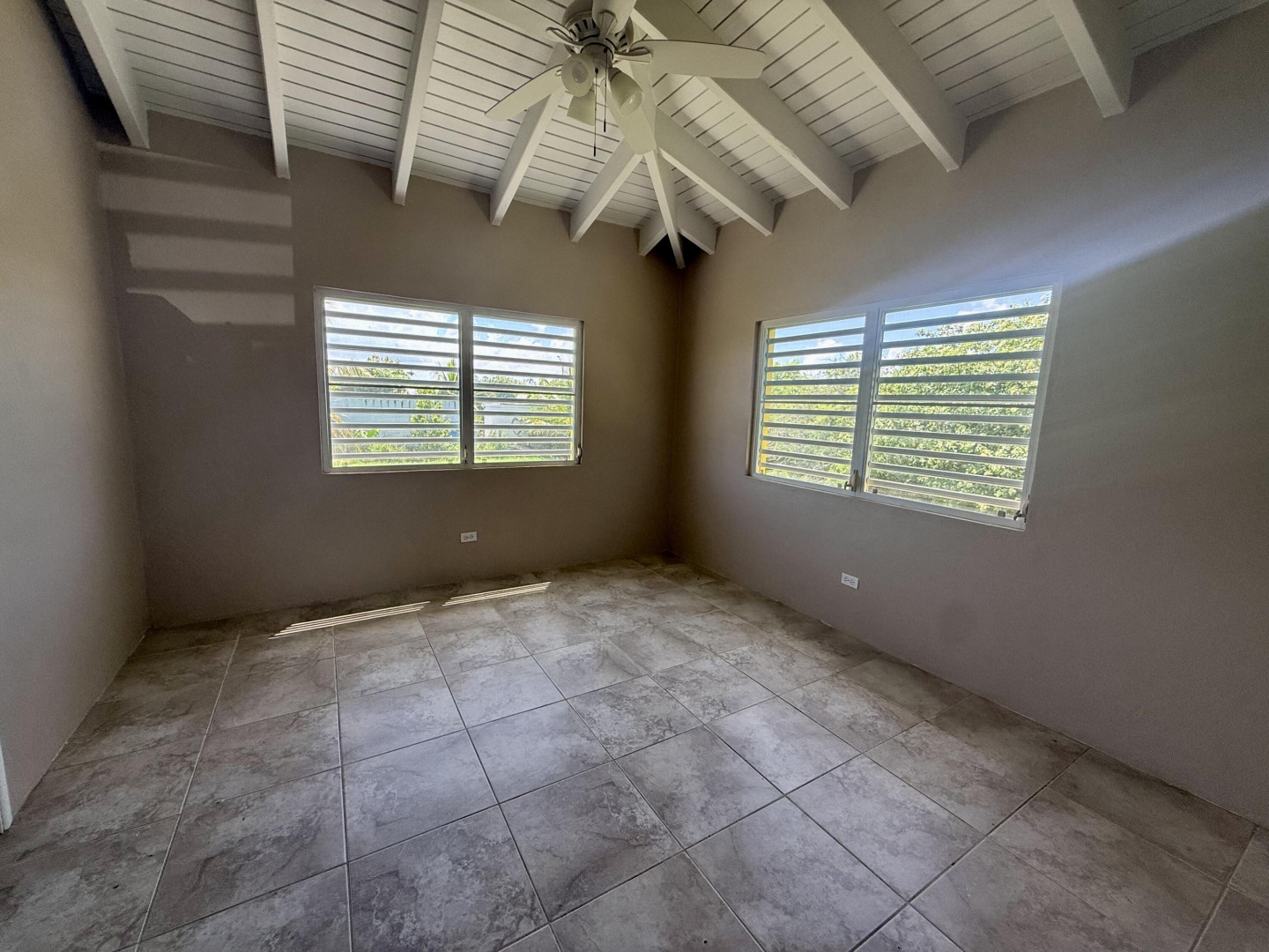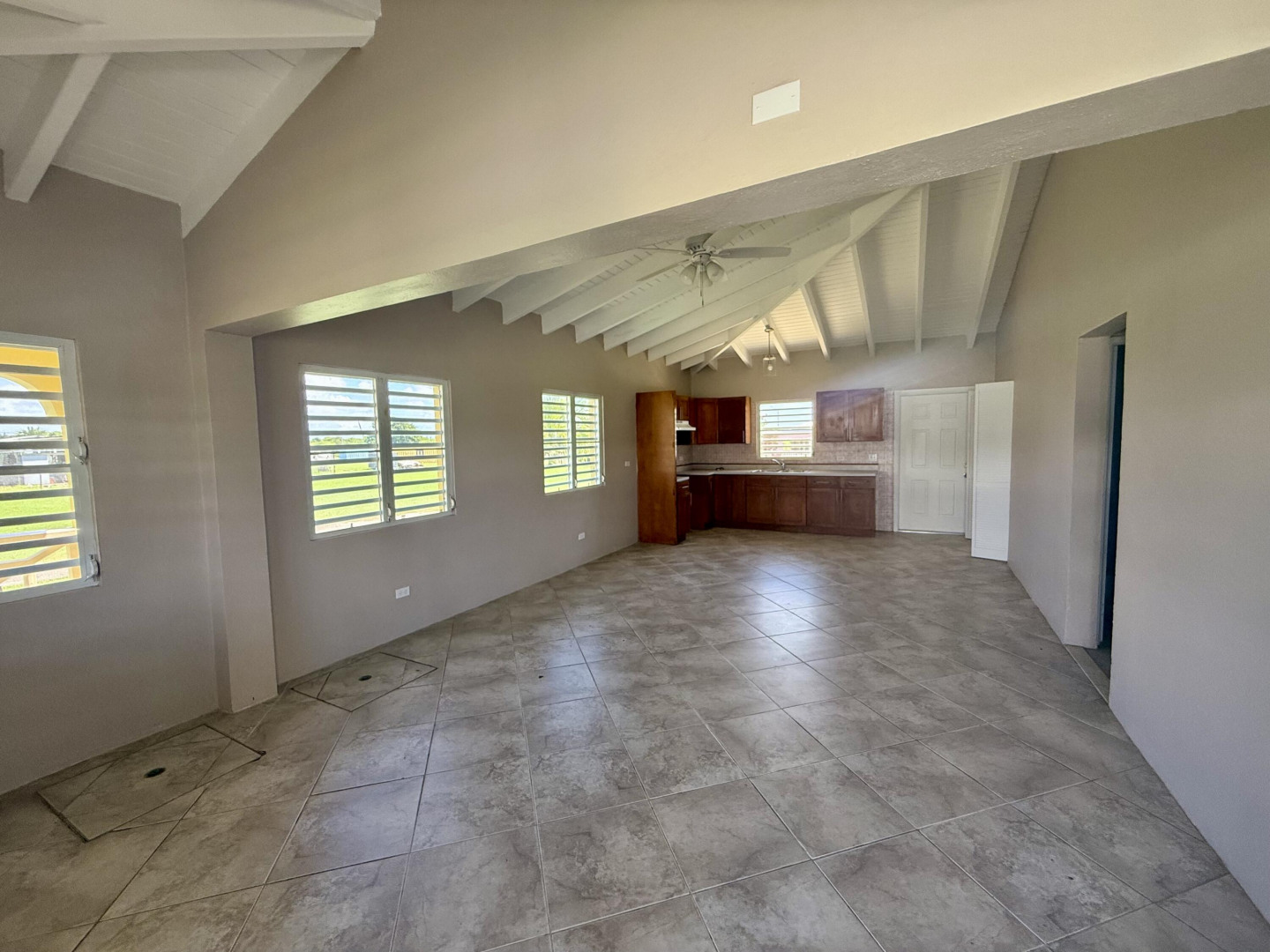3 bedroom, 2 bathroom well maintained home in Frederiksted. Open floor plan with cathedral ceilings, modern kitchen with loads of cabinet space, large living room and a separate laundry room with hookups. Bright bedrooms, security jalousie windows, spacious main bedroom with an en suite and a walk-in closet make this home a desirable rental. Located on a quiet street dotted with lovely homes, this house sits on a corner lot with a cool front porch and flat yard with yard maintenance included. Tenant must supply appliances.