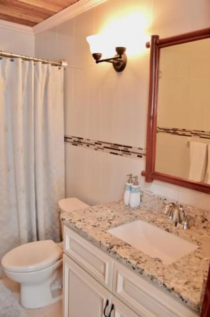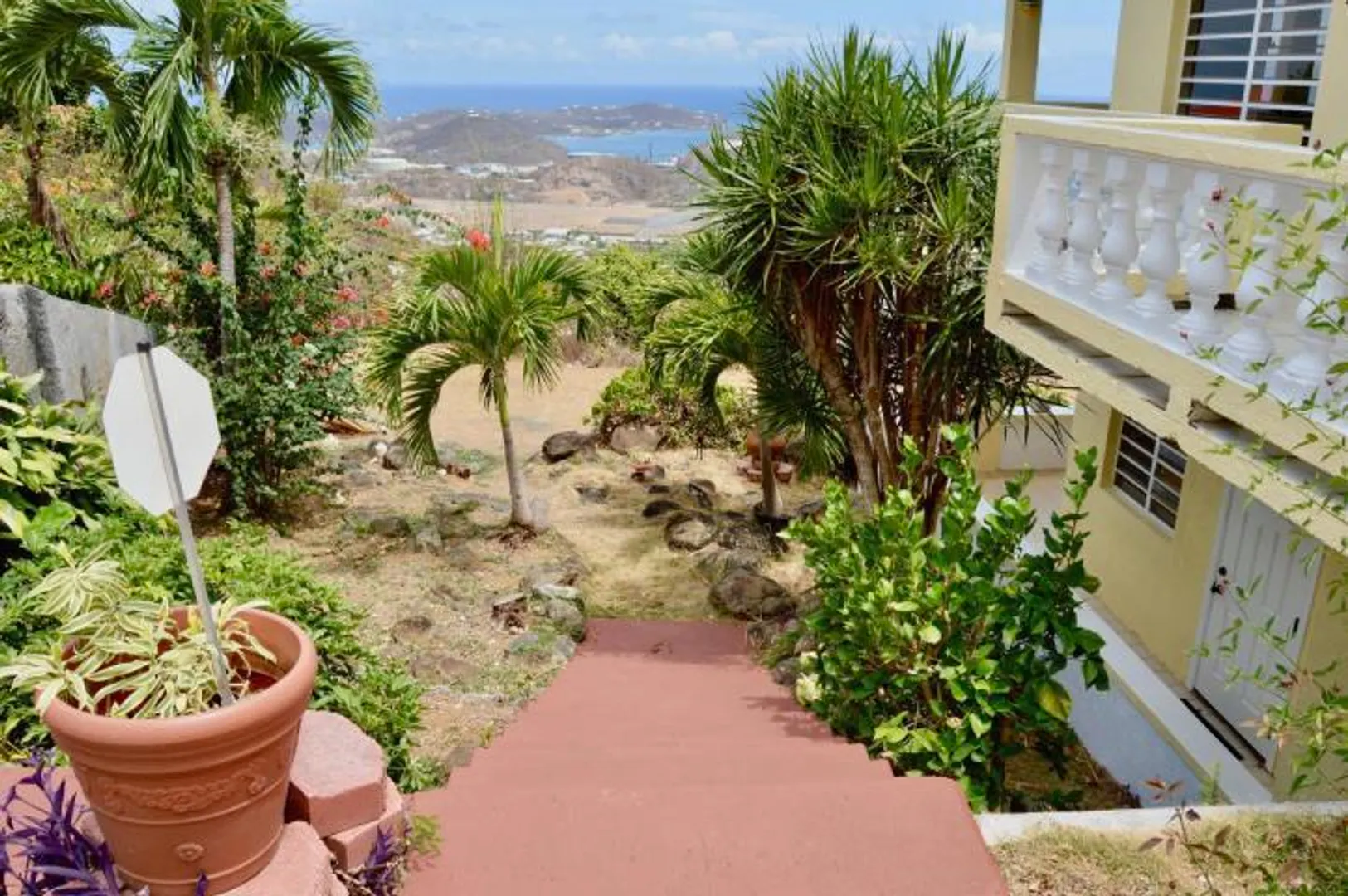 Lovely tropical views from the breezy balconies of this immaculate 5BR/3BA home Easy access to the airport and town. Vaulted ceilings and sparkling tile floors throughout . Detached laundry room and exercise room. Honey colored custom kitchen with stainless steel appliances, solar hot water heater. 4 Mango trees mature excellent landscaping. Double pillars @ entrance w/ concrete palm lined driveway for plenty of parking. No hurricane damage to this well built cinder block and poured concrete home. 1/1 delightful downstairs furnished 1Bed/1 Bath apt w/ separate entrance beautiful gardens, off street parking 6+cars . kitchen with double sink , electric stove /oven, stainless steel fridge, long counter tops & bar w/ stools & flat screen TV