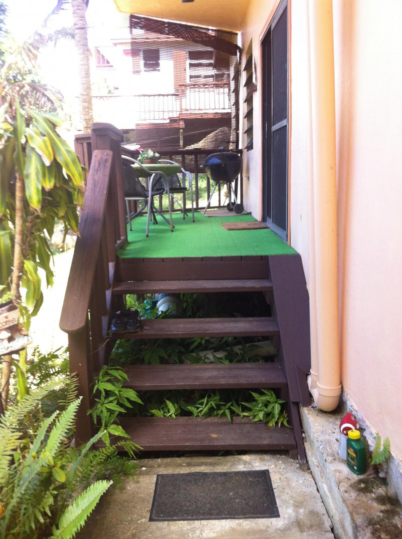 Electricity and water included. Tenants purchase water if cistern runs out. There is a gas stove; must buy gas when tank runs out. Unit suitable for mature adult. No air condition or ceiling fan may be installed. There is a grill on the deck and a small oven in the cabinet. Tenants wash at the laundry.