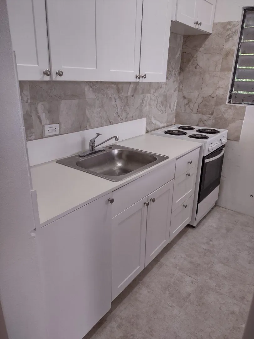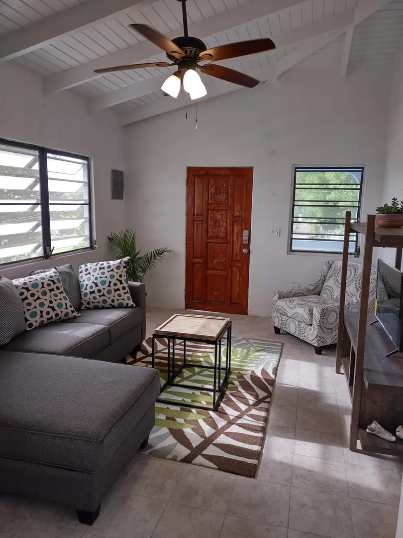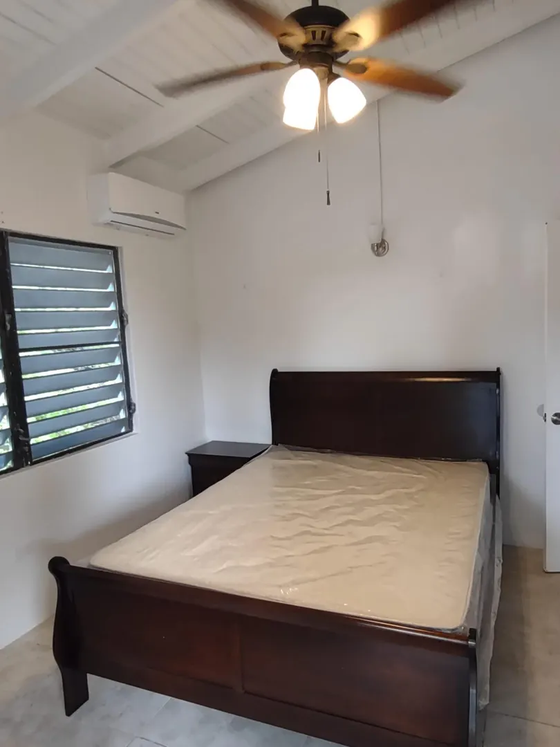 This beautifully remodeled 3-bedroom, 1-bath upstairs unit is ready to welcome you home! Newer tile flooring, ceiling fans, and split AC units throughout for your comfort. The fenced yard adds a touch of privacy, and the home features newer appliances, including a washer and dryer. Pets are welcome upon consideration, and laundry facilities are shared with the downstairs unit. The tenant will be billed for WAPA, while water is charged at a flat rate of $75 per month. Nestled just outside of downtown Frederiksted, this home offers a peaceful setting with the convenience of being within walking distance to the beach, local shops, and restaurants. Don't miss the chance to make this charming space your own!