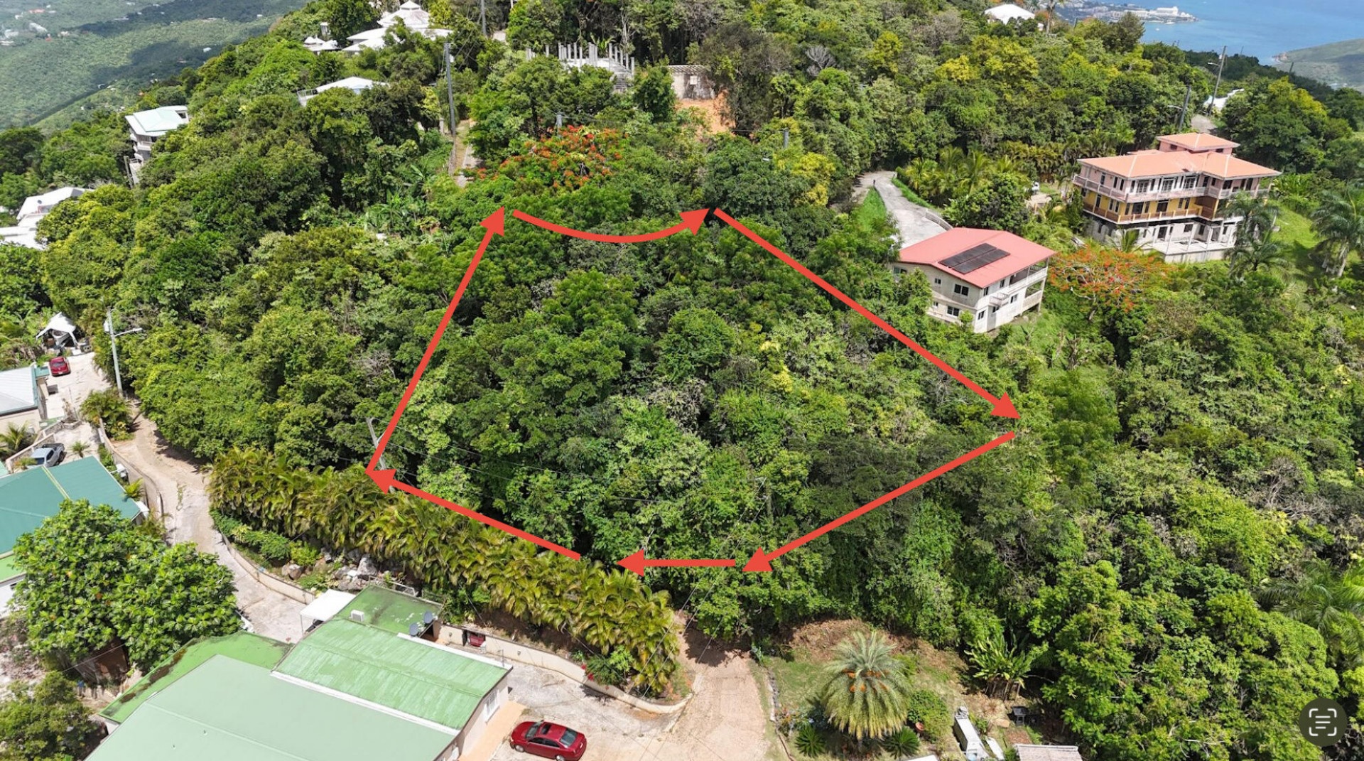 Perched high in the sought after Mountain Top community on Crown Mountain, this lush .52 acre parcel offers an incredible opportunity to build your very own island retreat. Gently sloping and surrounded by tropical greenery and flowers, the lot provides an ideal topography for construction while preserving privacy and capturing the cool North Side breezes. On a clear day, take in breathtaking panoramic views that stretch beyond the Virgin Islands to PR and Culebra with the shimmering blue of the Atlantic as your backdrop. Located in the Mountain Top community, this homesite offers both peace and proximity - just minutes from Magen's Bay, Charlotte Amalie and the airport.