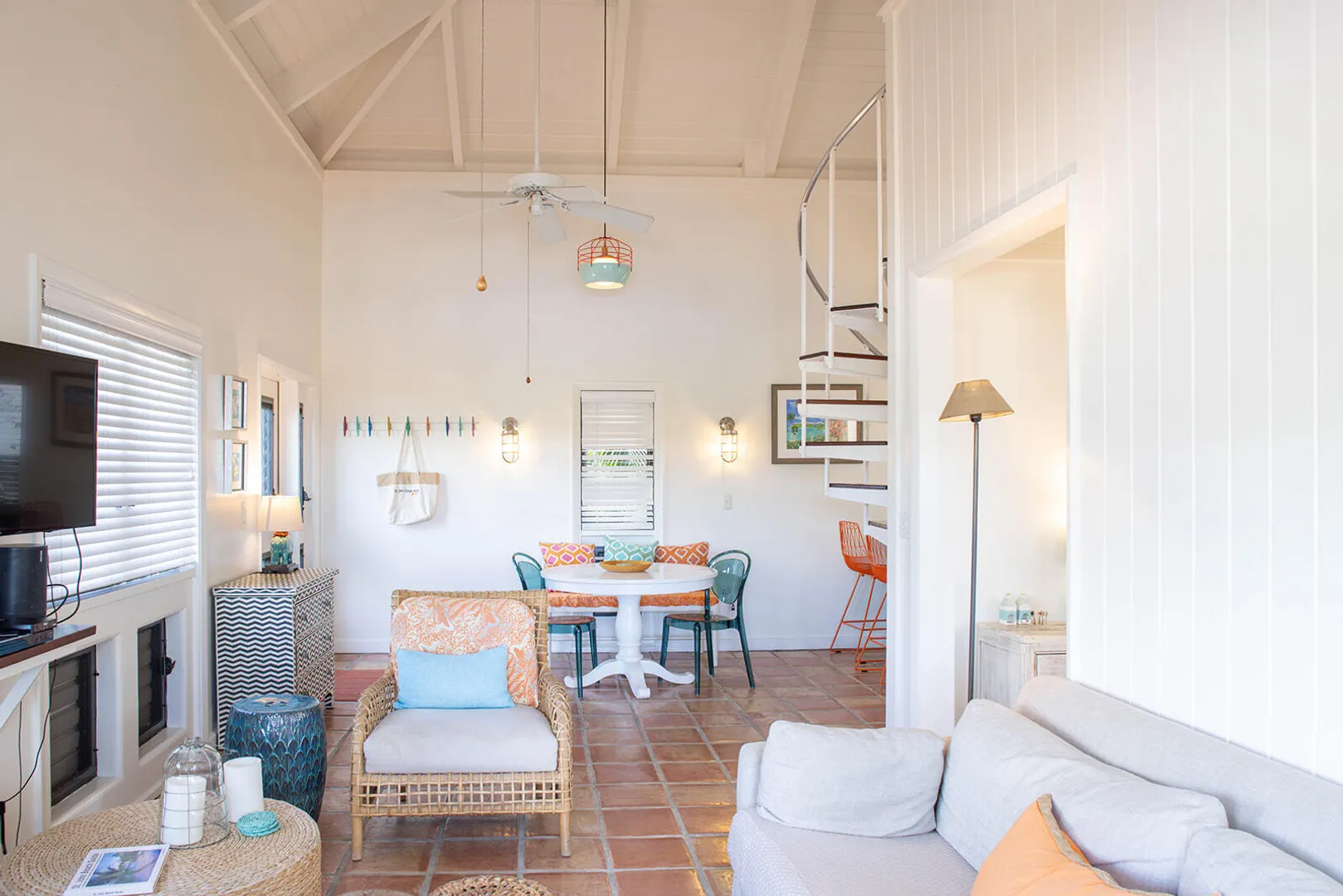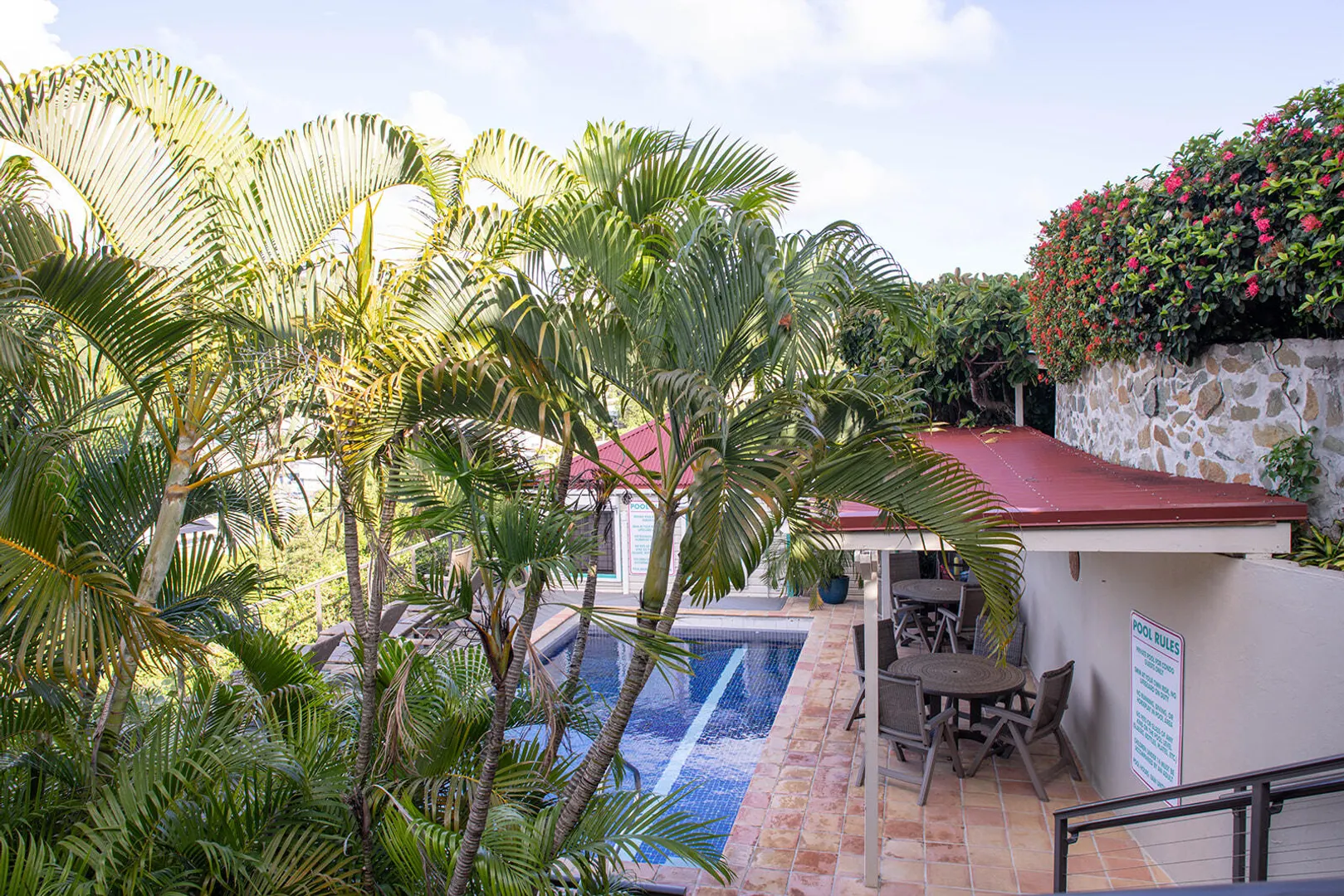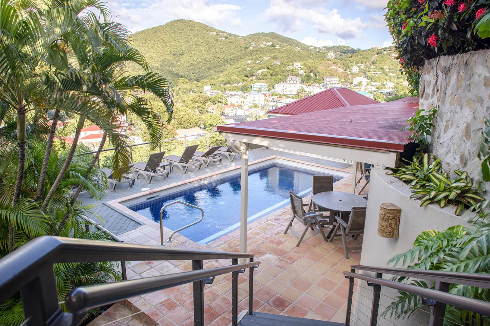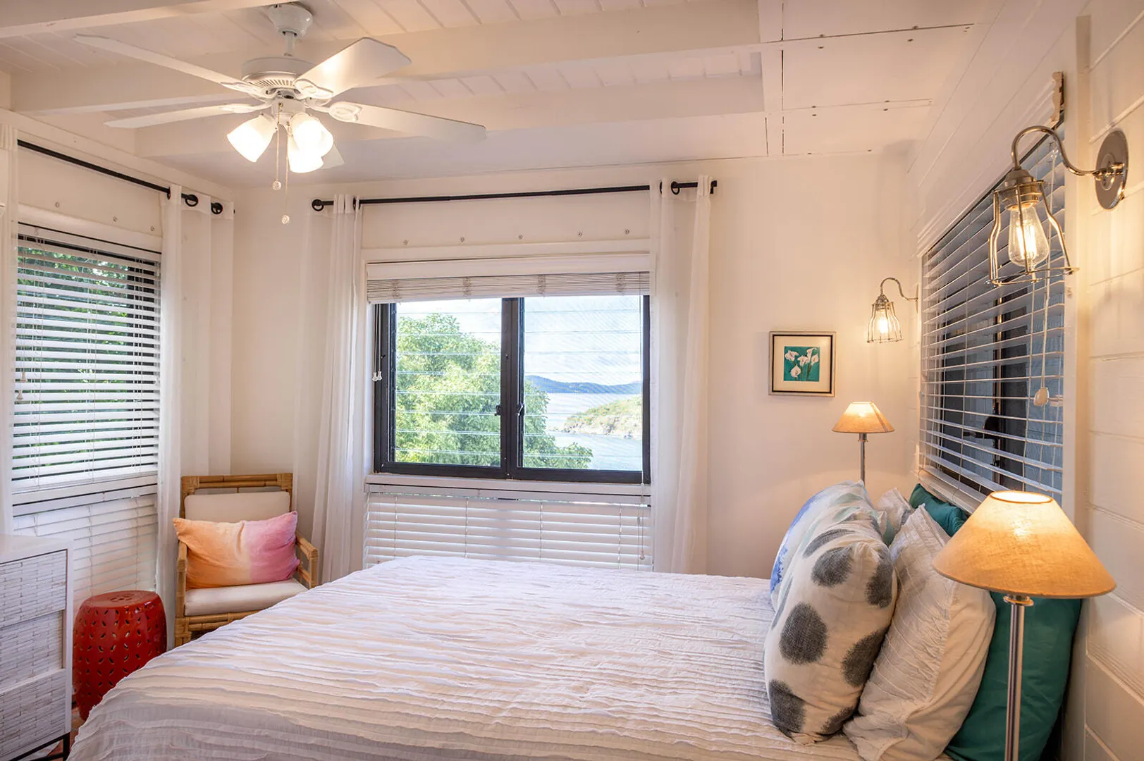 HARBOR VIEW is a beautifully renovated 2-bedroom, 2-bath condo in the desirable Battery Hill condo complex, overlooking Cruz Bay harbor and town. This light-filled Caribbean retreat features an open floor plan with soaring cathedral ceilings, a fully equipped kitchen, bright island decor, and full air conditioning. The living area opens to a spacious covered porch, ideal for enjoying cooling trade winds, harbor views, and vibrant sunsets. Convenient access to the community pool and sundeck enhances the resort-style feel. Perfectly located within walking distance to Cruz Bay's restaurants, shops, galleries, ferry dock, and the sandy shores of Frank Bay Beach, offering exceptional convenience and island lifestyle appeal.