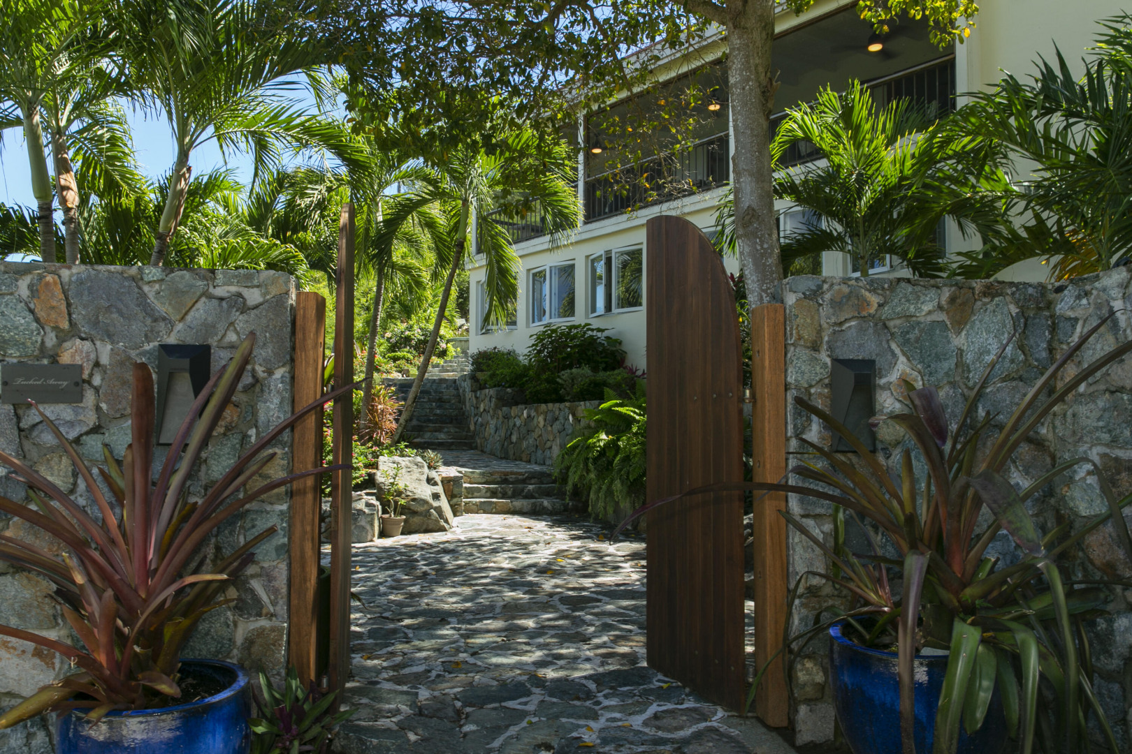 Located minutes from Coral Bay in the charming waterfront community of Johnson's Bay Estates, this picturesque villa features custom finishes of exotic mahogany and cumaru woodwork throughout. The open floor plan flows effortlessly from comfortable interior spaces to breezy exterior spaces framing an up-close view of the nearby shorefront. A poolside gazebo provides a shaded retreat and perfect vantage point to take in the charming sounds of an idyllic Caribbean lifestyle. Other exterior features include abundant stonework, professional lighting and a charming outdoor shower. Moving indoors the home offers the perfect ratio of scale and comfort. The peaceful upper level suite was designed to optimize water views out to Coral Harbor while the two lower level guest suites cater to visitors