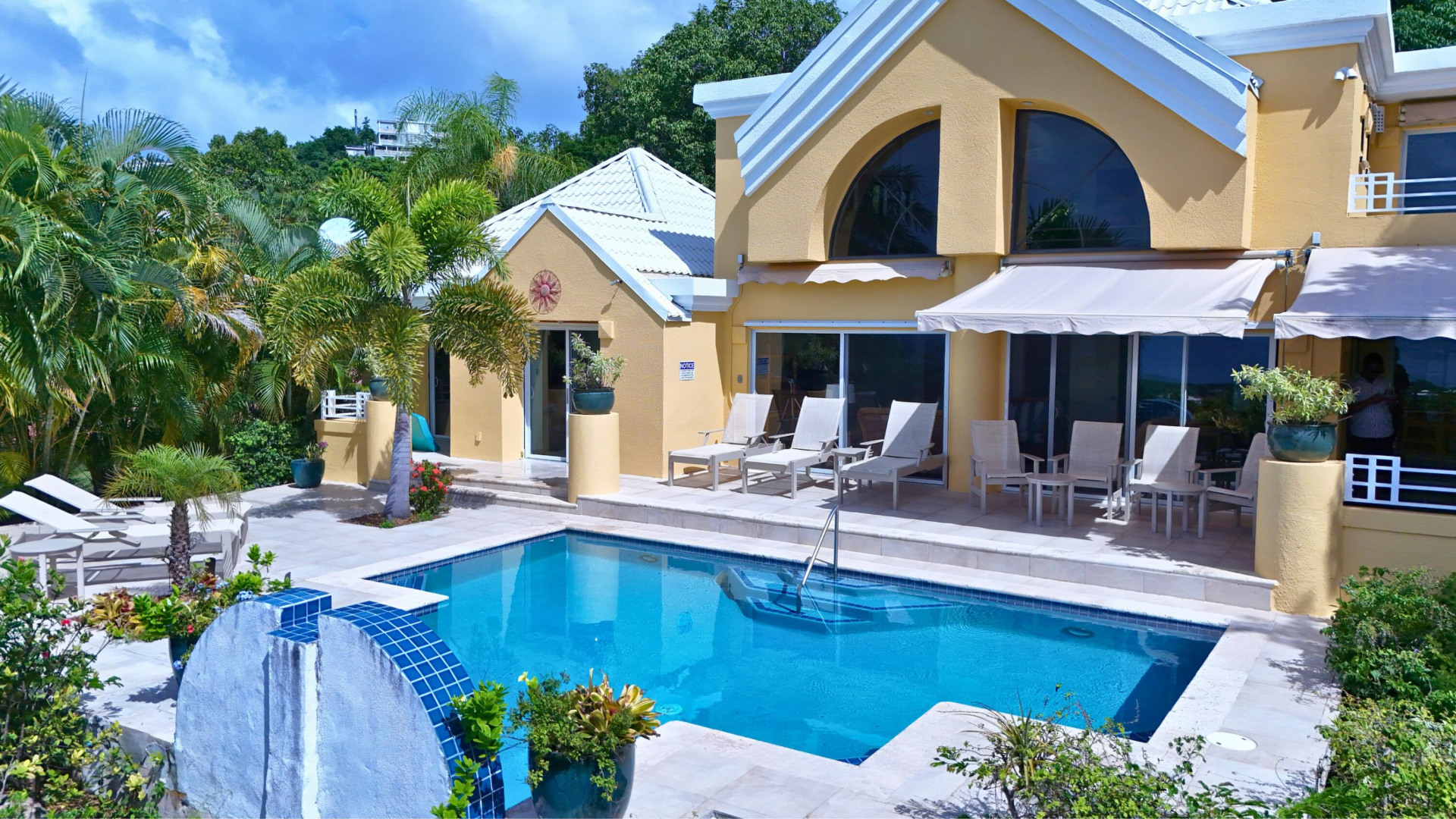 Villa Hibiscus Enjoy a full month on St. John after the Carnival crowds have left! This July 21st-August 21st Deeded Ownership can be enjoyed in this luxury home in the gated community of the Virgin Grande Estates, only minutes from beautiful North shore beaches and shops and dining in Cruz Bay. This 3-bedroom 3.5 bathroom is fully furnished and air-conditioned and includes a private 23' pool with waterfall. All rooms offer spectacular year round sunset views across Pilsbury Sound to St. Thomas and surrounding islands. Ownership includes your own large locked storage unit.