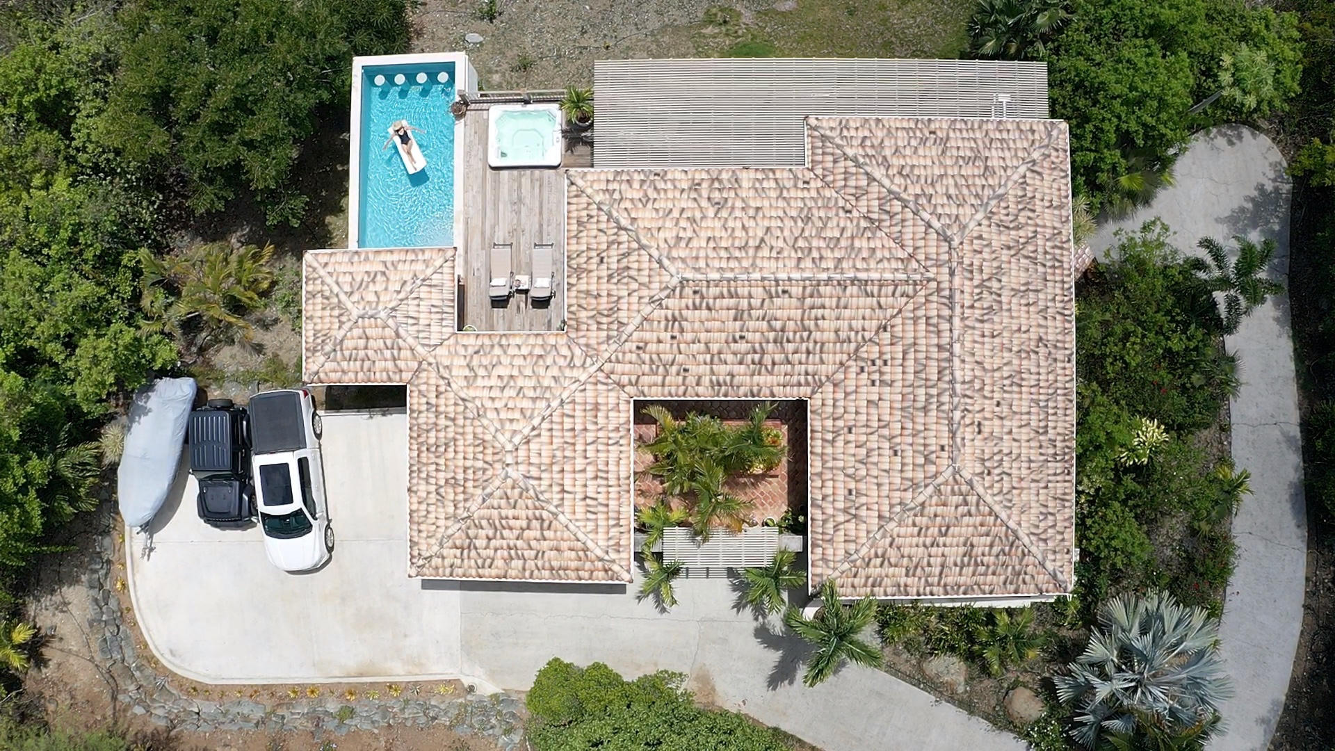 ''Sunset Serenade'' is a well-built, well maintained masonry home with stunning, St. Thomas sunset view privately situated at the end of a country road consisting of a 2bd x 2.5 bath main house and a 1bd x 1 bath lower apartment. Enjoy breathtaking sunsets from the spacious deck area with pool and hot tub. Extensively renovated in 2013, this home is well maintained and in turn-key condition. Must see to fully appreciate! Buyer and Seller to equally split the costs of the transfer stamp tax. Buyer to confirm square footages and cistern capacity.