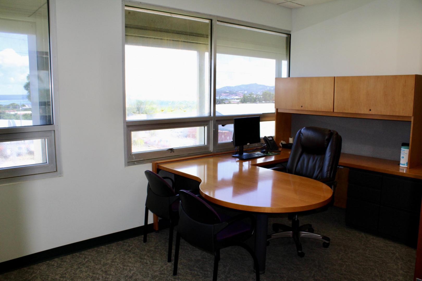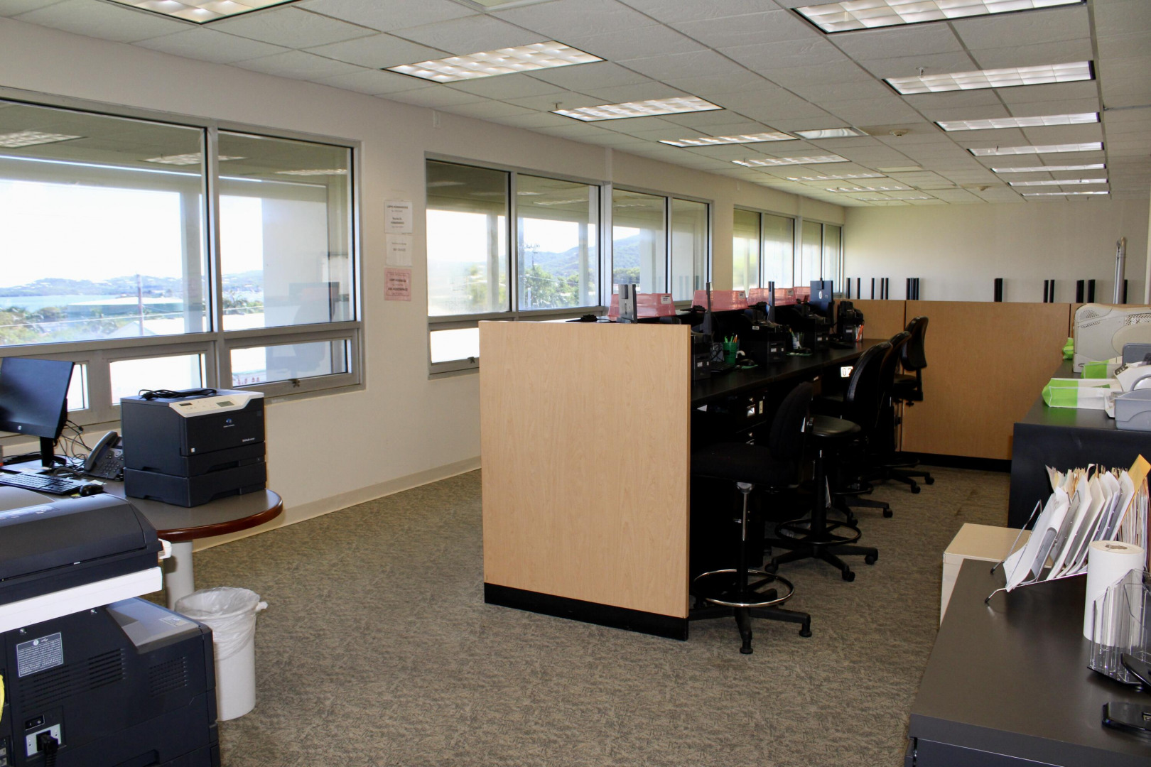 2,500 SF of Class A office space located on the 2nd floor of the FirstBank building in Orange Grove, St. Croix. Rent includes electricity, water, back-up generator service, security and parking. Located on Northside Road in a prime high traffic, commercial hub, this office space is just 2 minutes from downtown Christiansted and provides easy access to Sunny Isle, Melvin Evans Highway and the airport. The space consists of a large open space that can be partitioned & 3 private office suites. The sea view adds to the desirability of this space. Shared male/female bathrooms & elevator access. Existing furniture can remain and a wall will be installed to separate the space from FirstBank's offices.