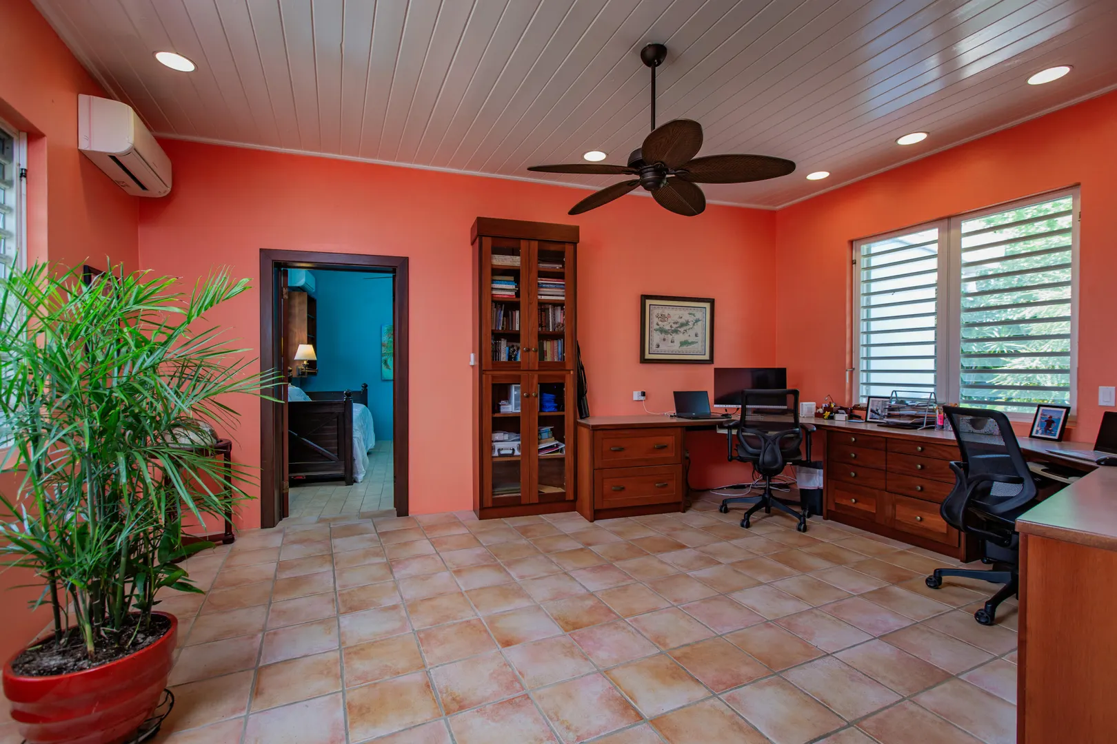 Stunning Caribbean Sea views from this 4-bedroom, 3.5-bathroom home fittingly named ''The Breezeway'' nestled atop the exclusive neighborhood of Shoys adjacent to the Buccaneer Golf & Beach Resort. You'll immediately fall in love with this ideal location just steps away from Shoys Beach and a short 5-minute drive to downtown Christiansted's best restaurants, entertainment and shopping.Travel through the gated entrance into the garage/carport, and enter the heart of the home through the courtyard into the open-air breezeway. Then, choose indoor or outdoor living framed by the Caribbean Sea or a lush tropical backdrop including koi ponds and zen garden. Property also features gourmet kitchen with new stainless appliances, quartz countertops and custom mahogany cabinetry, outdoor