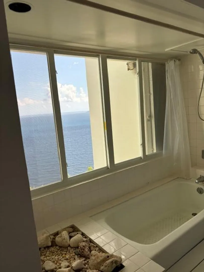 Rare opportunity to purchase an empty shell and put your own spin on it. No appliances. This is a walk-in middle unit located on the sought after Atlantic side with incredible views of Hans Lollick, St. John and the BVI chain of islands. And, enjoy the great breeze. Covered parking right outside the entry. Separate entryway through a patio for the second bedroom/bathroom, or access through the main door. Mahogany Run has installed new PGT wind resistant sliders and windows. Enjoy the Sanderling pool, or Magens Bay, a five minute drive away. Gated entrance into the complex. Being offered ''AS-IS''