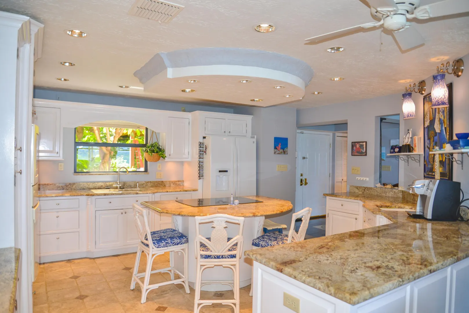 Buck Island Breezes has three bedrooms, one of which currently serves as an office /den, two full baths, an eat-in, full-size kitchen with wetbar, a formal dining room (currently used as an office but easily returned to dining), a great room with high ceilings, foyer with tray ceiling, ensuite Master, surround sound theater system, and many other high-scale amenities. Nearly every room has ocean views.