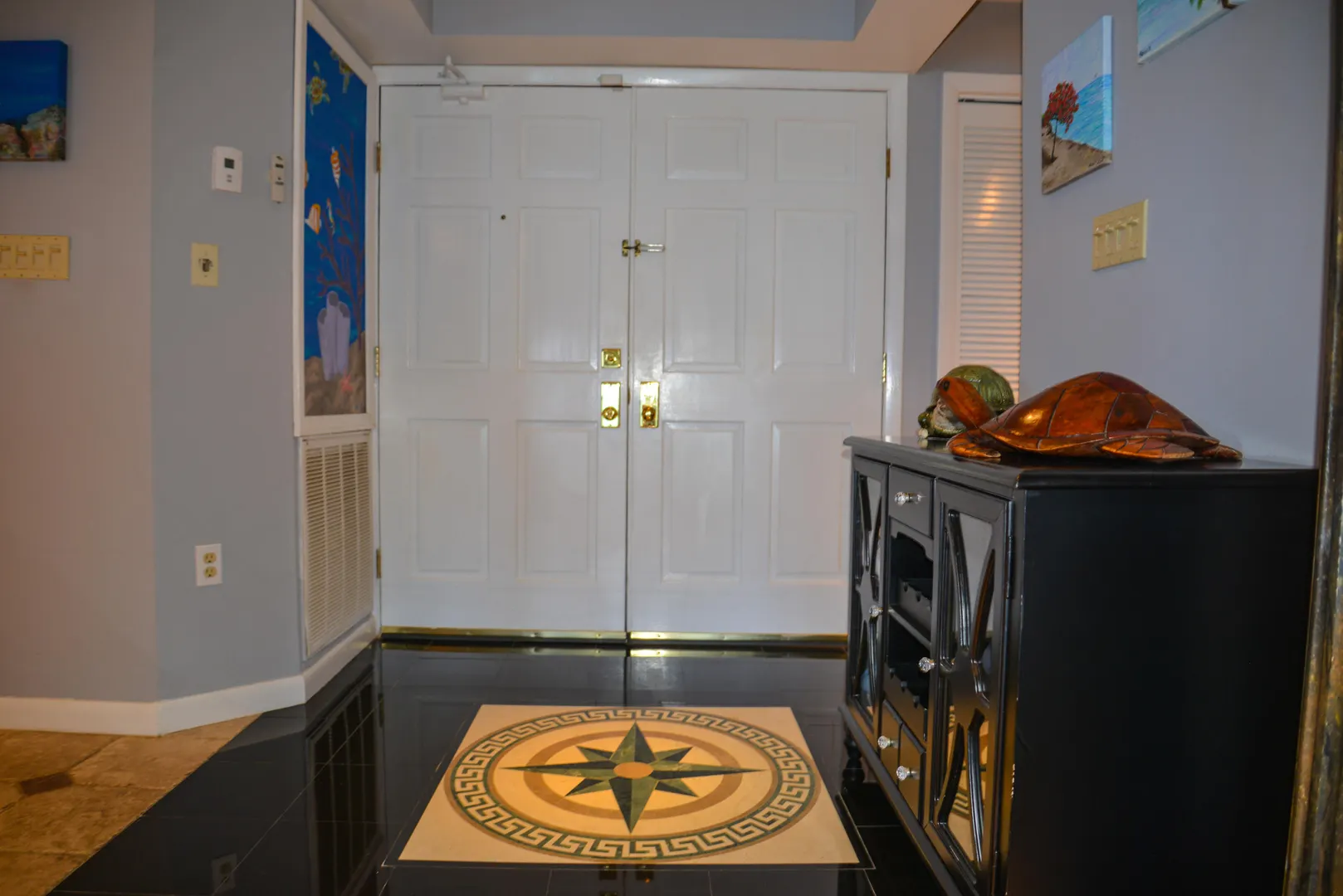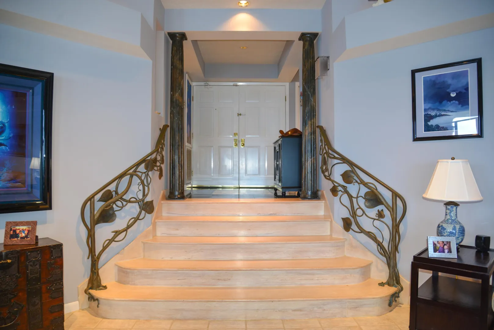 Attention to detail includes custom designed railings throughout the great room, foyer, and dining room. Slate tile on the gallery makes the views even more amazing. The Condo's cool ocean-blue tones and white contrasting trim combined with the serene ocean waves create a calming, Zen atmosphere.