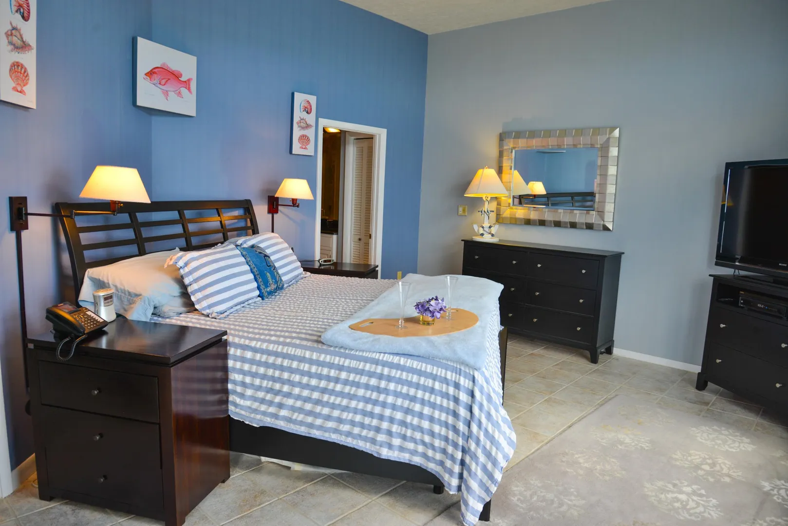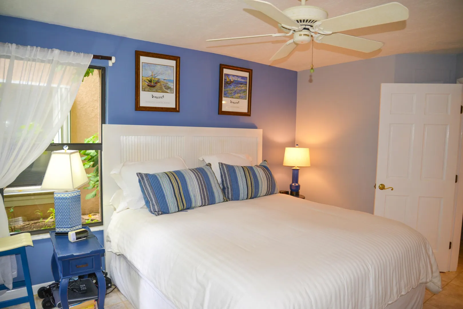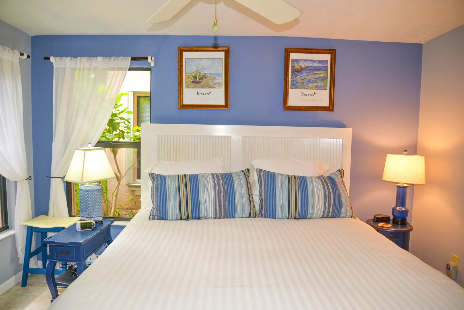 The top of the line, high efficiency central air conditioner, new in 2012, keeps power bills reasonable while allowing a climate-controlled atmosphere. The guest bedroom has room for a king bed with side tables, and the condo has a GE, front-loading full-sized stacked washer and dryer (new in 2013), two tankless hot water heaters (master bedroom has its own) installed in 2012, a 2016 pressure pump (providing high water pressure), and a 2011 UV light and carbon water filtration system, all of which increase the amenities for this condo. Broadband VI cable and alarm system are available (monthly costs do apply). The active condo association has reasonable fees for the amenities (with 100% windstorm insurance included).