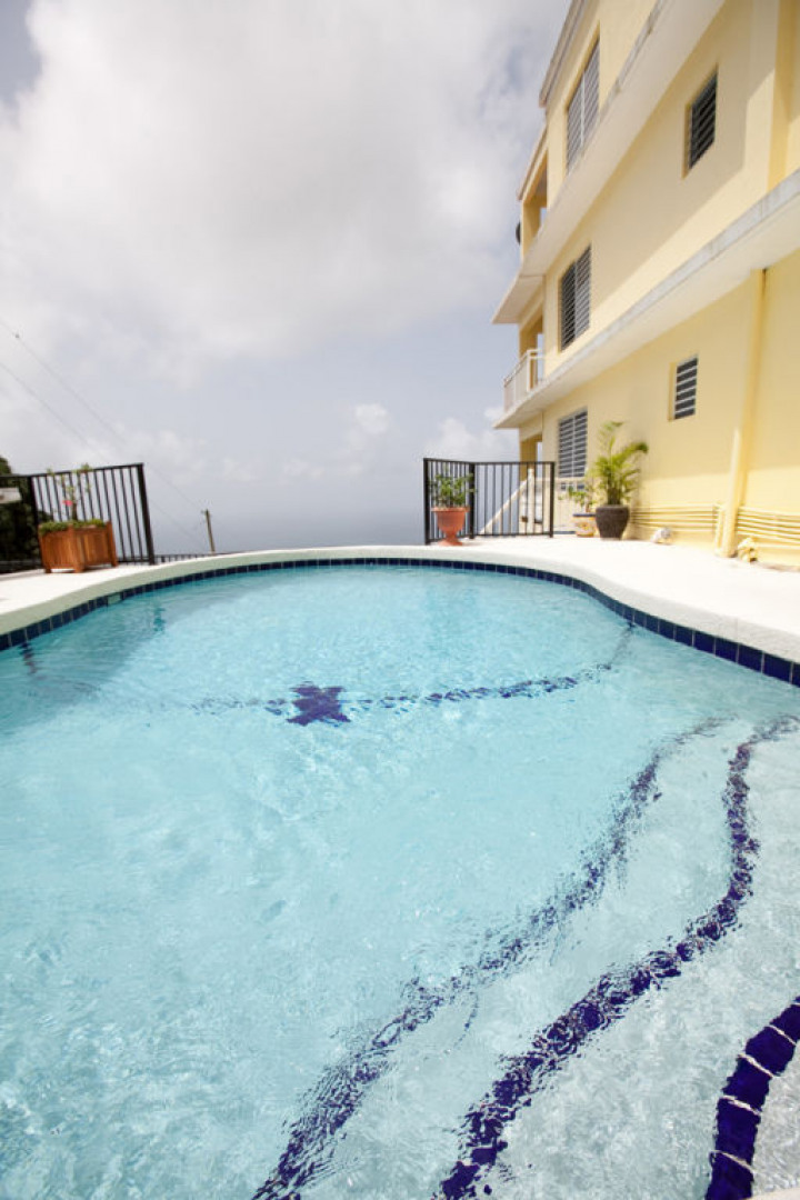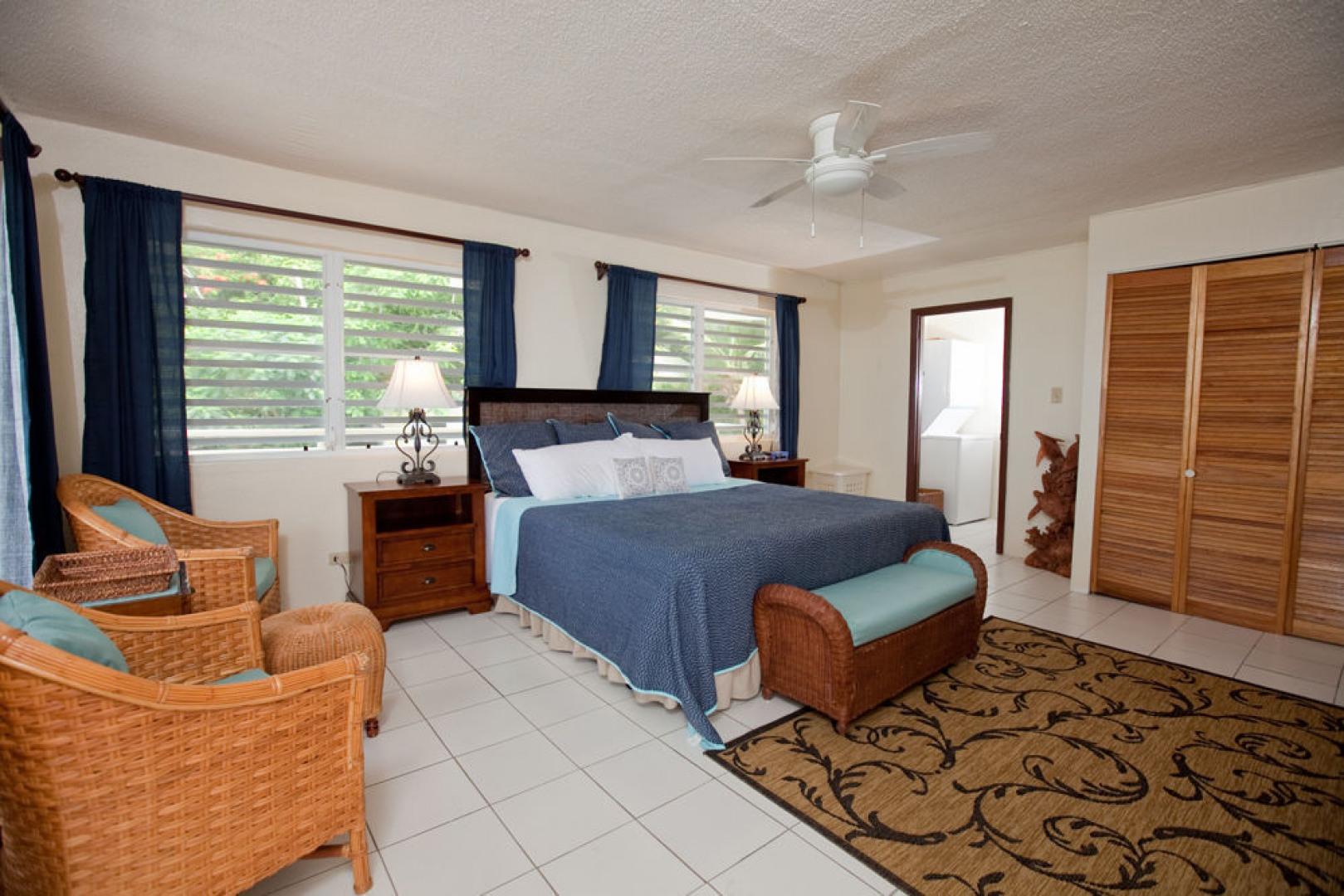Beautifully furnished apartment with granite countertops, high on Crown Mountain Road. 3 bedrooms, 2 baths with central air and gorgeous southern views from St. Croix to Culebra. Rent includes wireless internet, Direct TV and water. Plenty of parking. Professional couple or single, no pets, please.