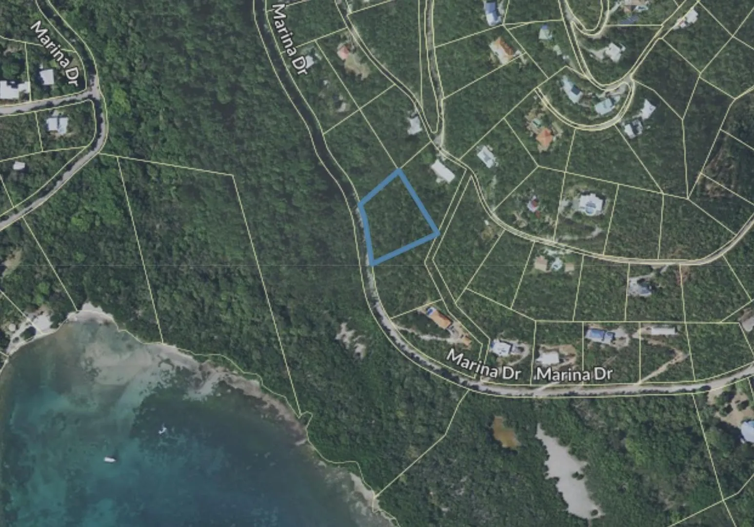 Seller Financing Opportunity! Wonderful views of Fish Bay and Ditleff Point from this oversized 3/4 acre building site. This site fronts on Marina Drive and has easy access from the paved estate Fish Bay road. Wonderful breezes from this site and perfect neighborhood for a home or rental villa. Great location only 10 minutes to Cruz Bay town. All reasonable offers will be considered. Buyer to split stamp tax equally with Seller. Topographic survey available.